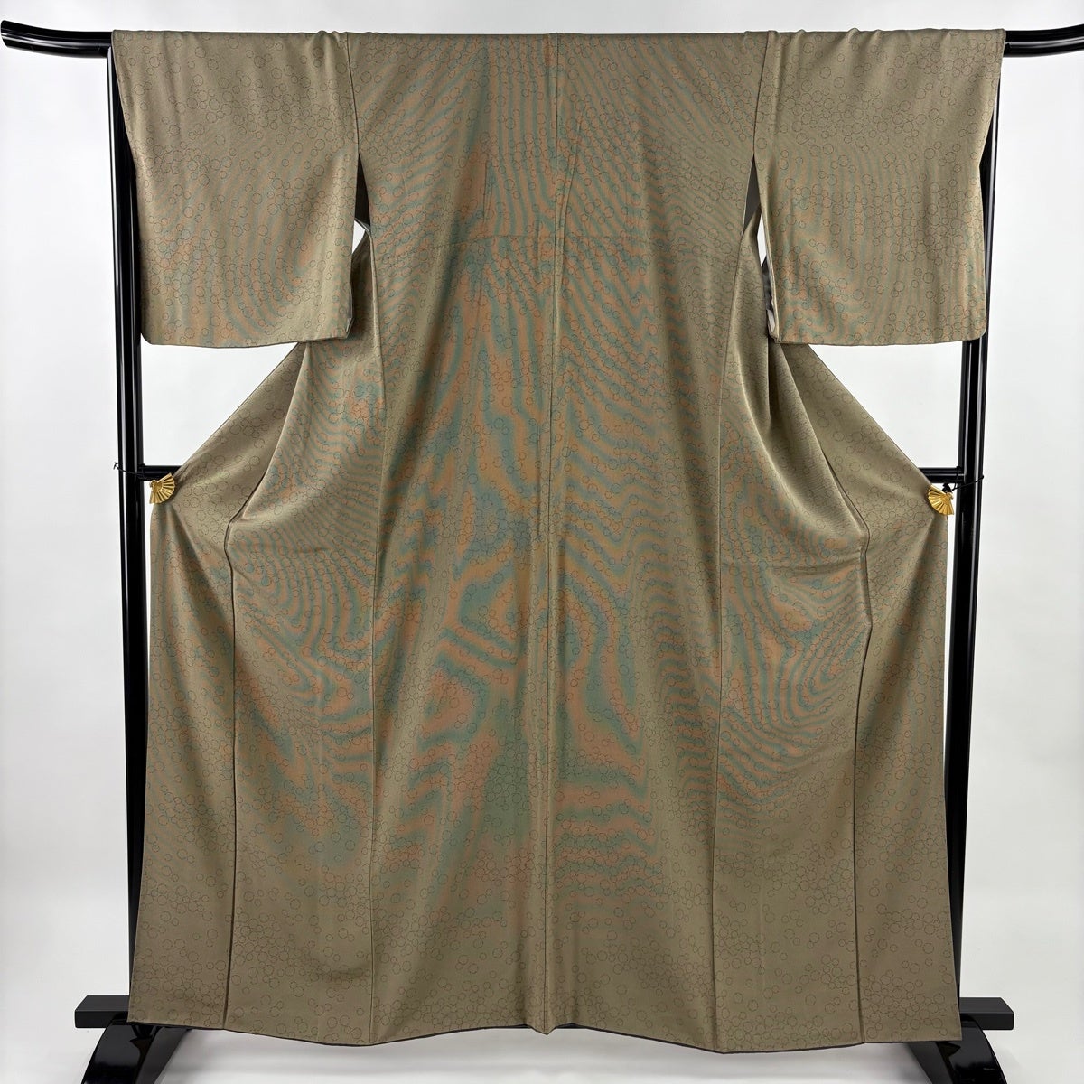 小紋 身丈158cm 裄丈64cm M 袷 幾何学模様 薄茶色 正絹 秀品
