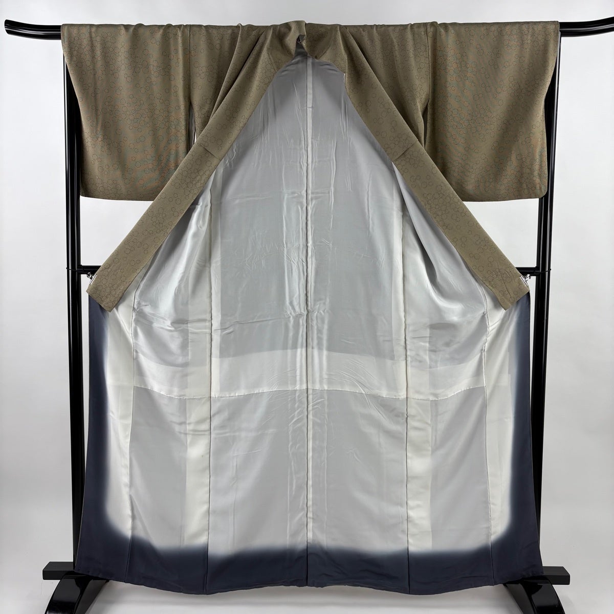 紬 身丈158.5cm 裄丈63.5cm S 袷 幾何学模様 灰色 正絹 秀品