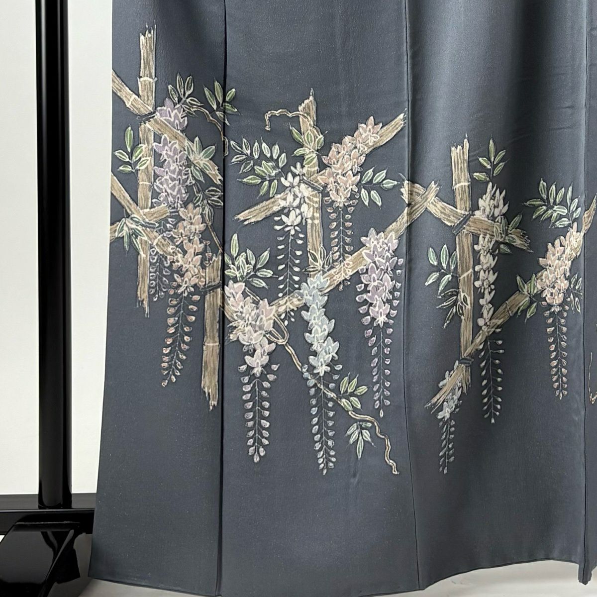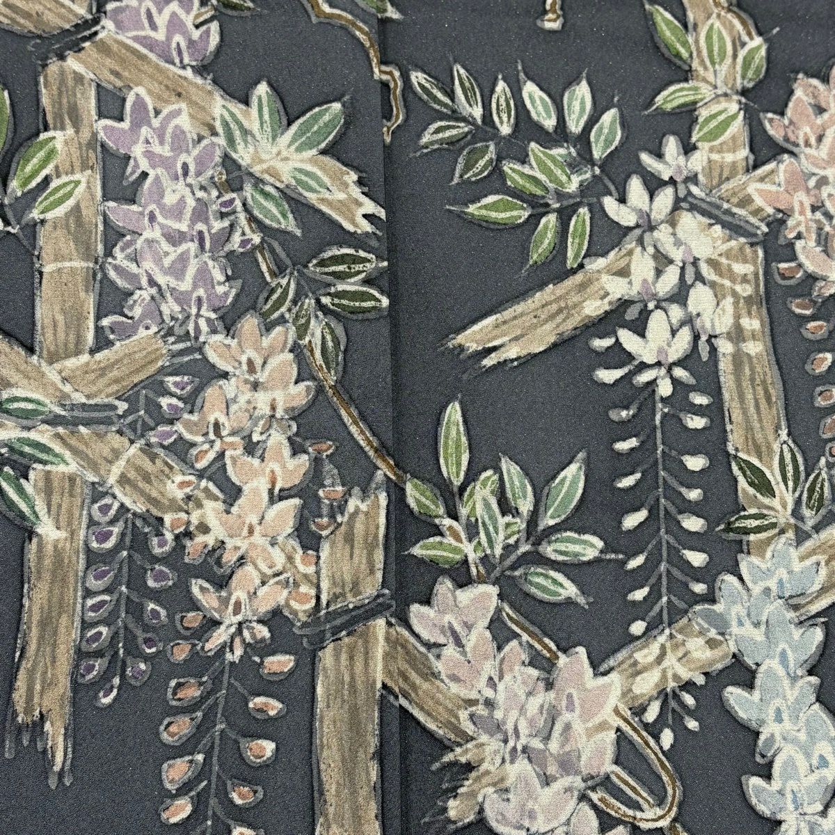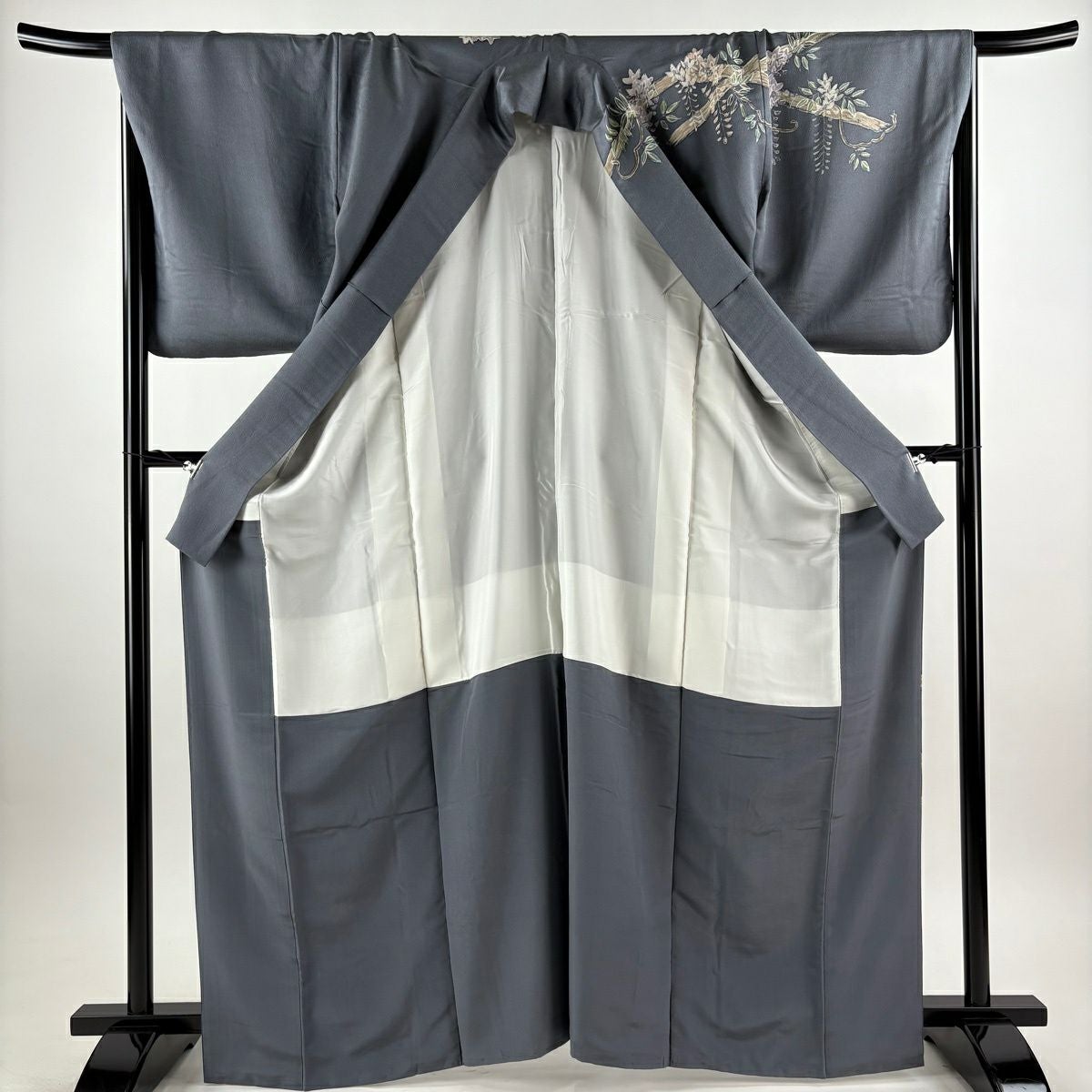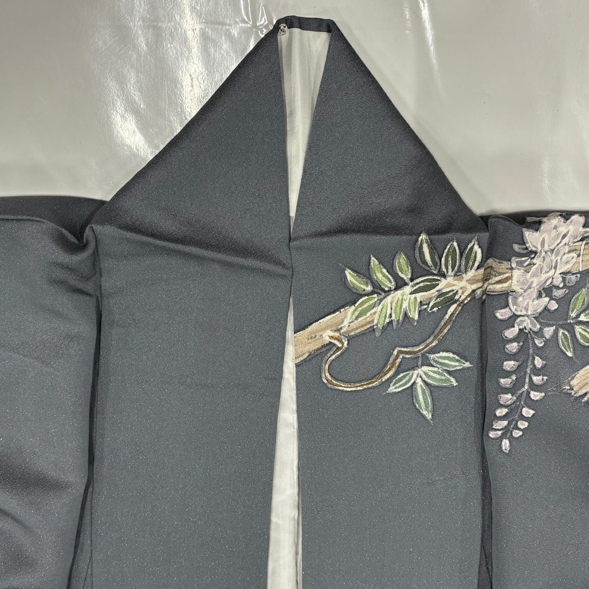 訪問着 身丈168cm 裄丈69cm L 袷 藤 金通し 灰色 正絹 秀品