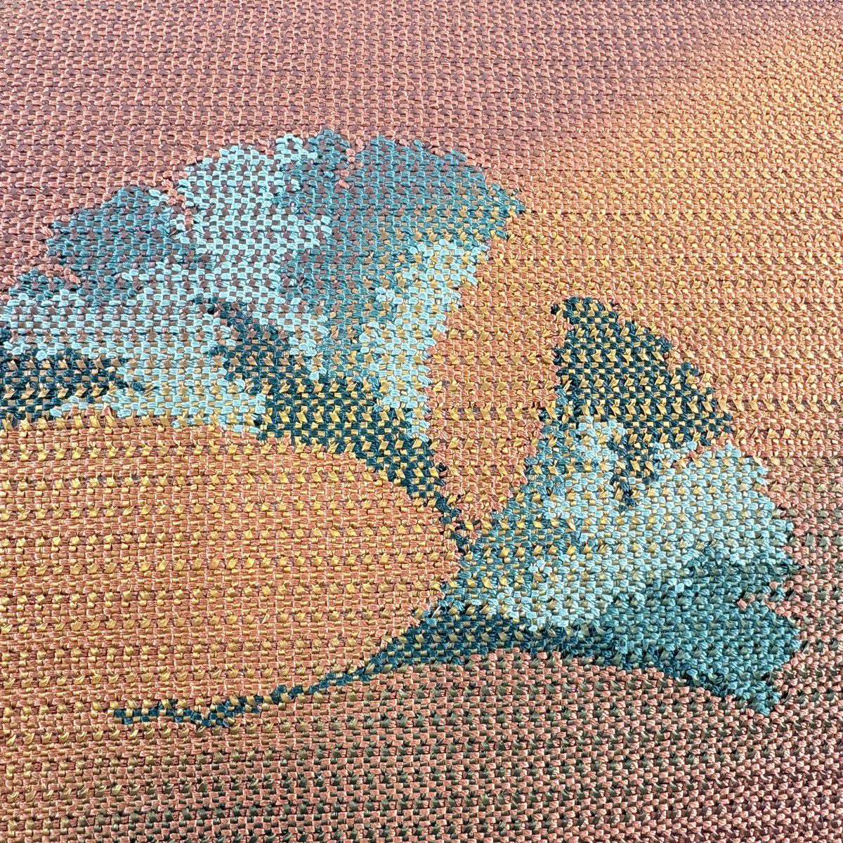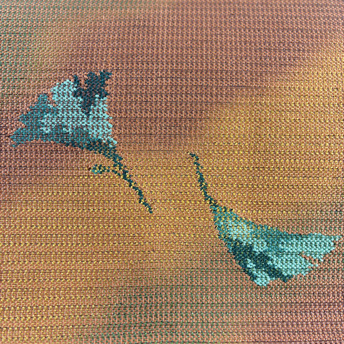 【美品】 袋帯 秀品 落款あり 紬地 ヱ霞 葉柄 茶緑色 お太鼓柄 正絹