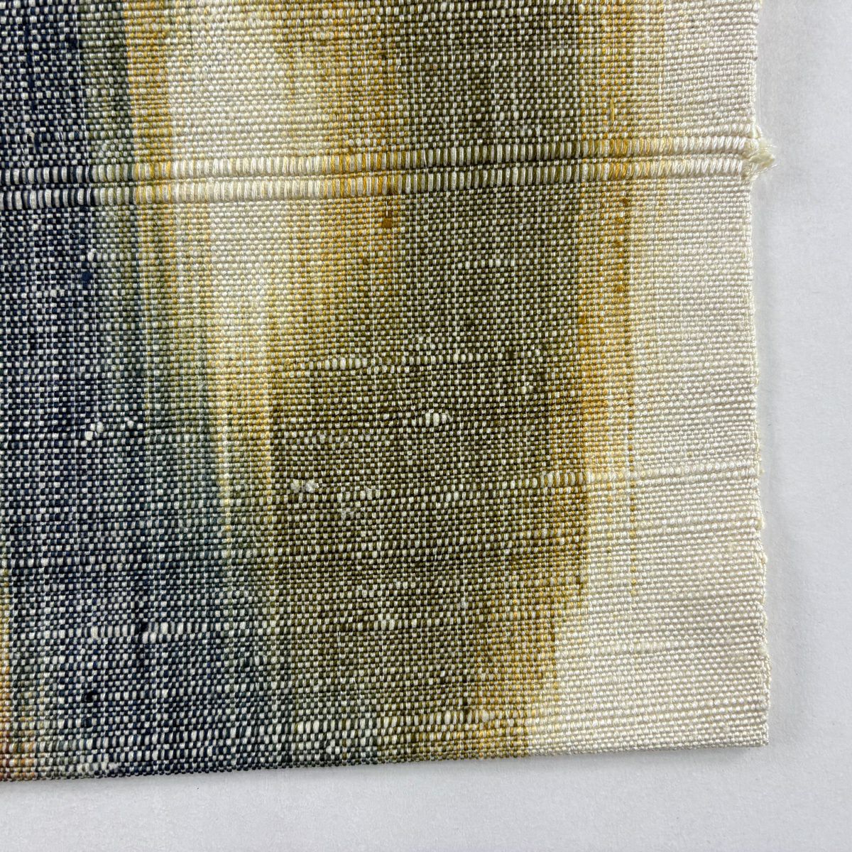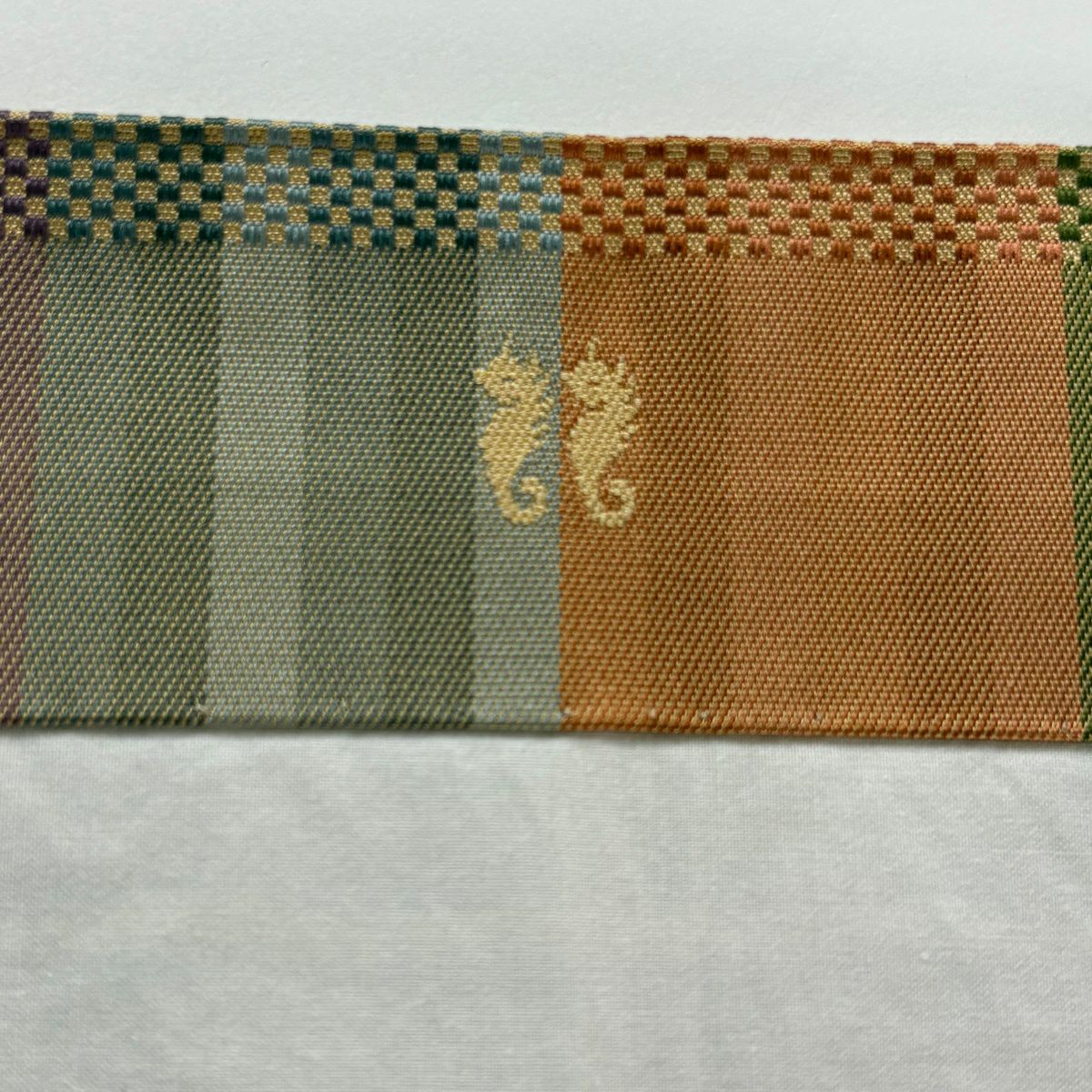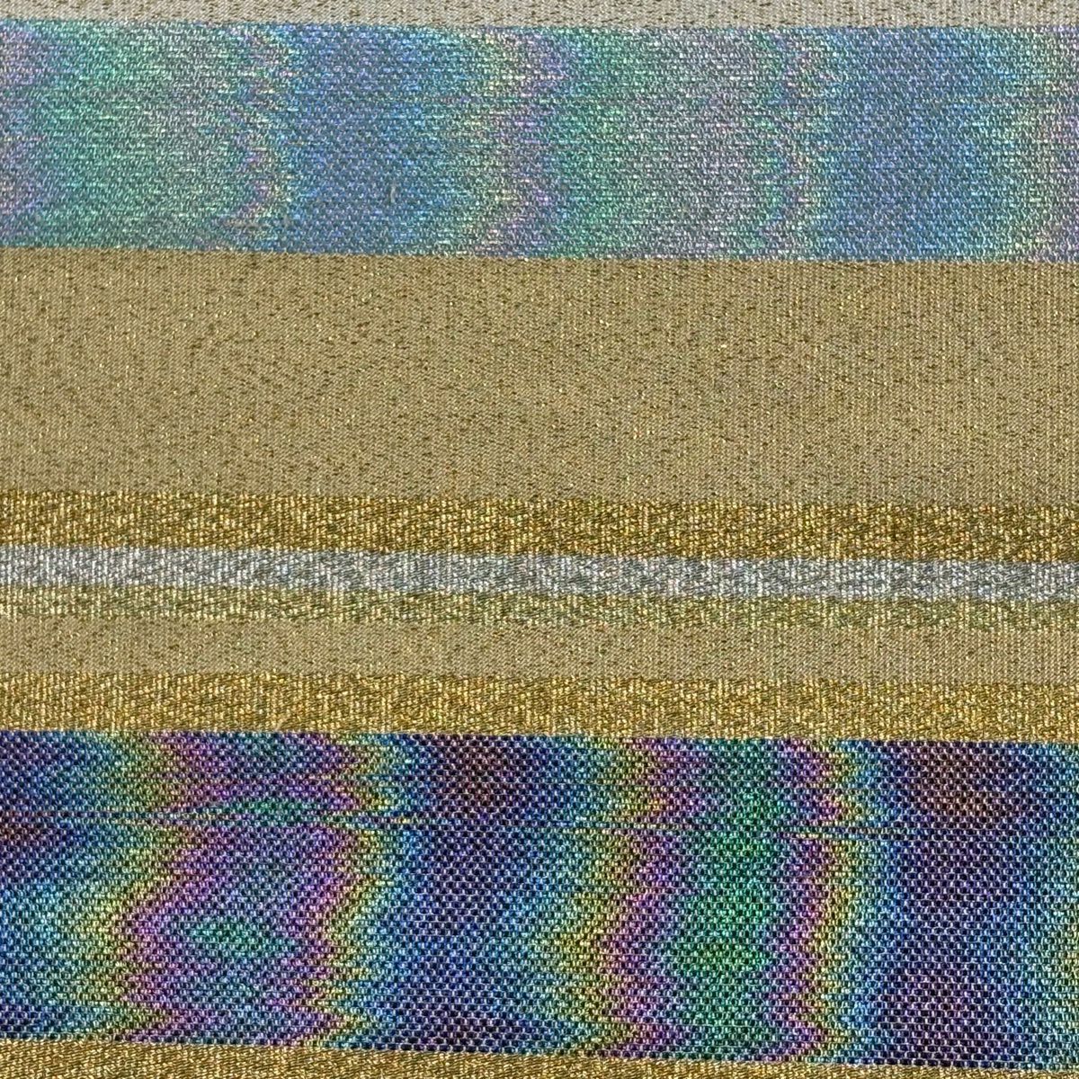 【美品】 名古屋帯 秀品 松葉仕立て 八寸名古屋帯 縞 葉柄 金銀糸 灰緑 正絹