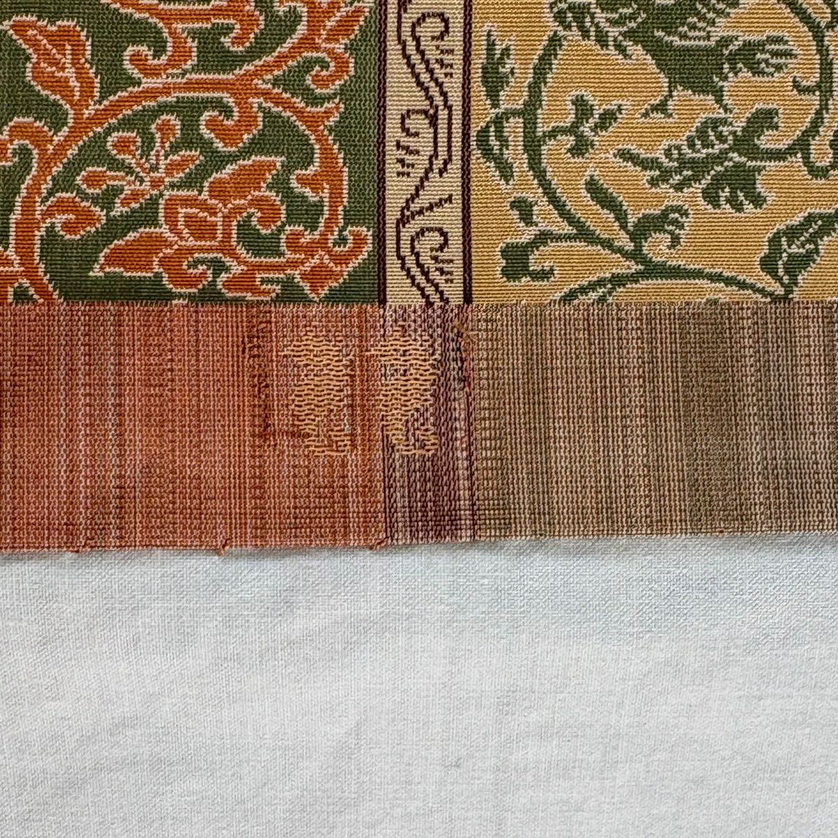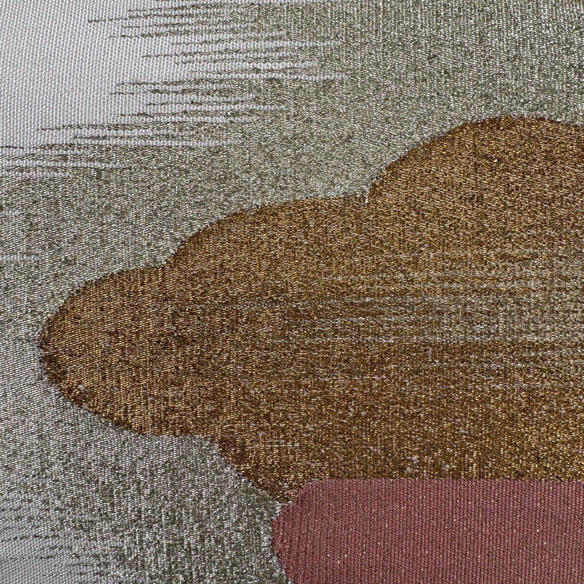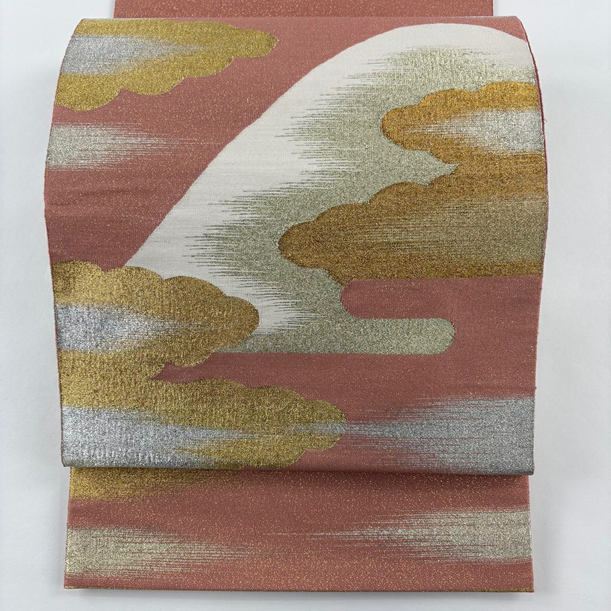 袋帯 秀品 関西仕立て 山霞 雲文 綴れ サーモンピンク お太鼓柄 正絹