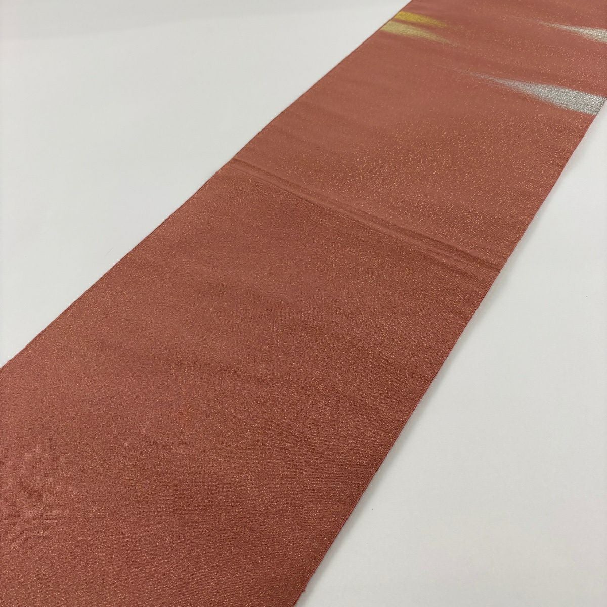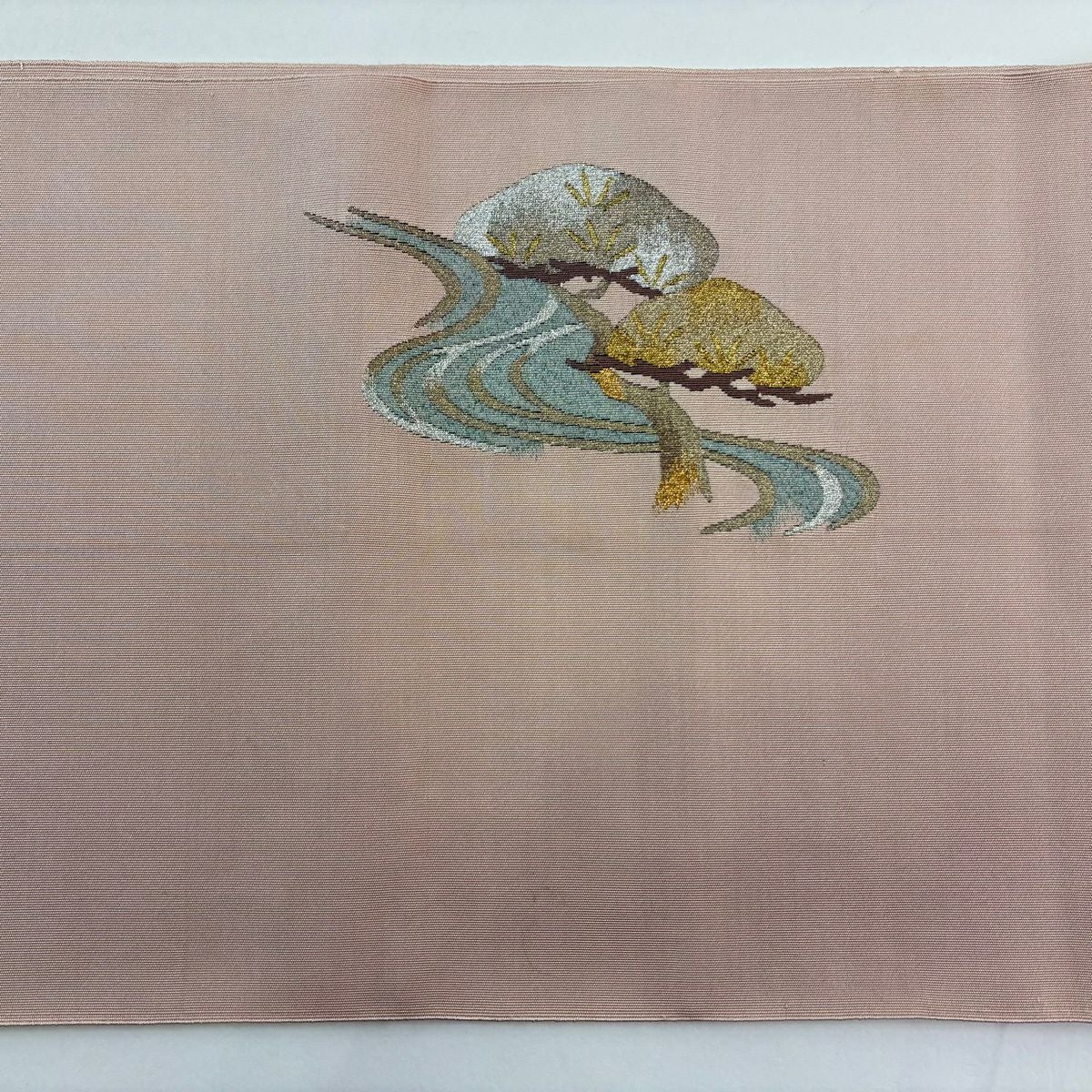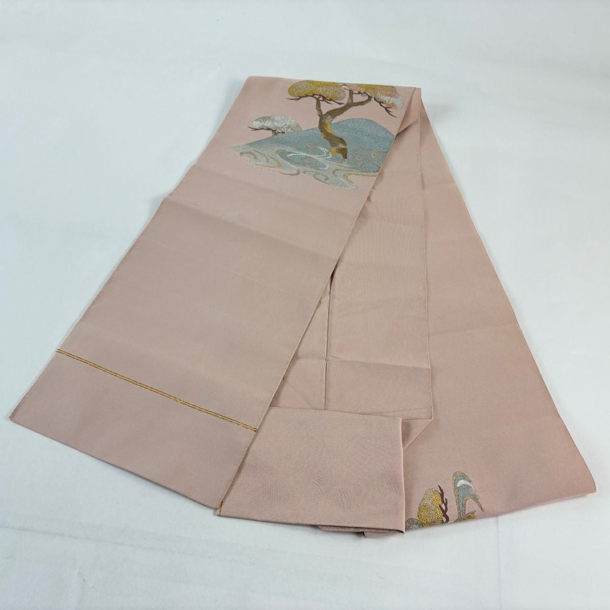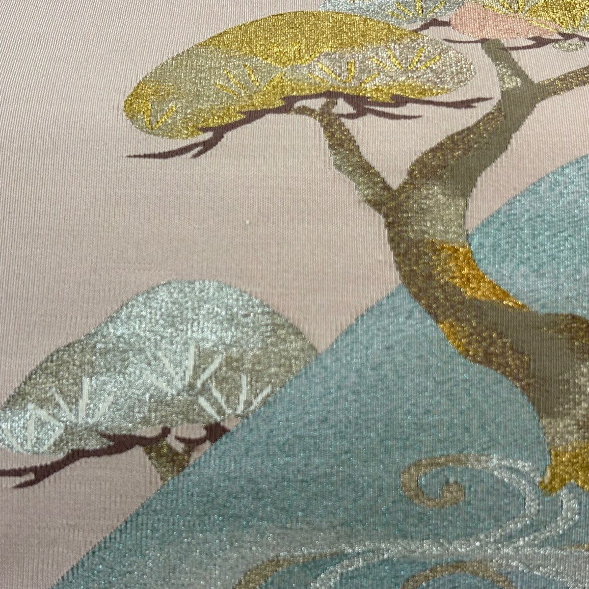 名古屋帯 秀品 八寸名古屋帯 松葉仕立て 松 流水 金銀糸 綴れ織 ピンク 正絹