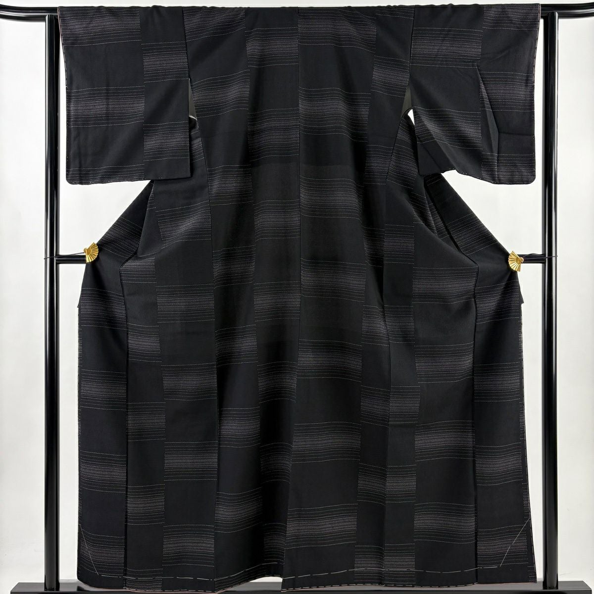 【美品】 紬 身丈158cm 裄丈62.5cm S 袷 段縞 黒 正絹 秀品