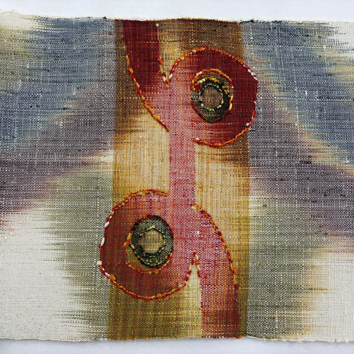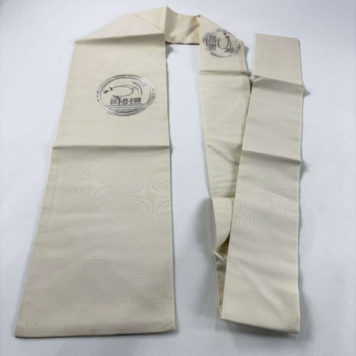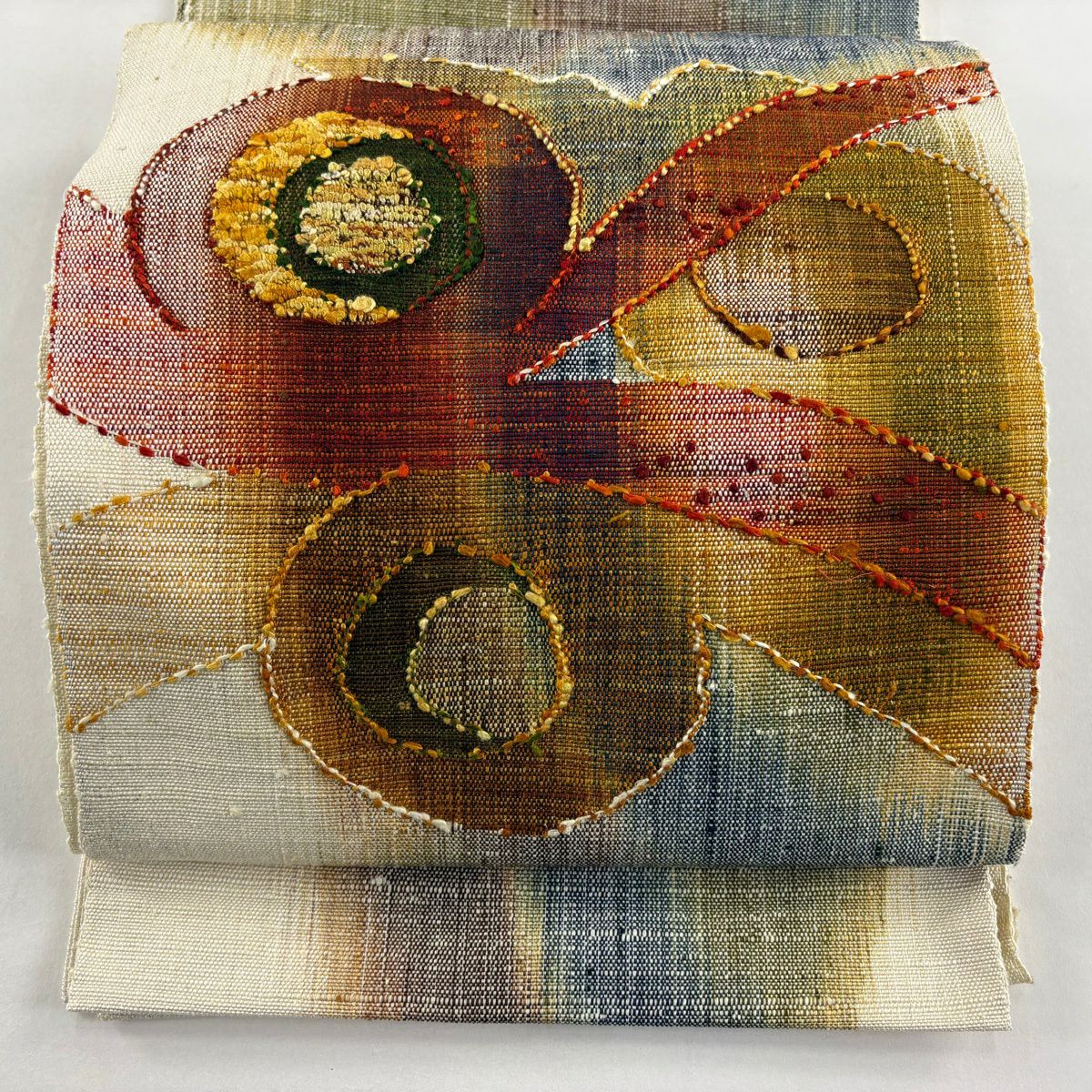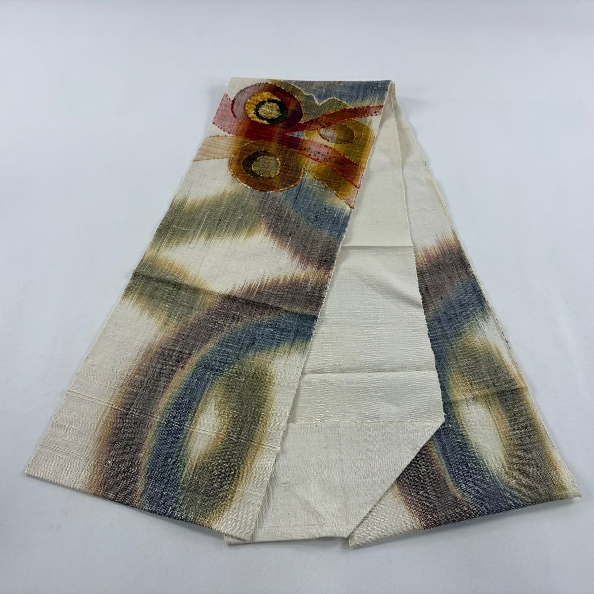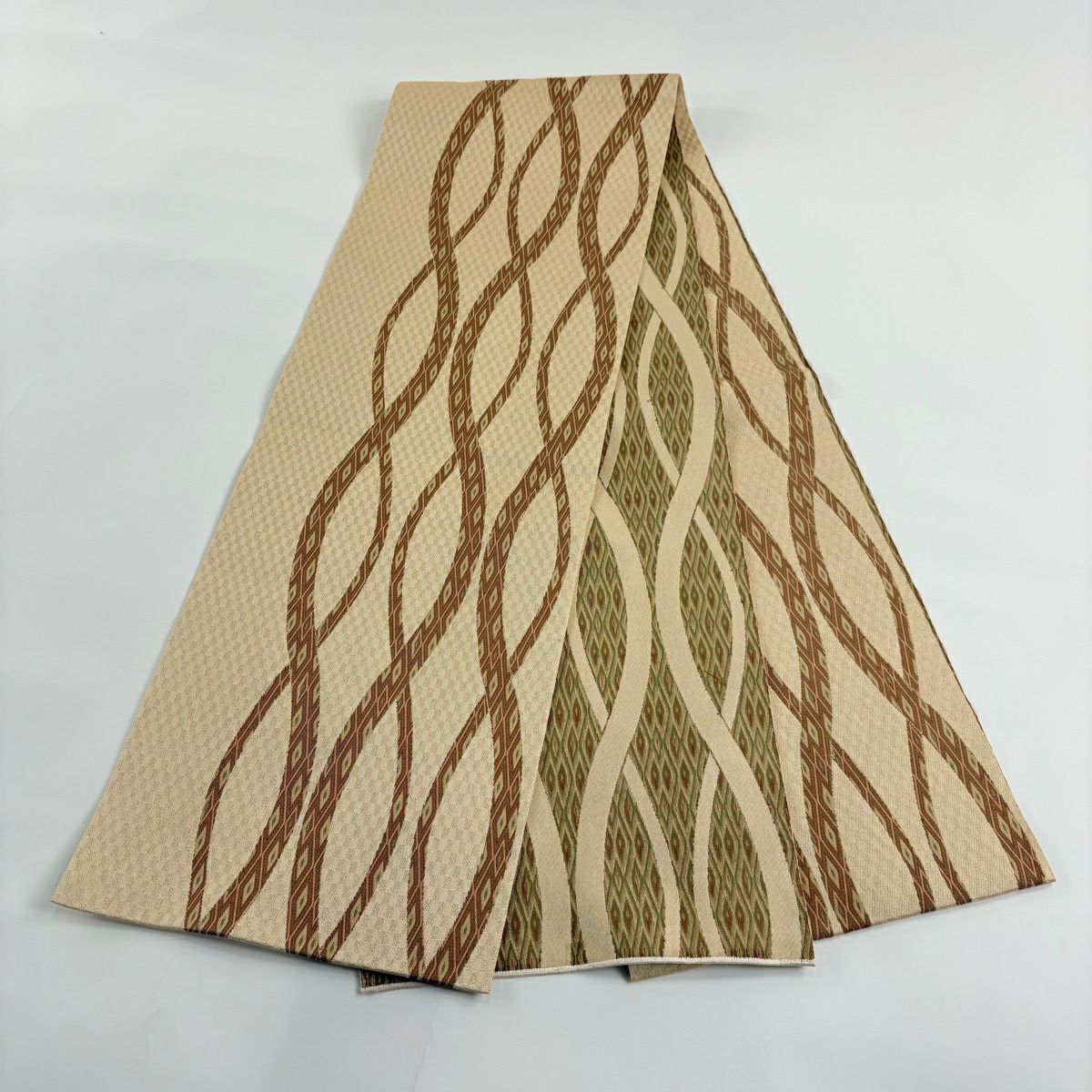 【美品】 名古屋帯 秀品 八寸名古屋帯 松葉仕立て 紬地 幾何学 クリーム 正絹
