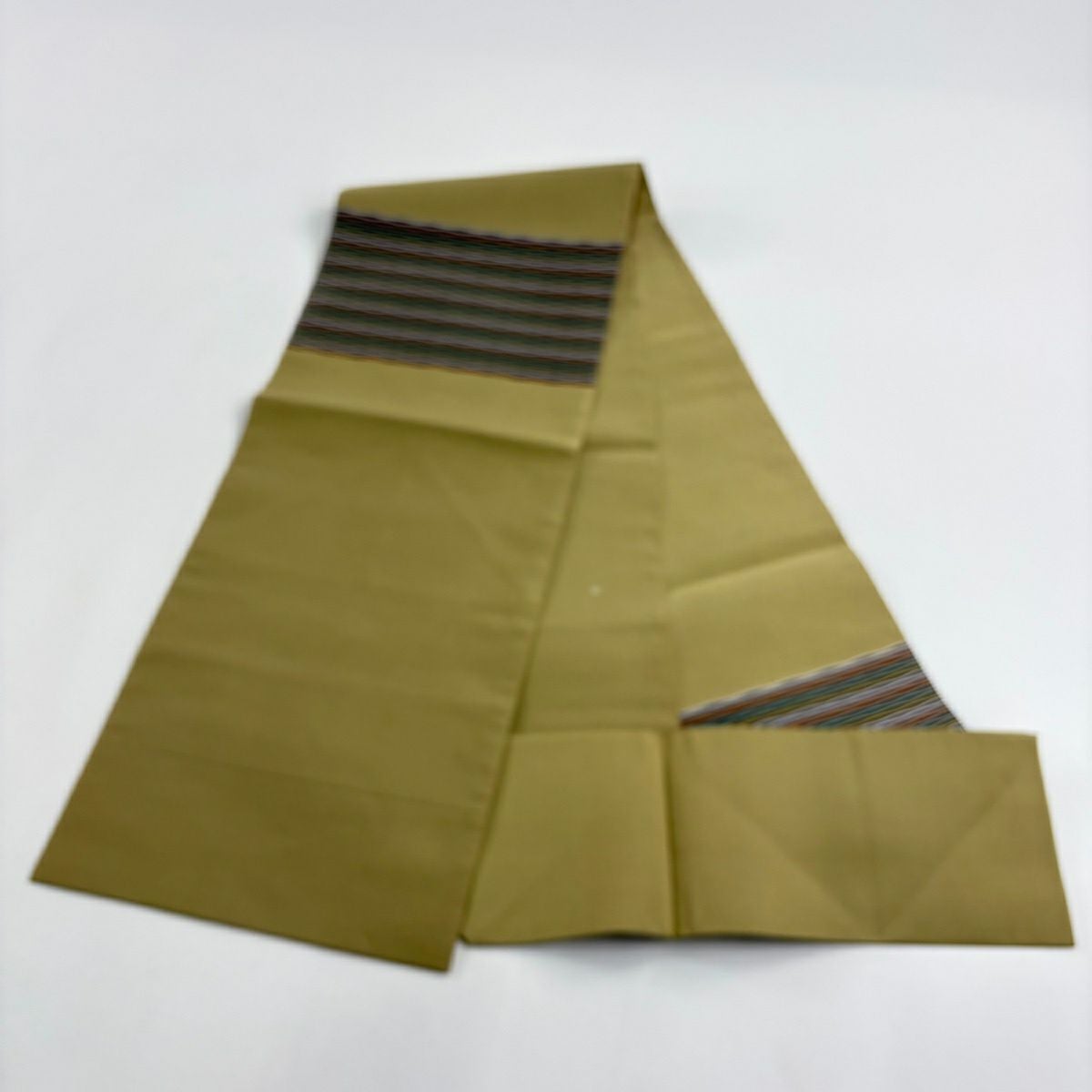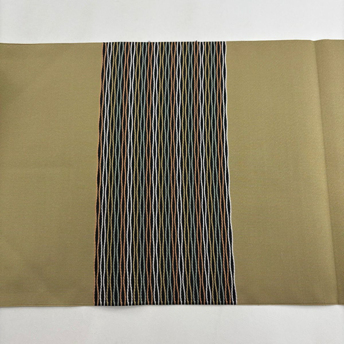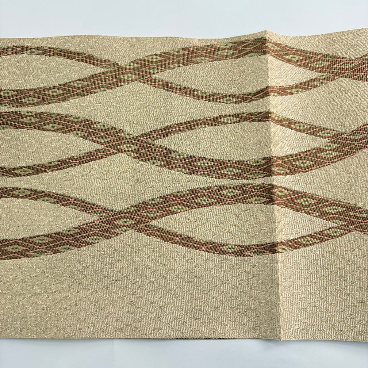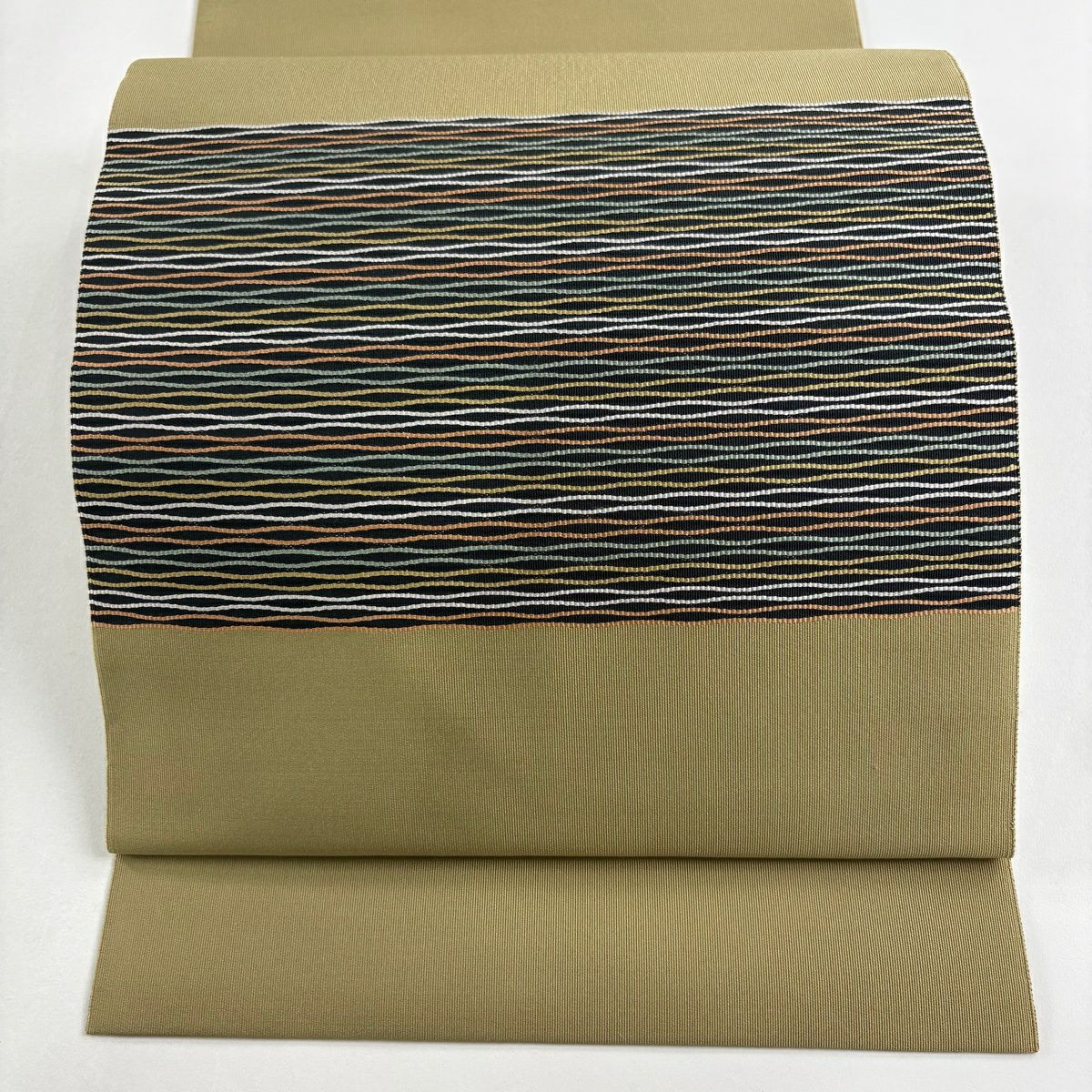 【美品】 名古屋帯 秀品 八寸名古屋帯 松葉仕立て 縞 幾何学模様 薄茶色 正絹