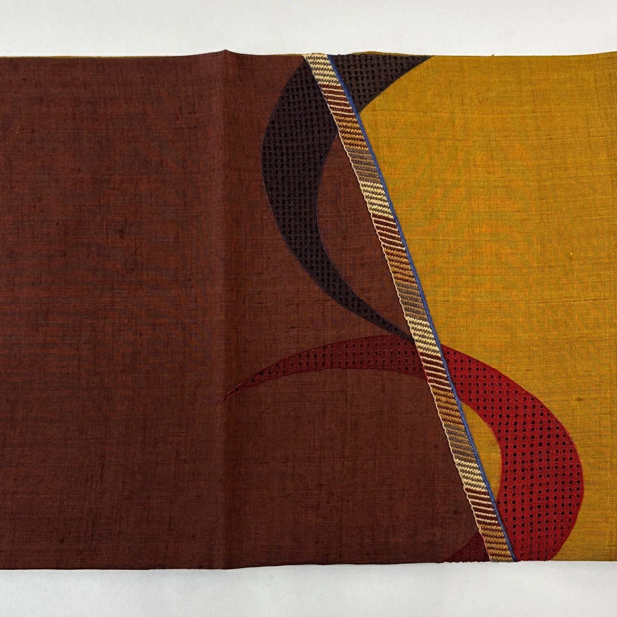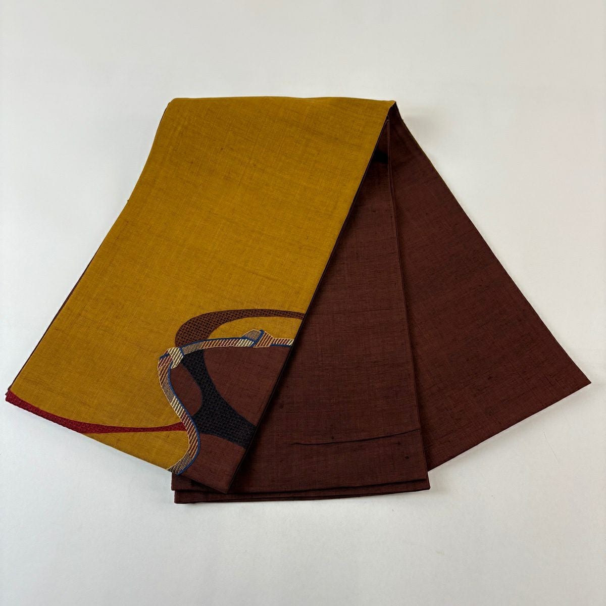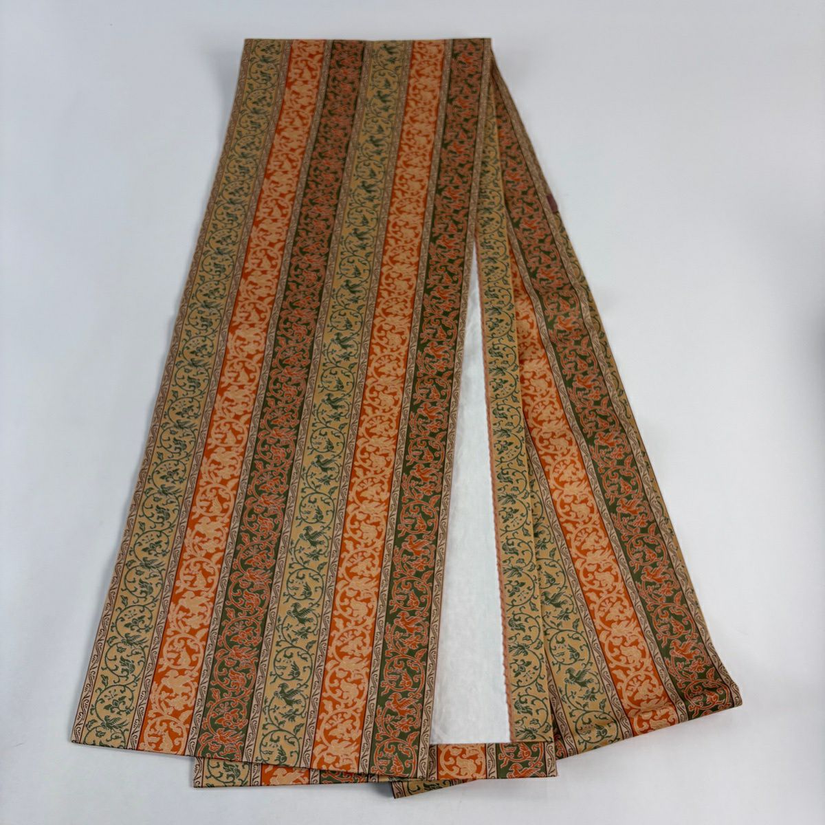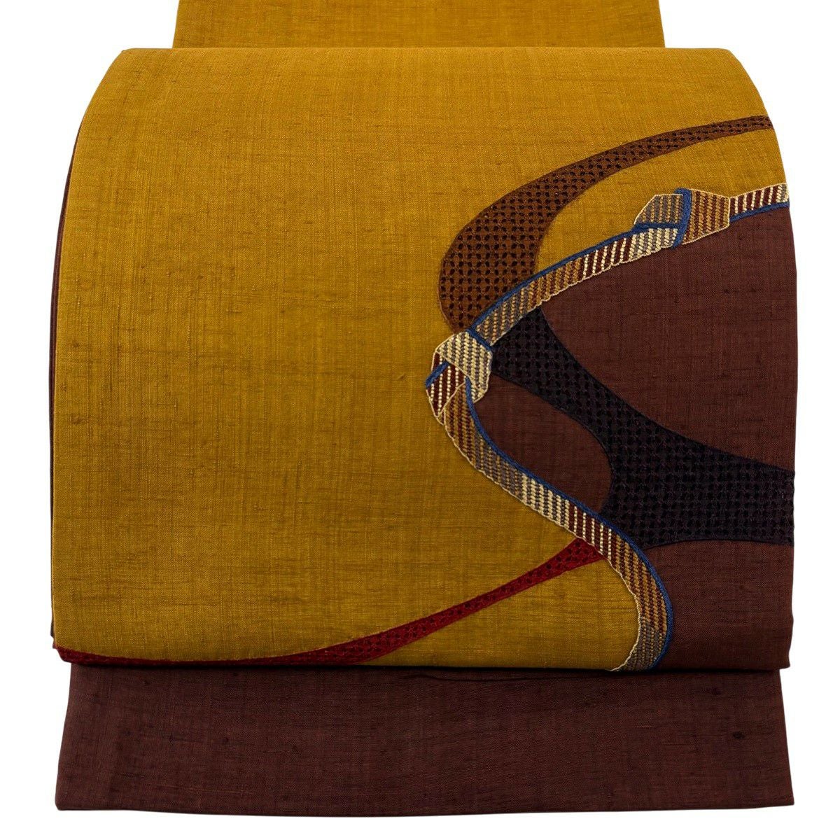 【美品】 名古屋帯 秀品 八寸名古屋帯 松葉仕立て 縞 幾何学模様 薄茶色 正絹