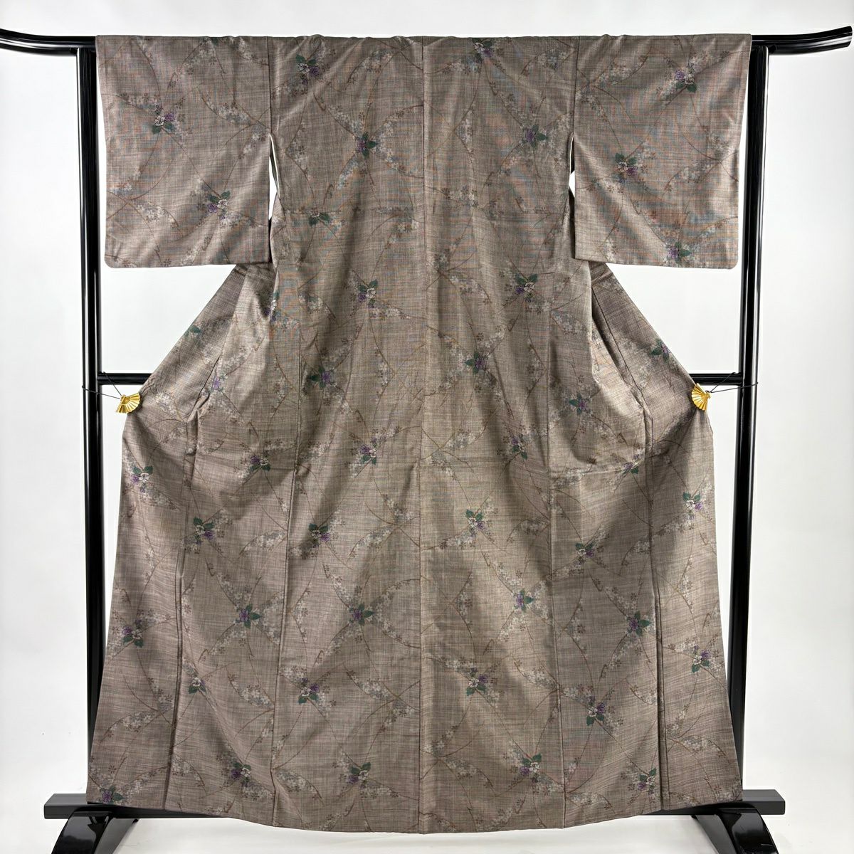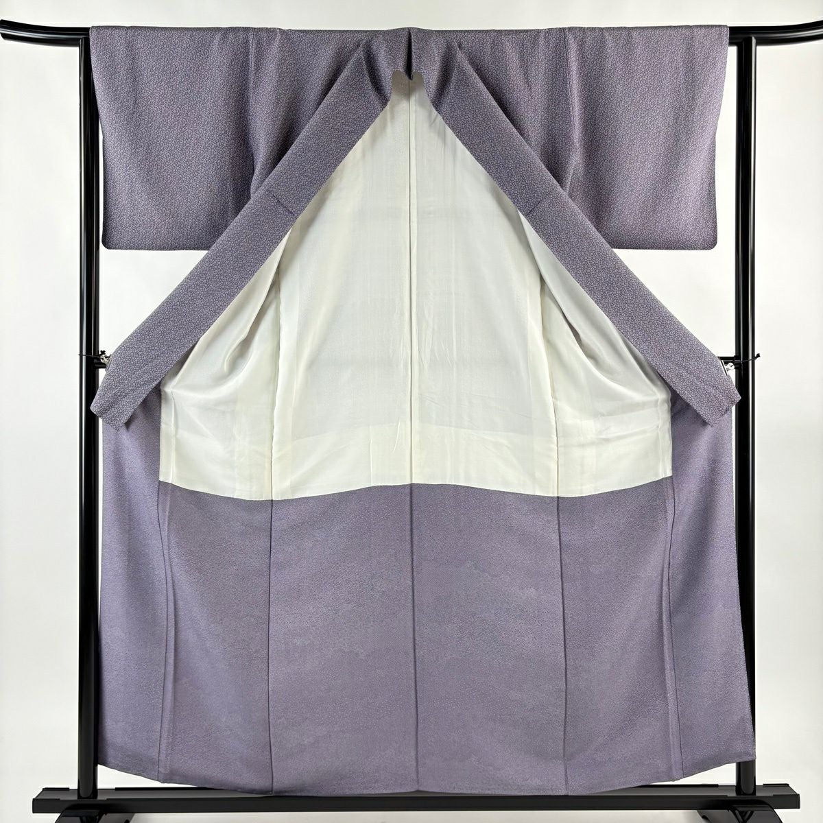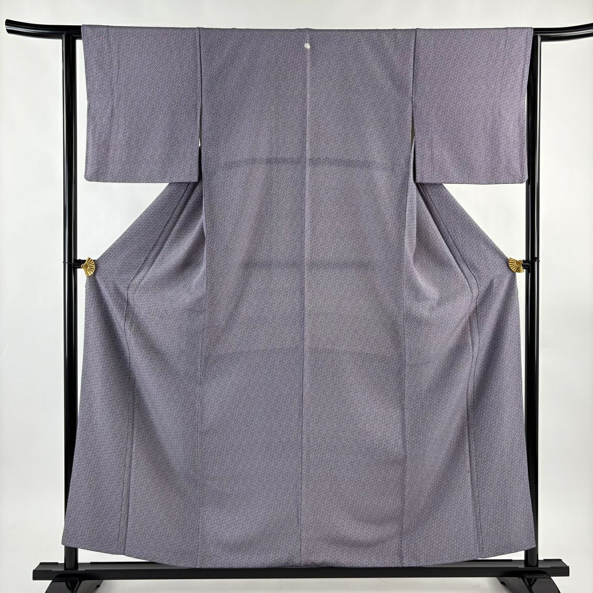 紬 身丈158.5cm 裄丈65cm M 袷 ねじり梅 七宝 灰紫 正絹 秀品