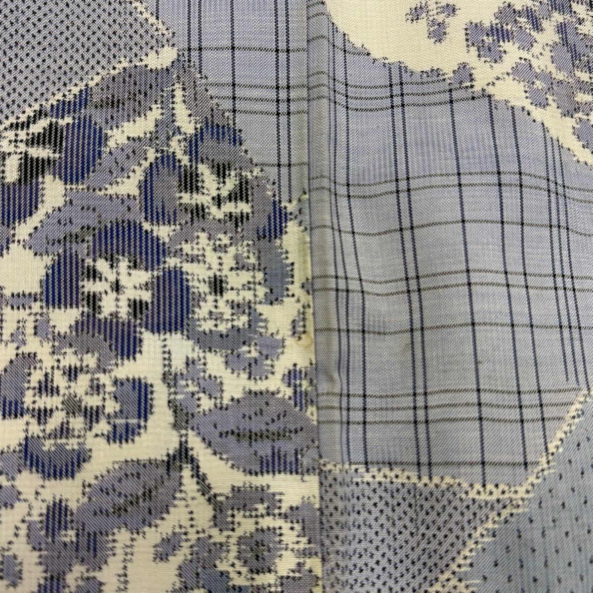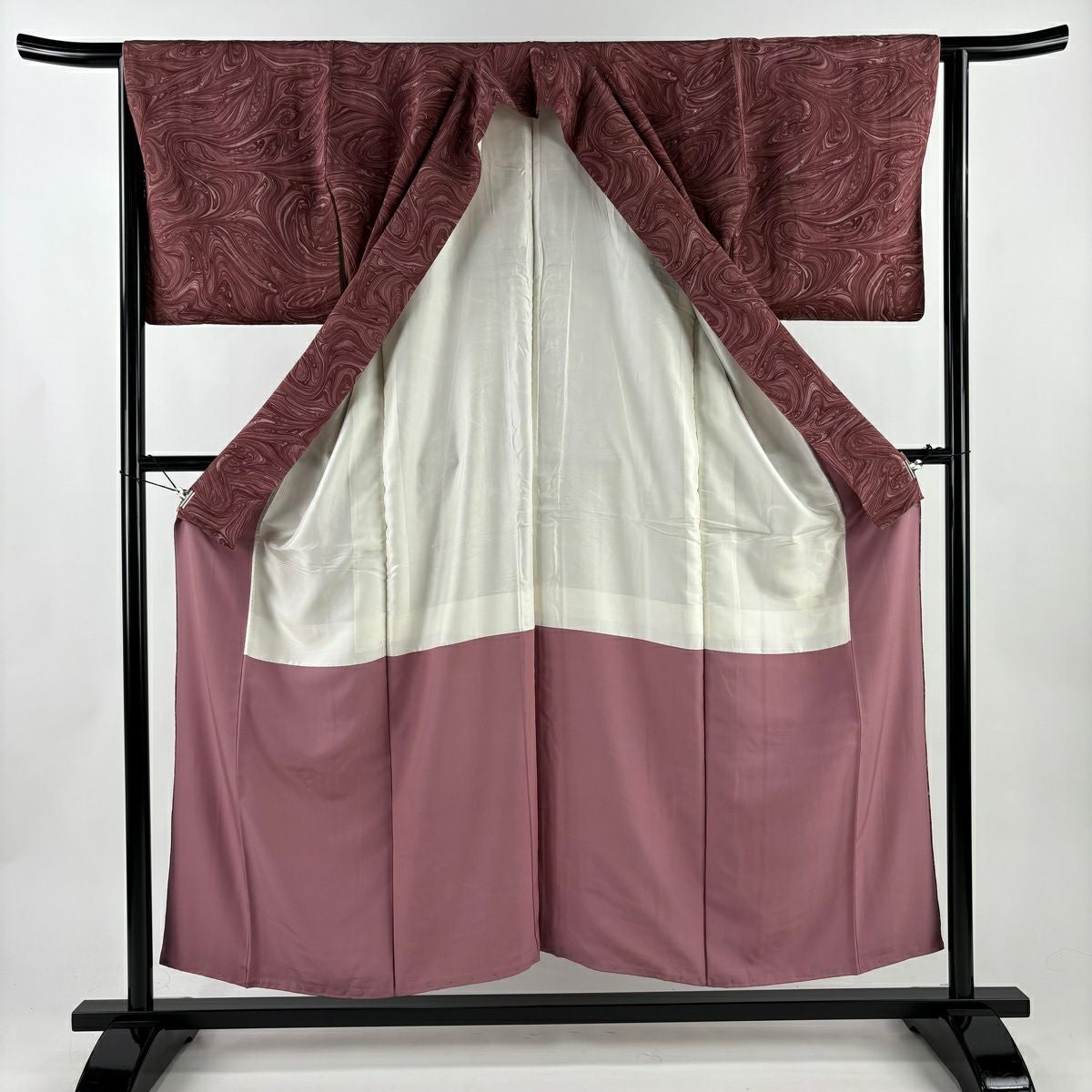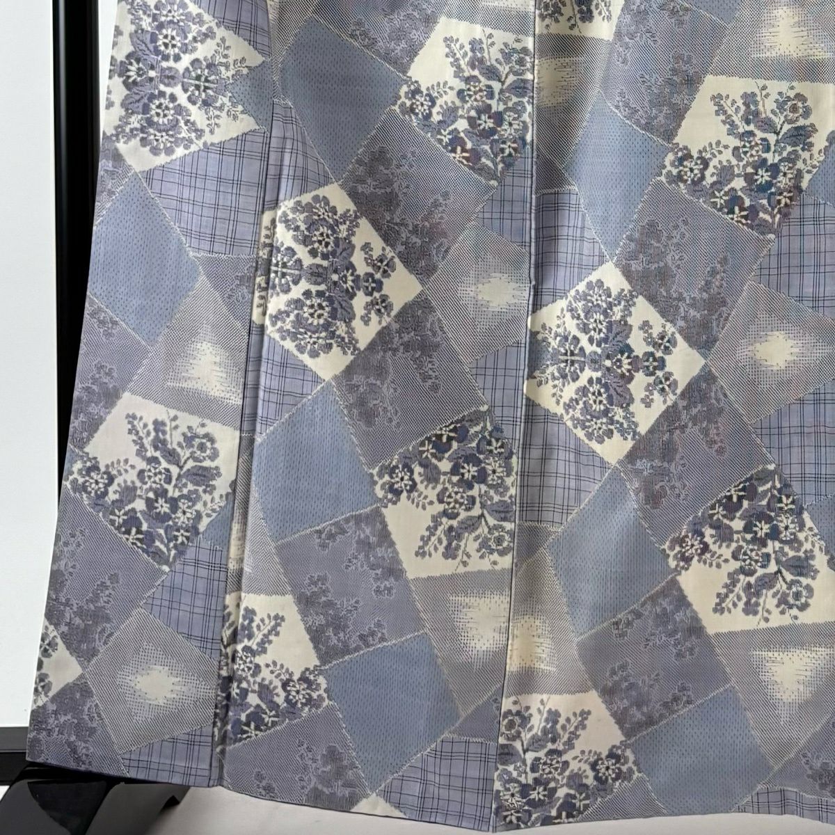 紬 身丈158.5cm 裄丈65cm M 袷 ねじり梅 七宝 灰紫 正絹 秀品