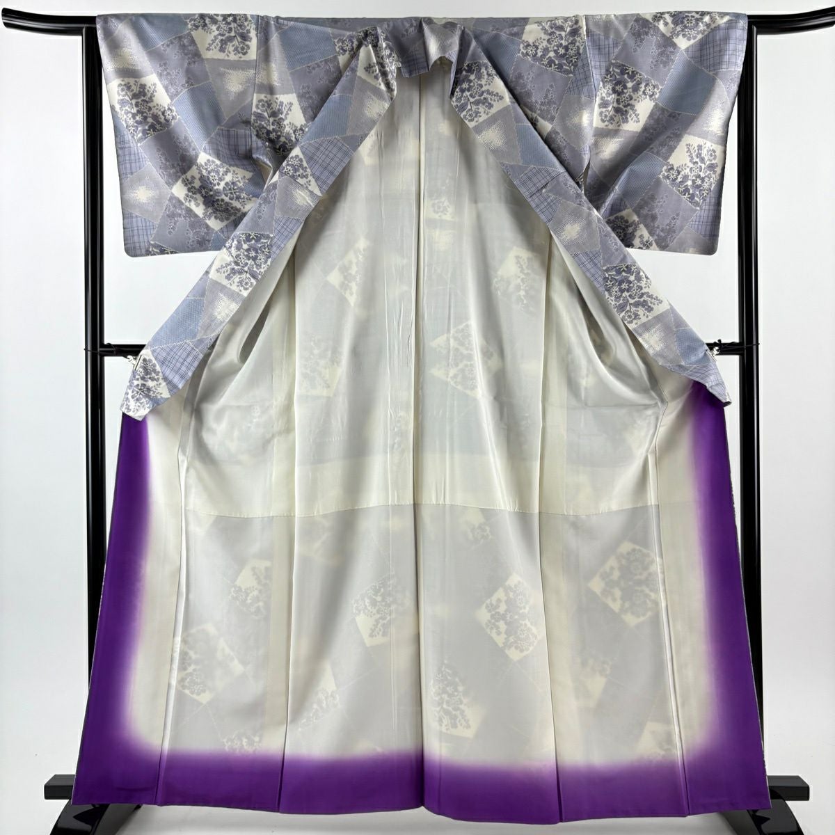 付下げ 身丈155cm 裄丈64cm M 袷 草花 ぼかし 灰色 正絹 秀品