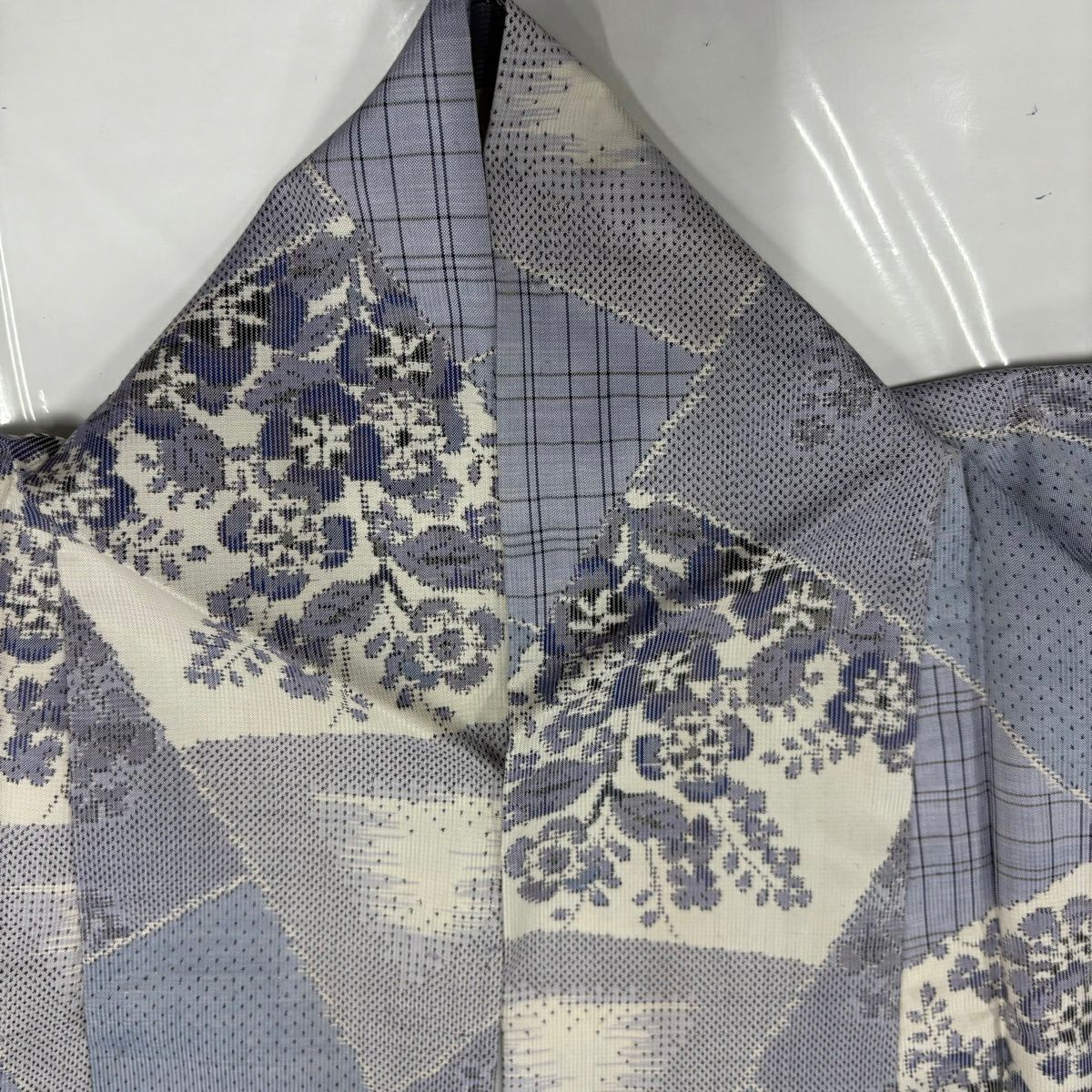 紬 身丈155.5cm 裄丈64cm M 袷 草花 寄せ柄 薄紫 正絹 秀品