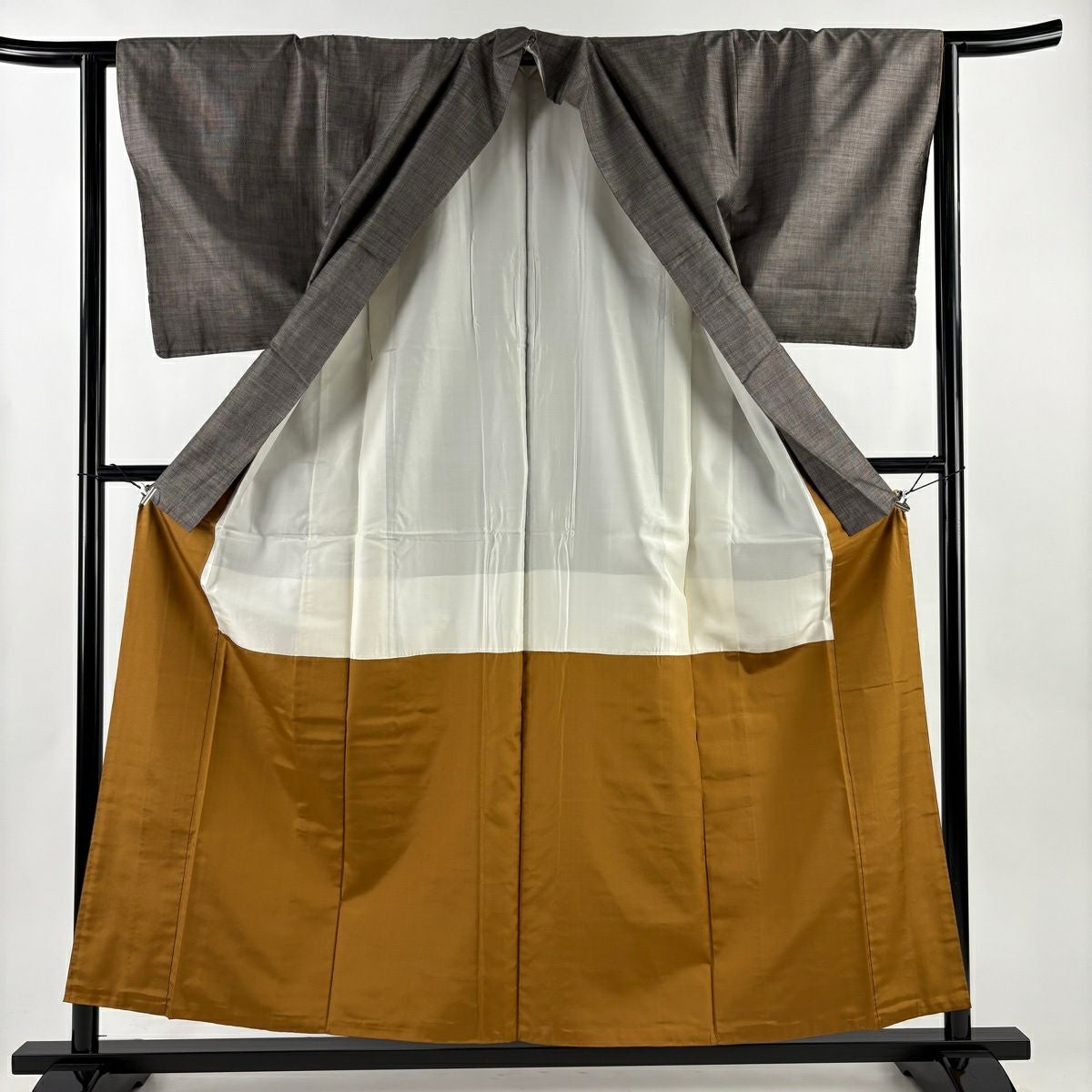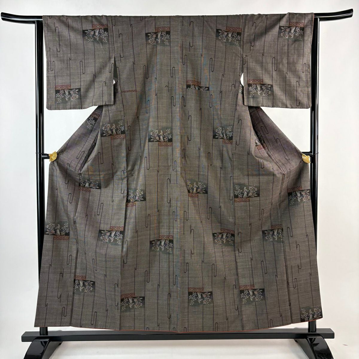 【美品】 紬 身丈156.5cm 裄丈63cm S 袷 縞 灰茶 正絹 秀品