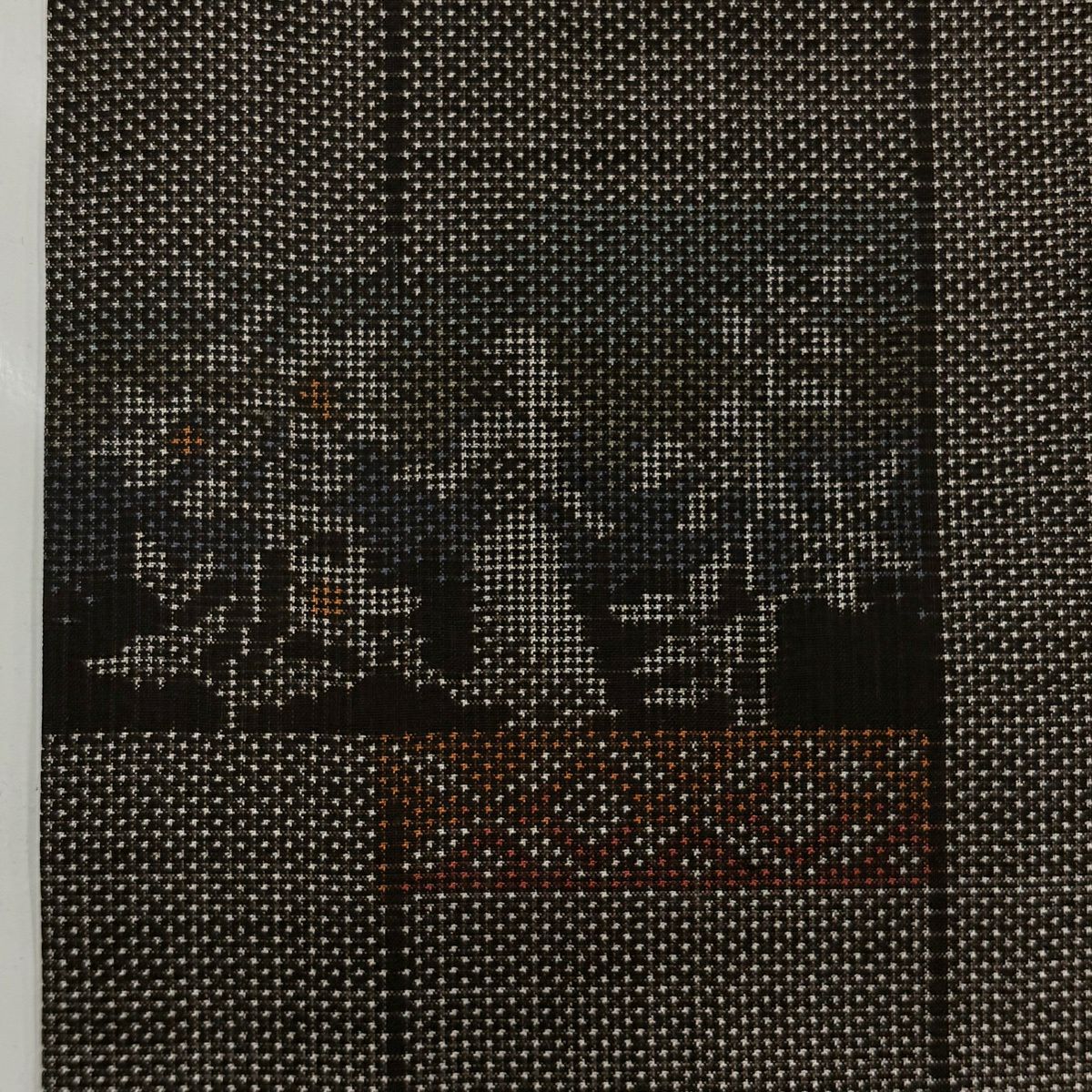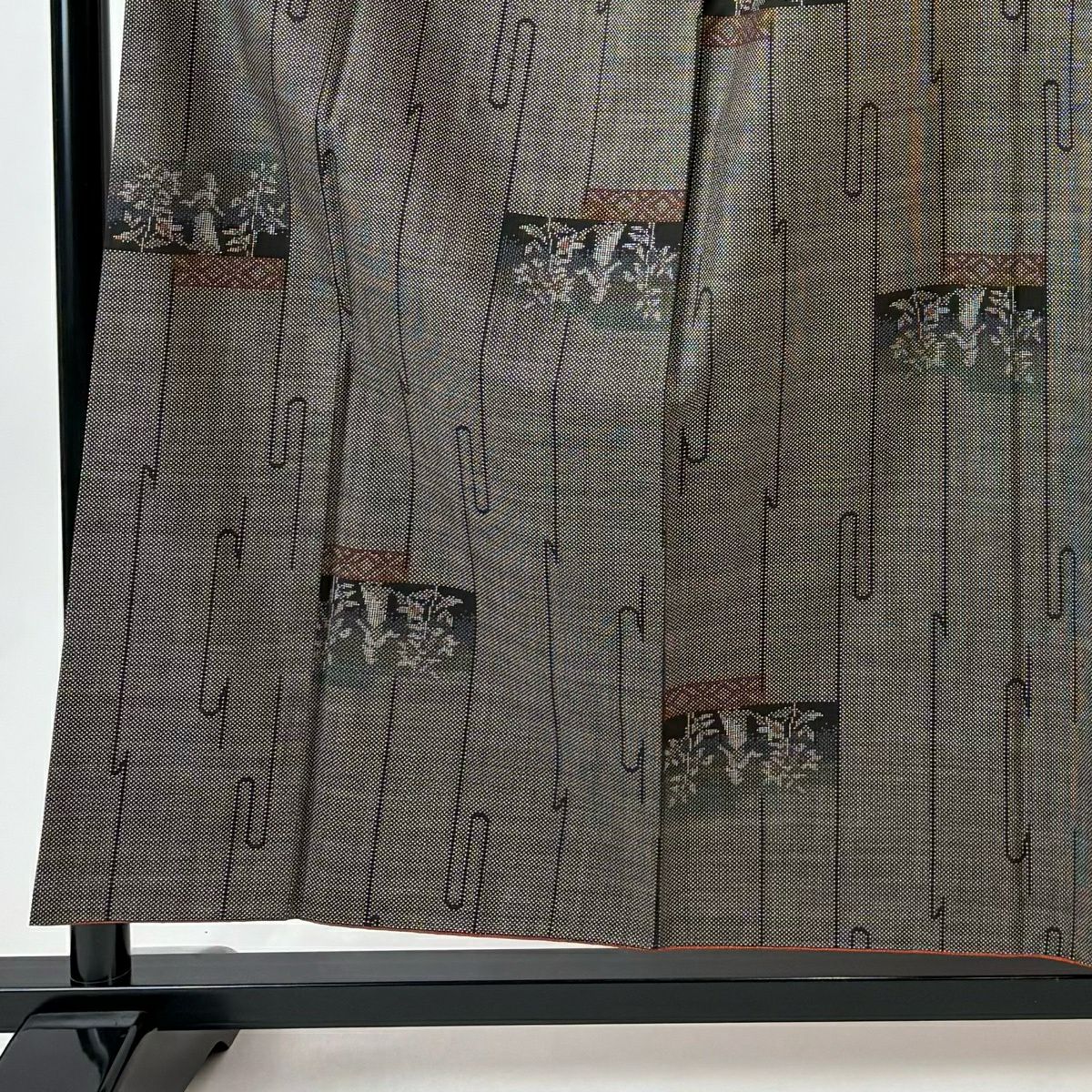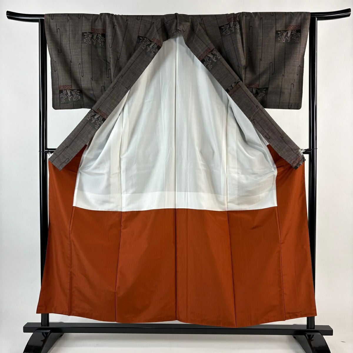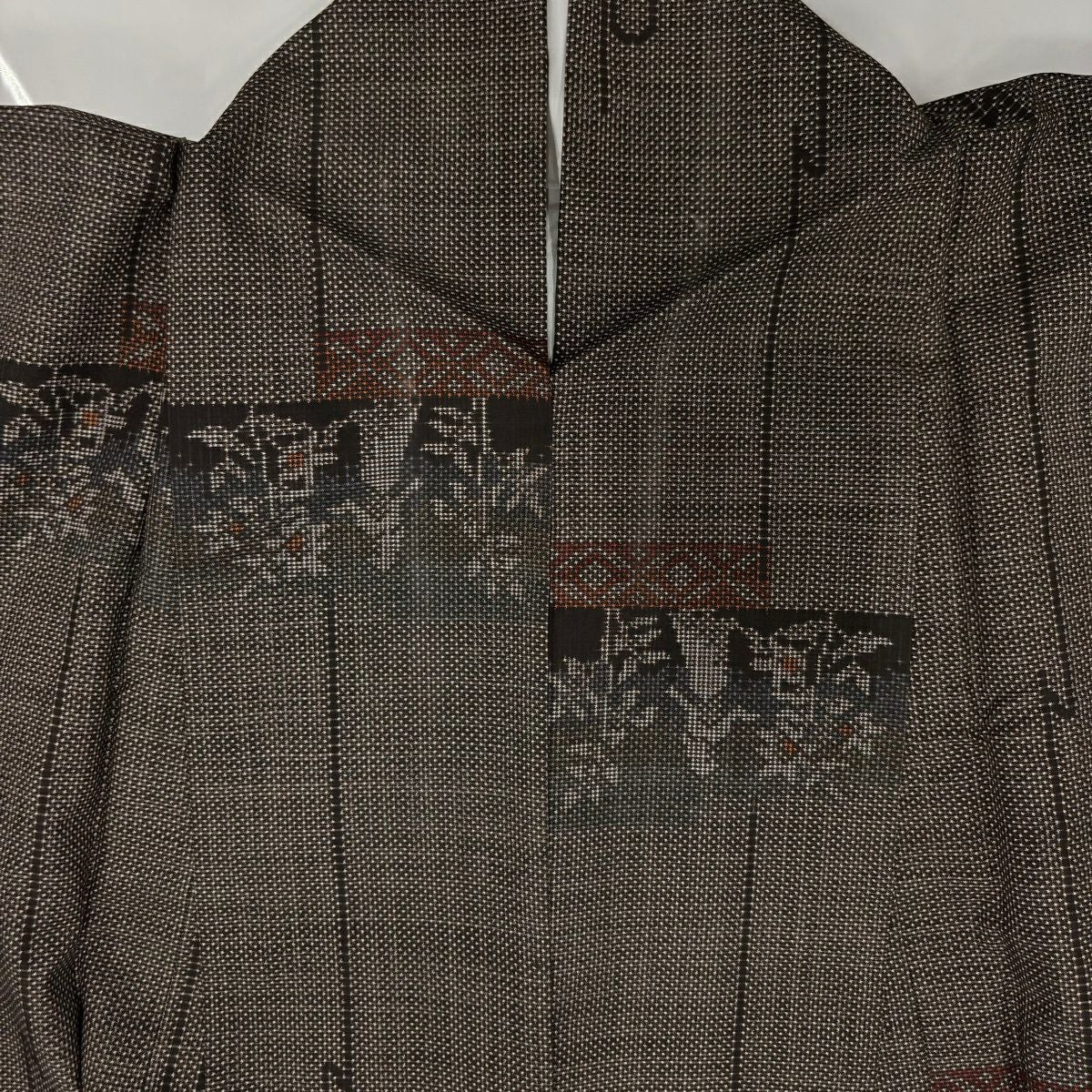 紬 身丈162.5cm 裄丈64.5cm M 袷 菱 幾何学 焦茶色 正絹 秀品