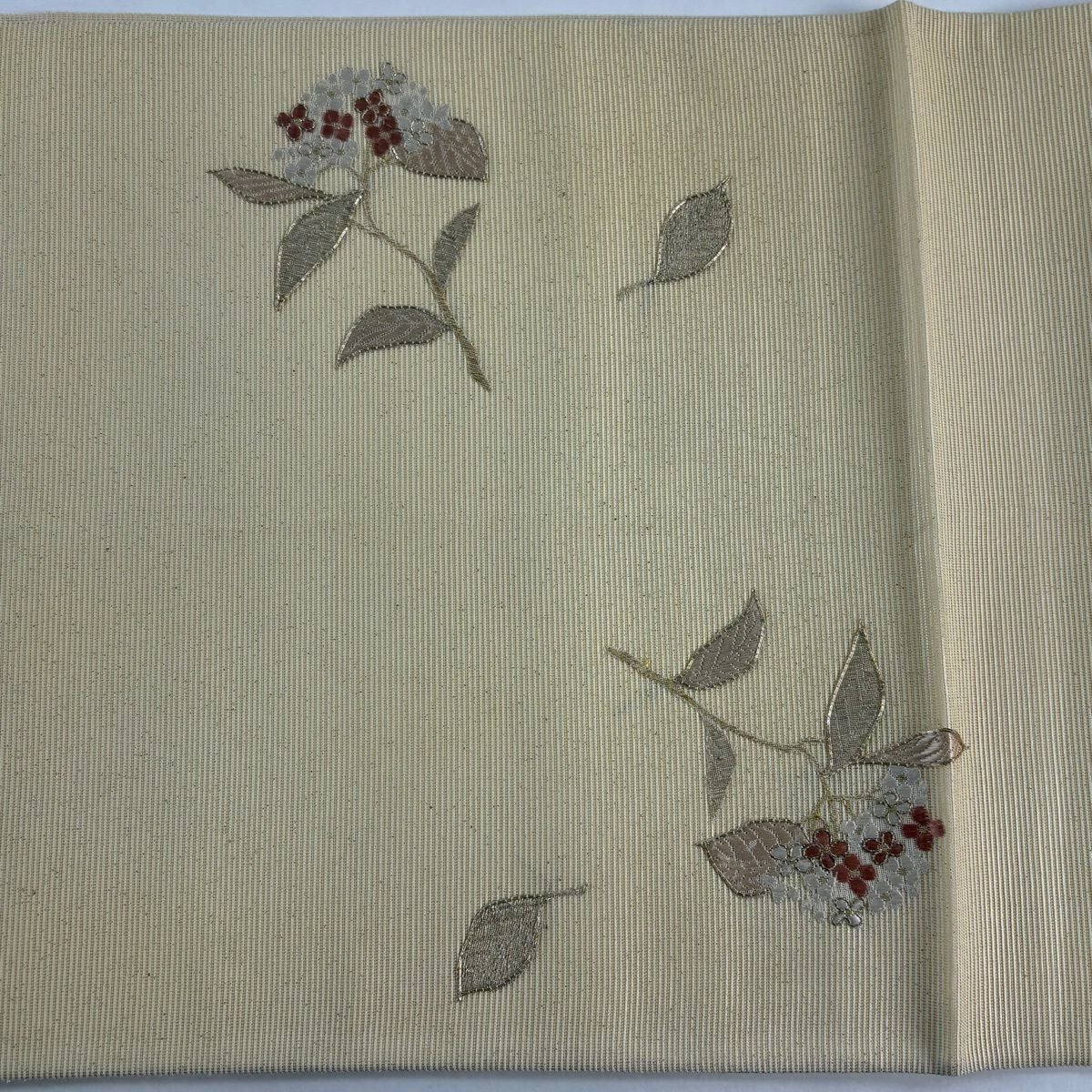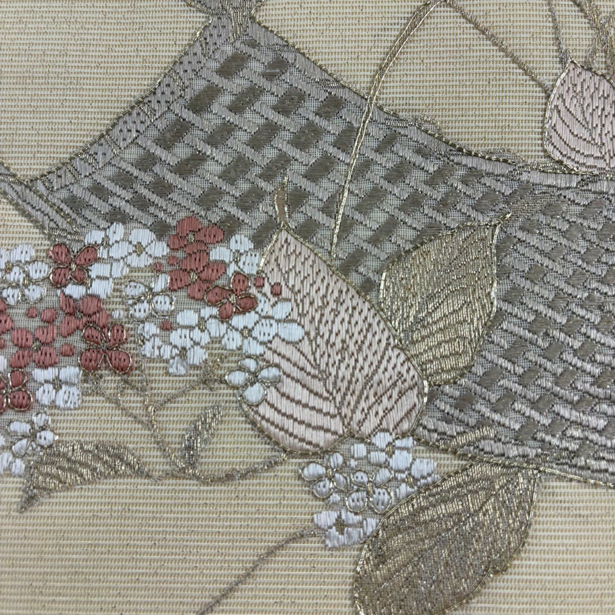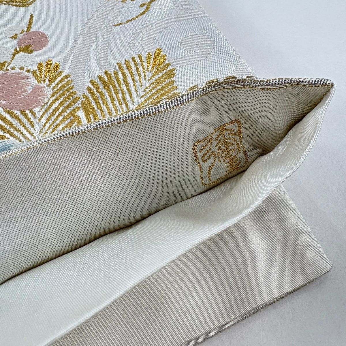 名古屋帯 秀品 夏帯 絽 八寸名古屋帯 松葉仕立て 草花 金銀糸 クリーム 正絹