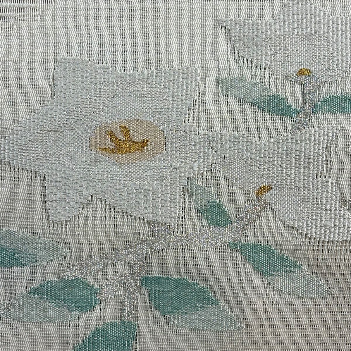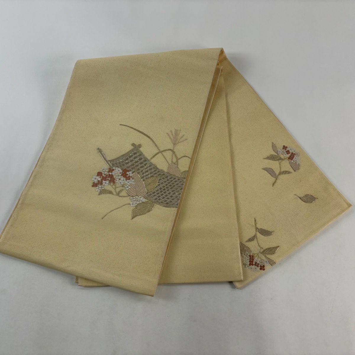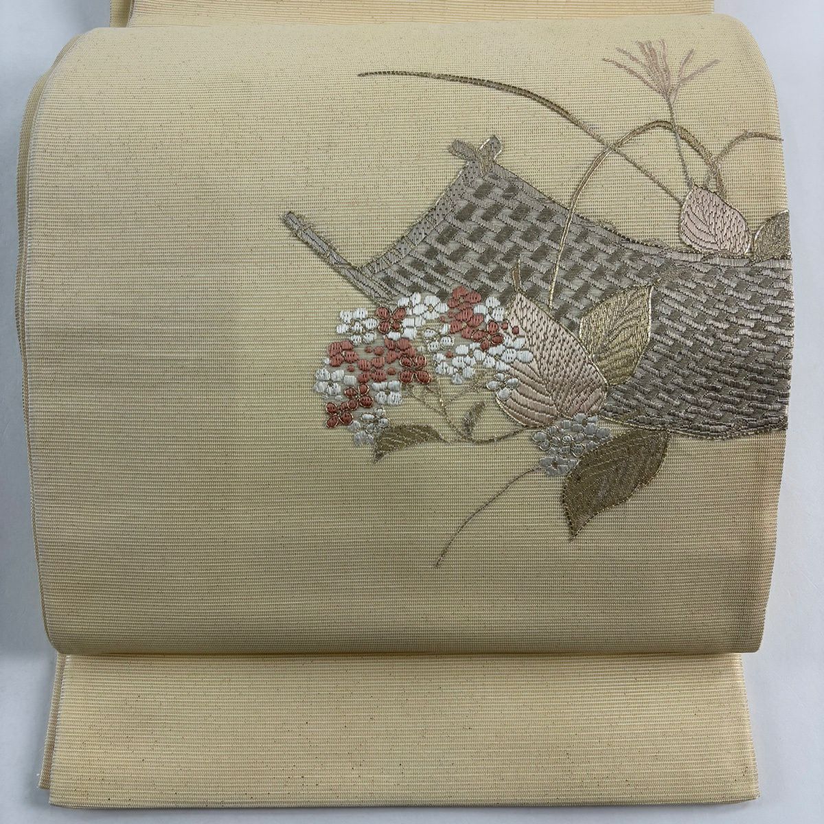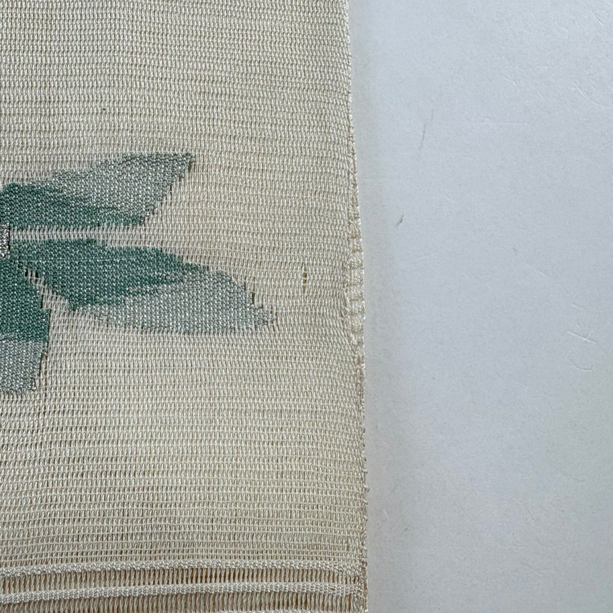 名古屋帯 秀品 夏帯 絽 八寸名古屋帯 松葉仕立て 草花 金銀糸 クリーム 正絹