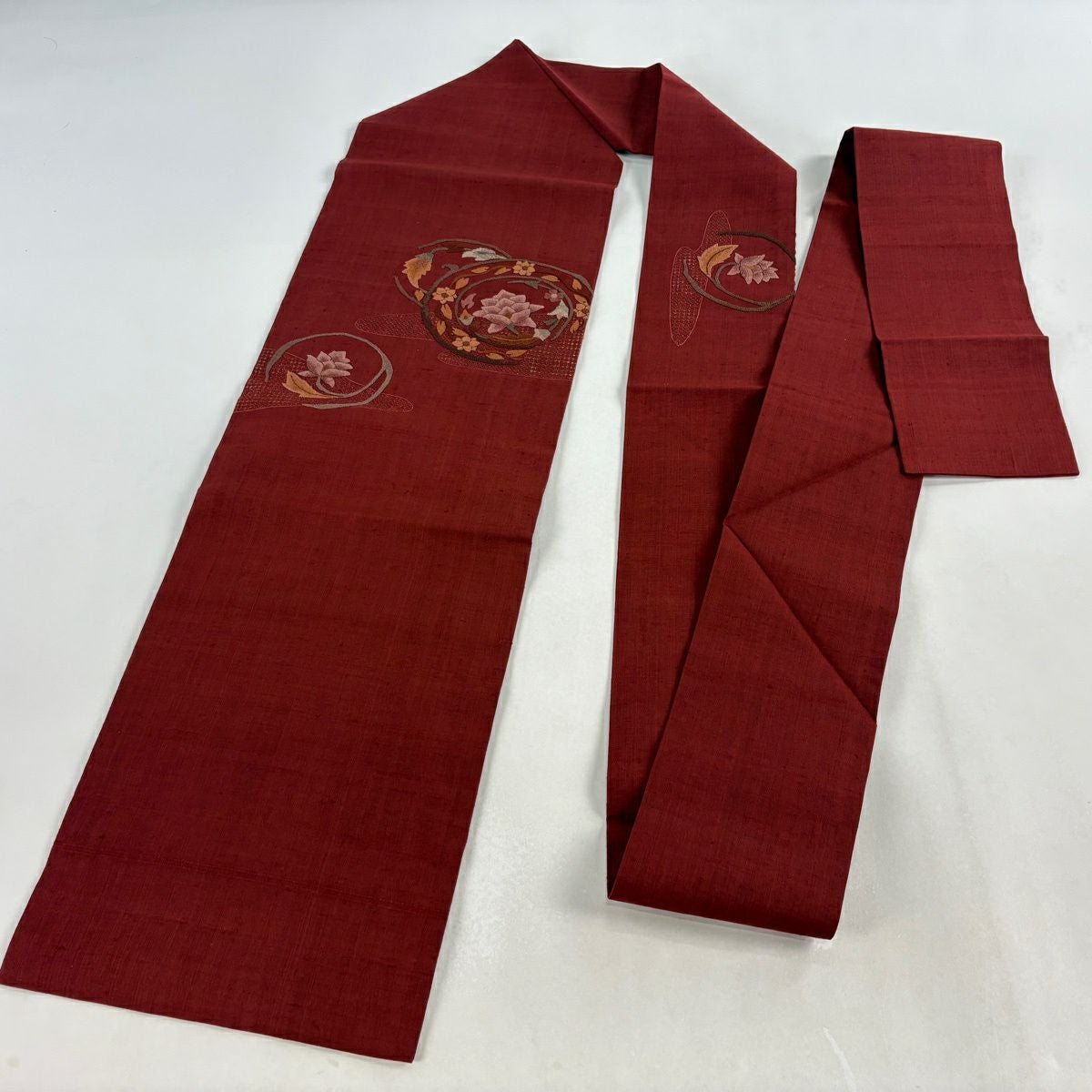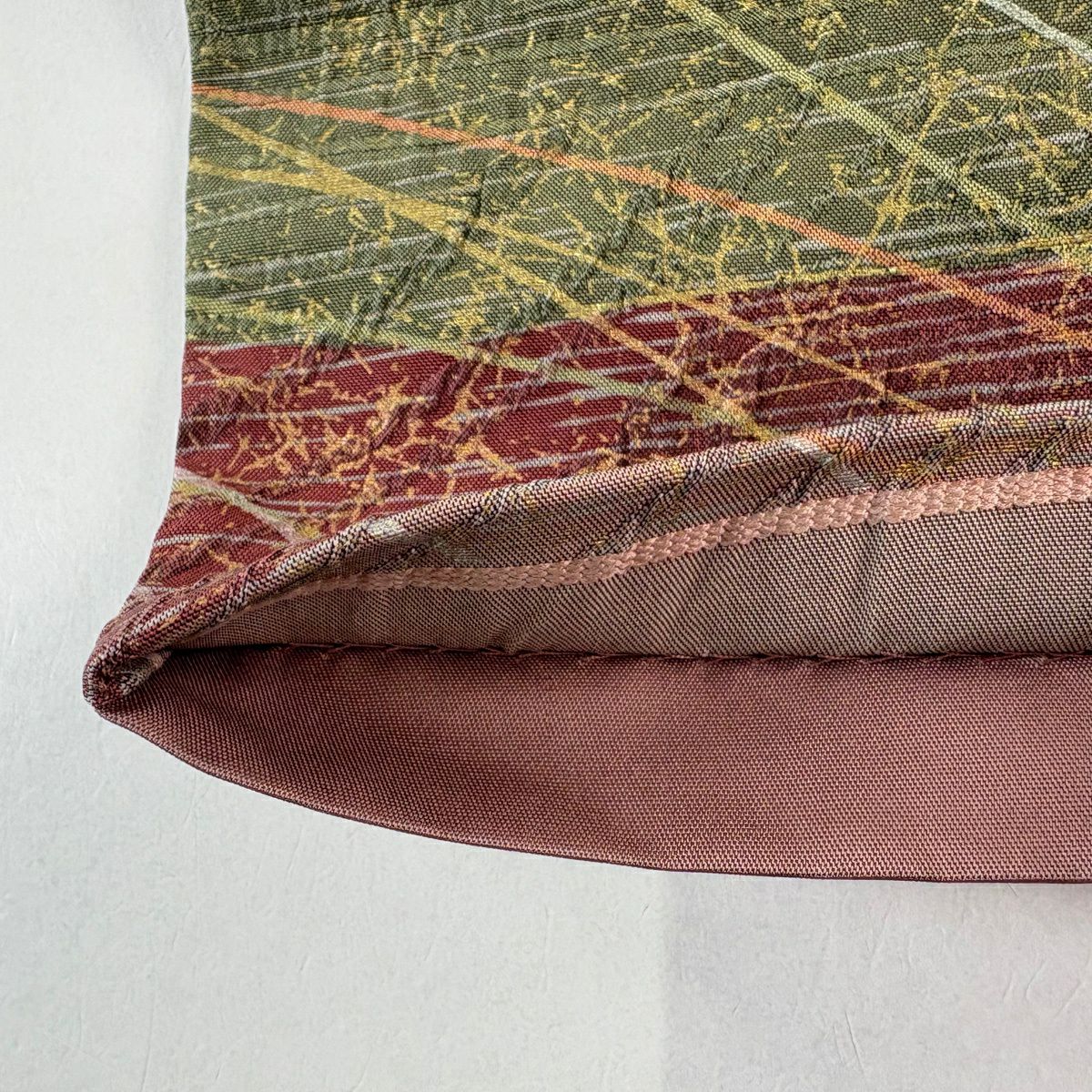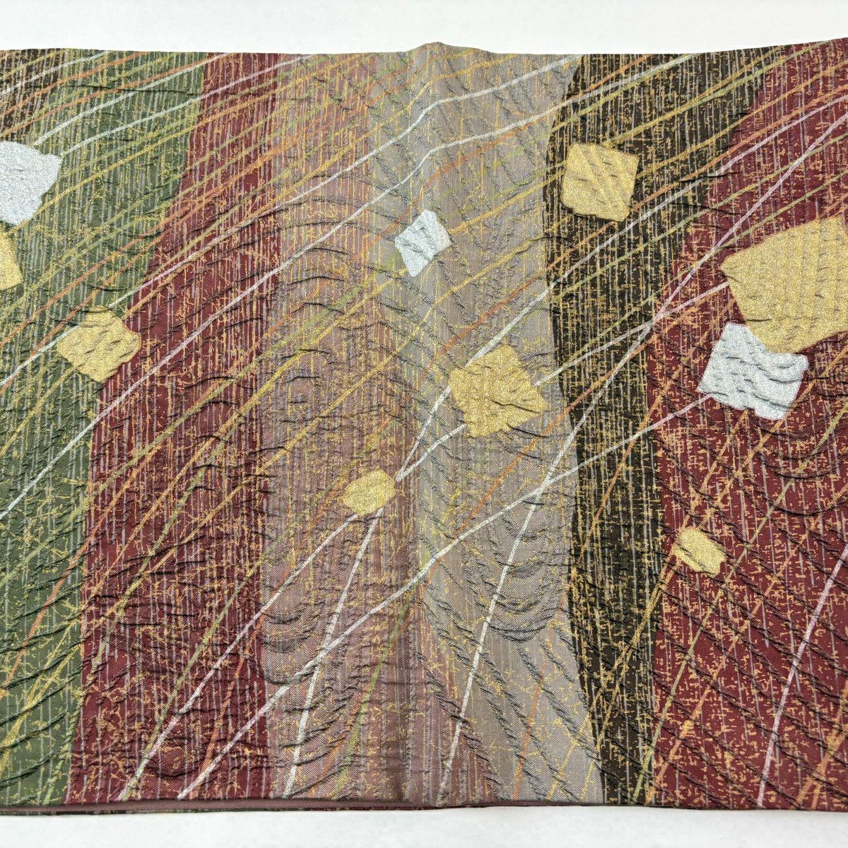 【美品】 袋帯 秀品 紬地 箔散らし 幾何学模様 金銀彩 赤紫 全通 正絹