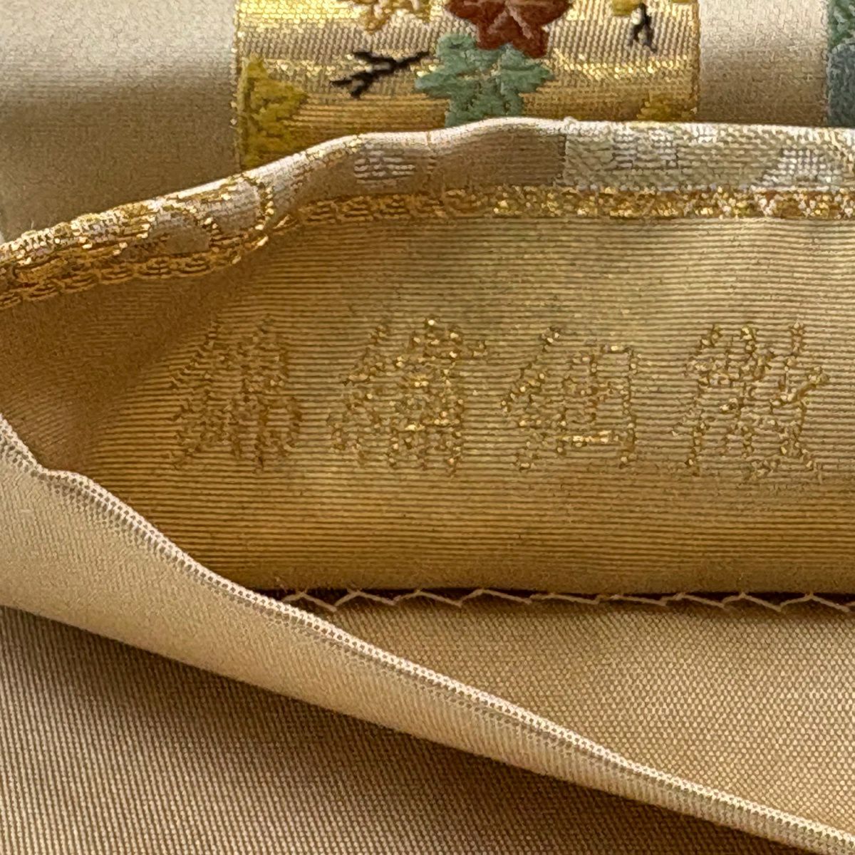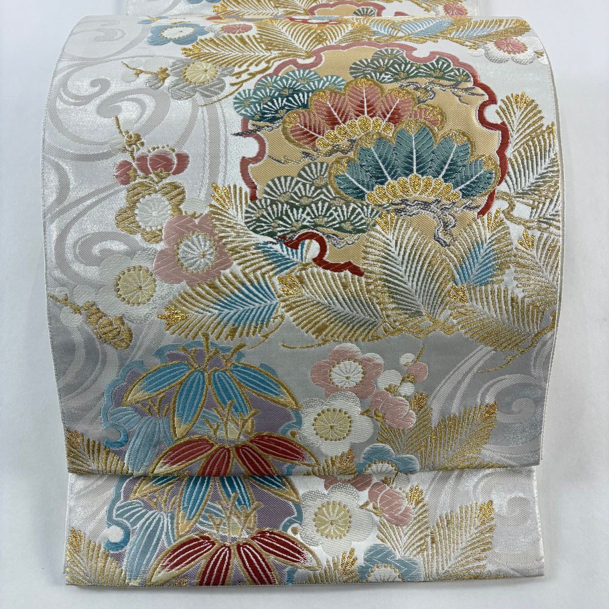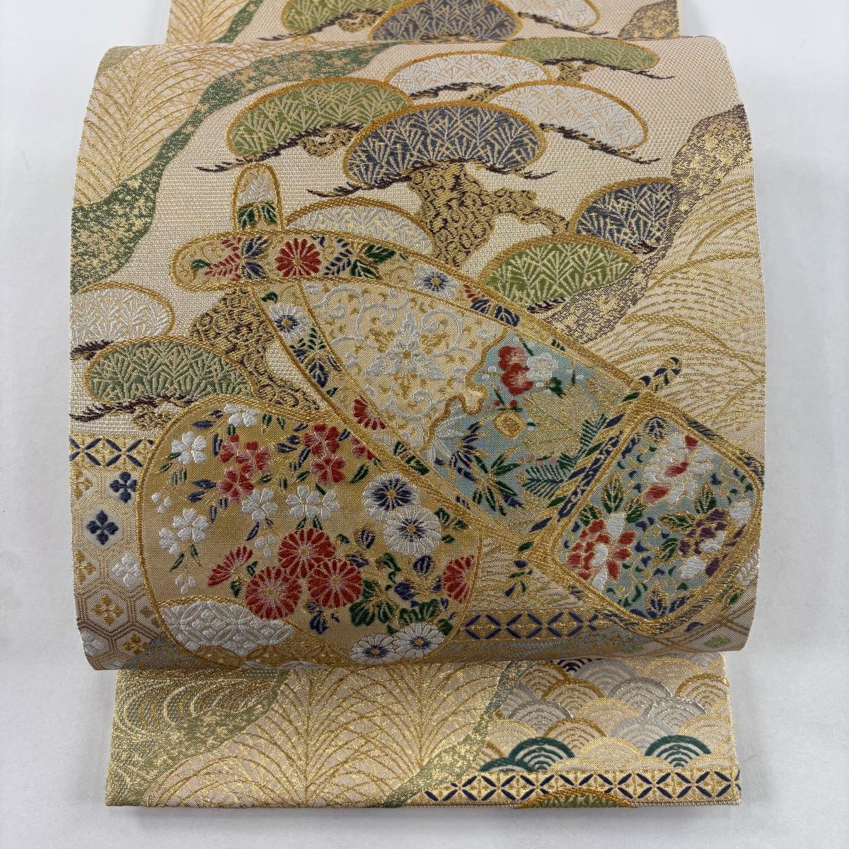 【美品】 袋帯 秀品 松竹梅 青海波 金銀糸 箔 ベージュ 六通 正絹