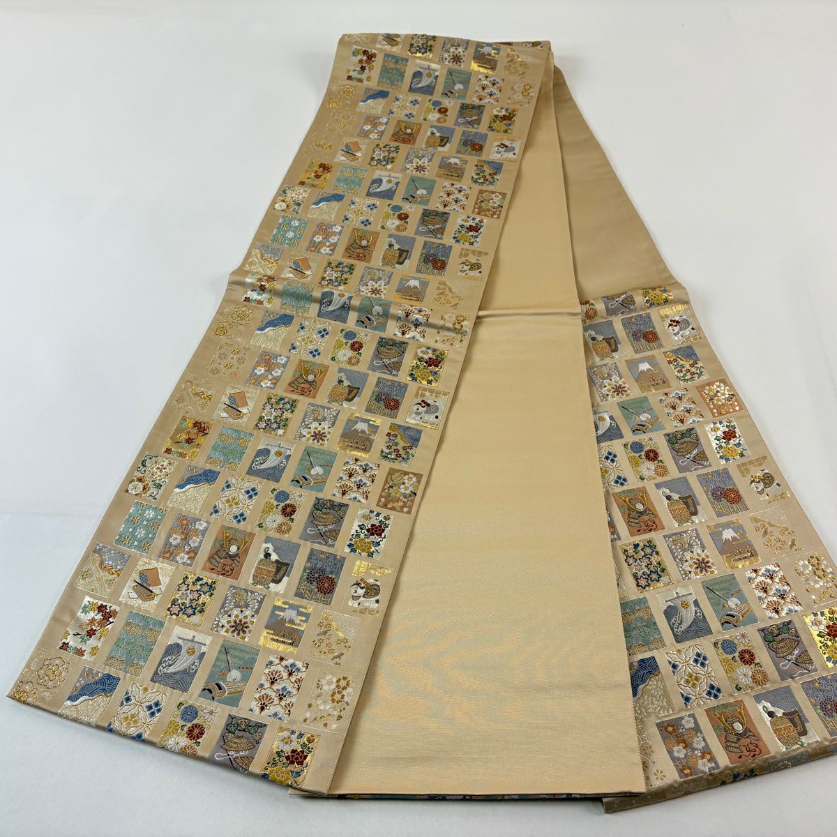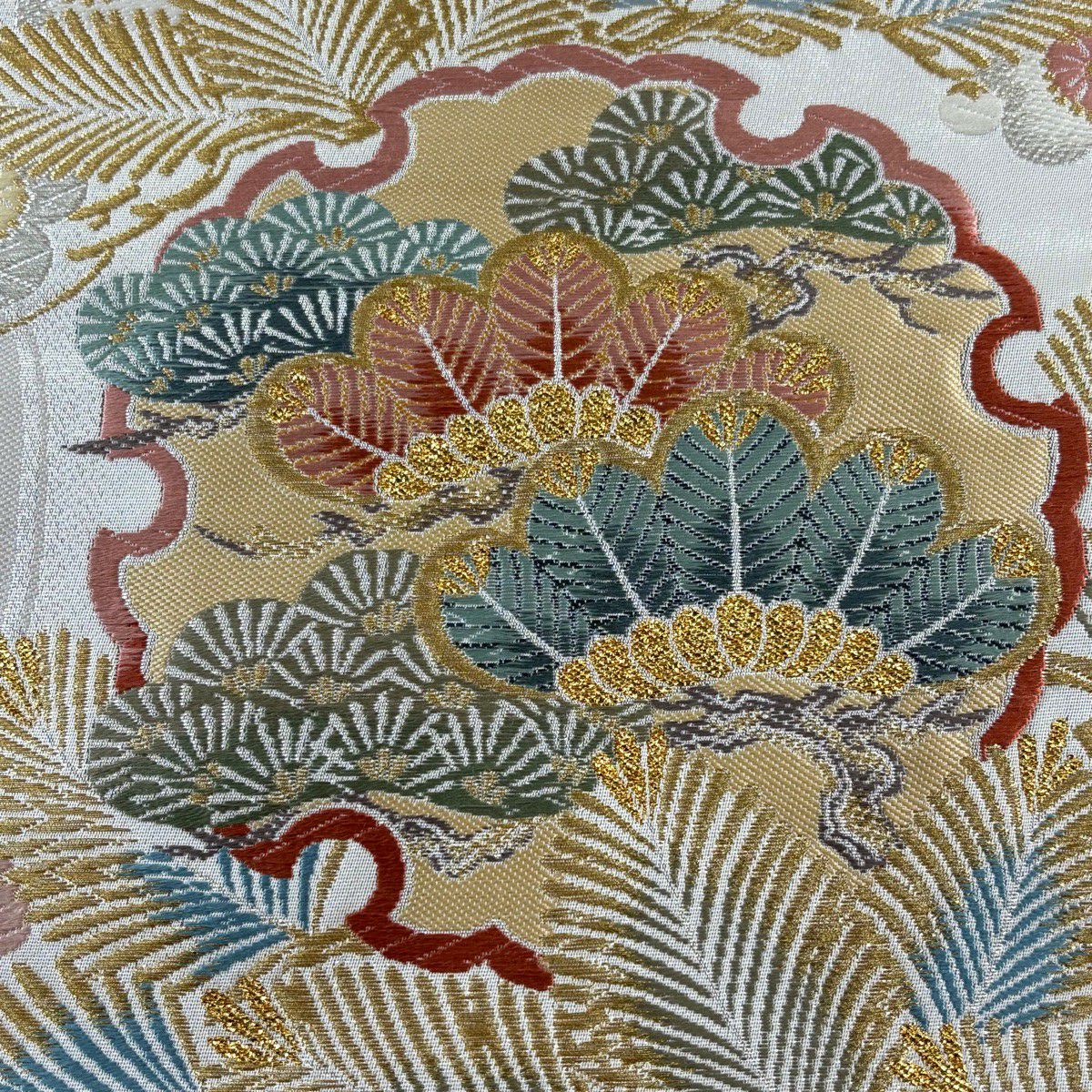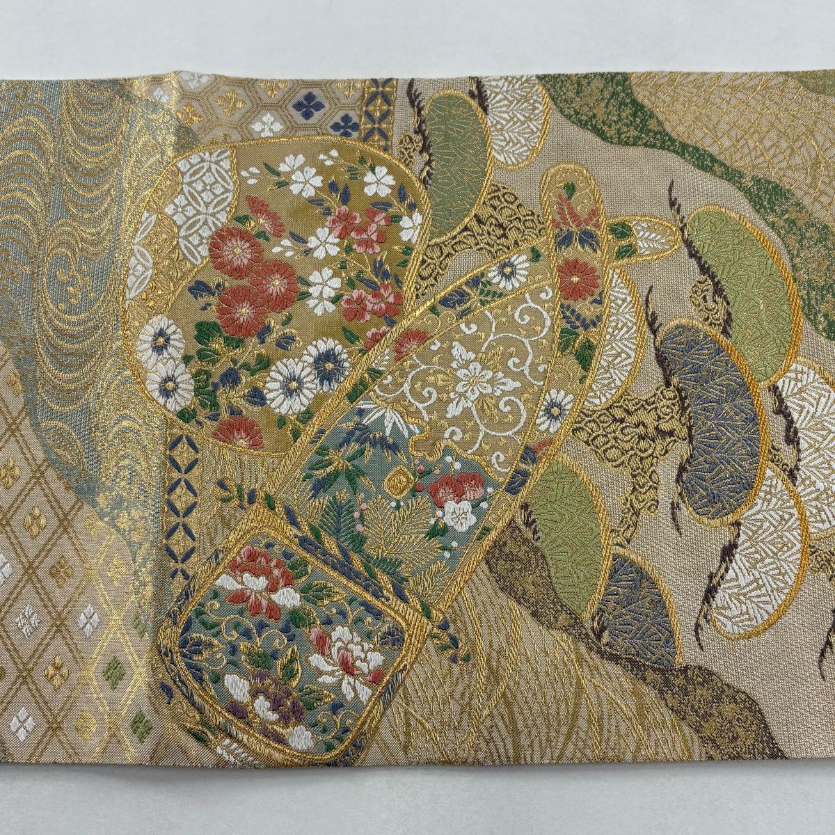 【美品】 袋帯 秀品 松竹梅 青海波 金銀糸 箔 ベージュ 六通 正絹