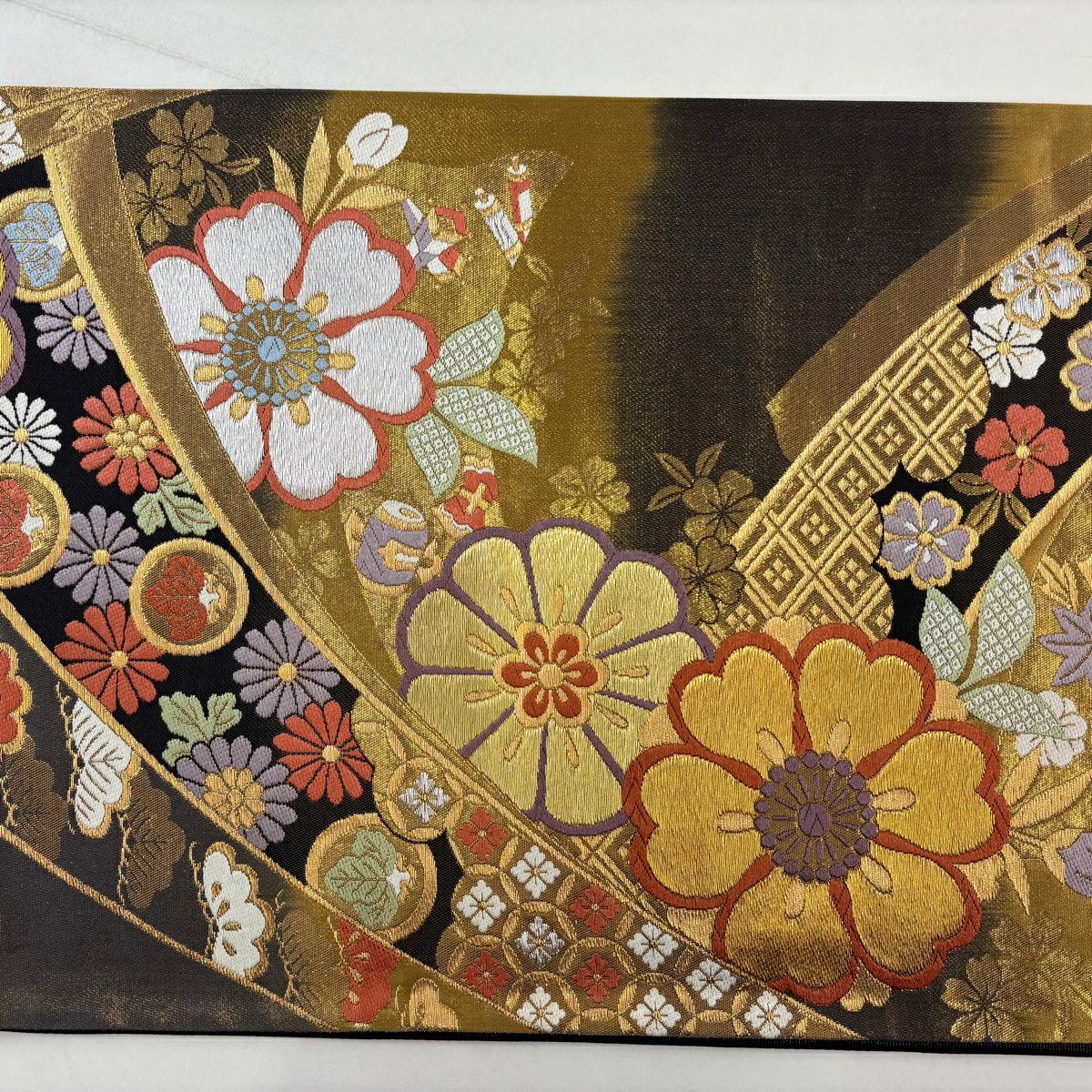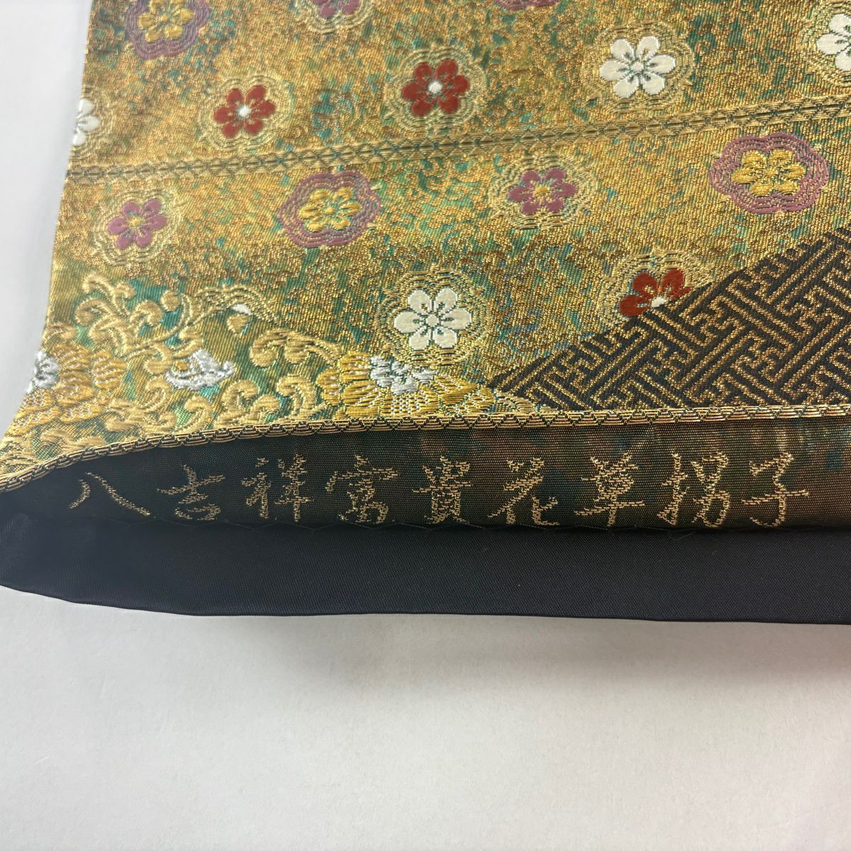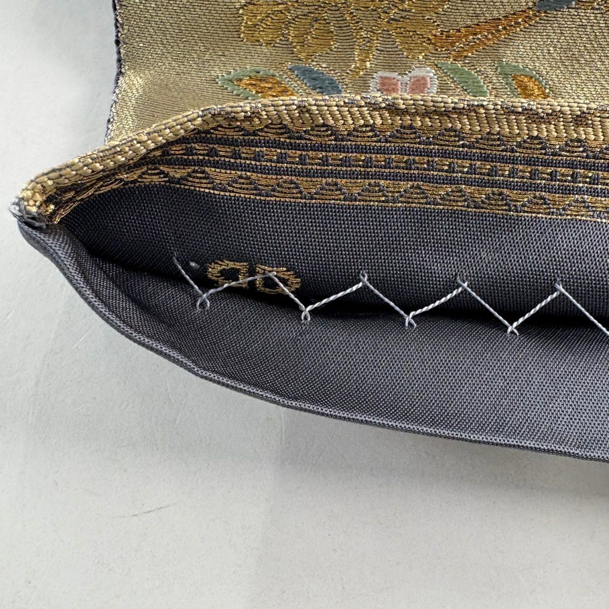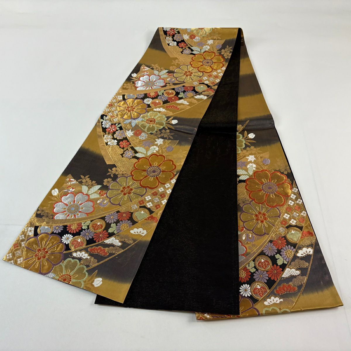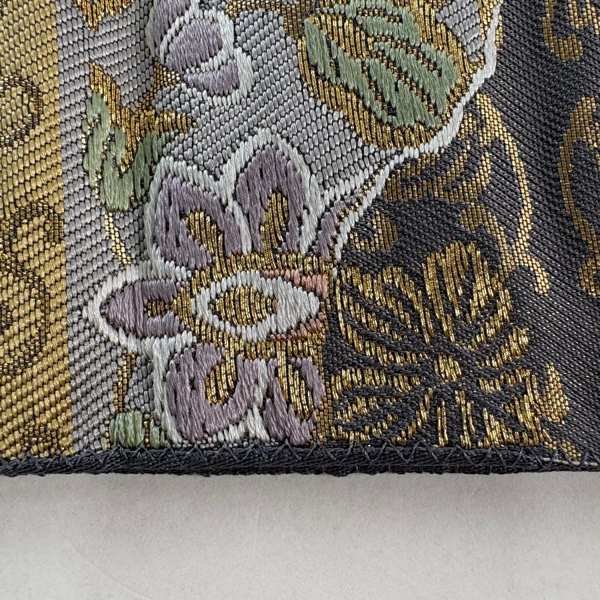 【美品】 袋帯 秀品 振袖向き 草花 有職文様 金銀糸 箔 金色 六通 正絹