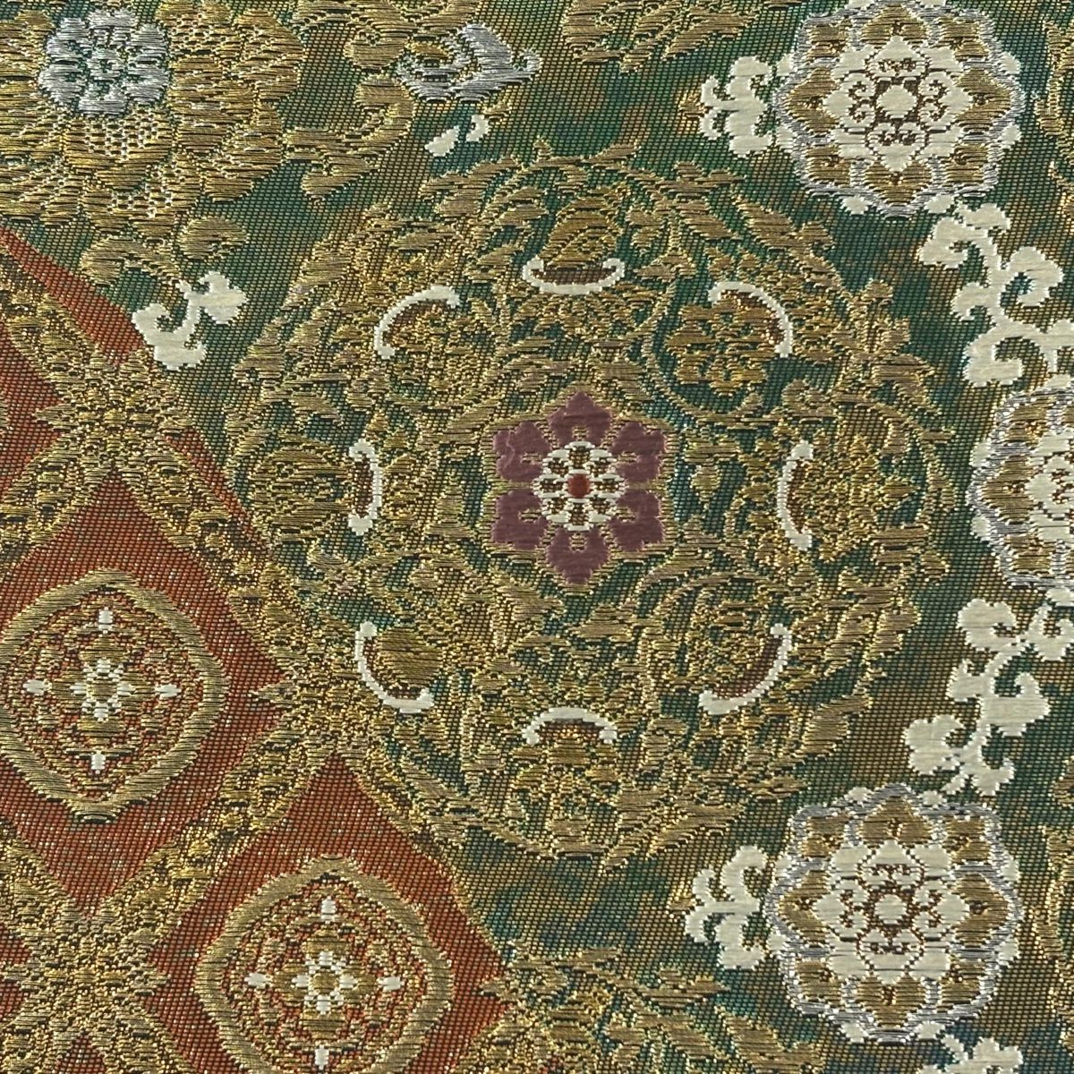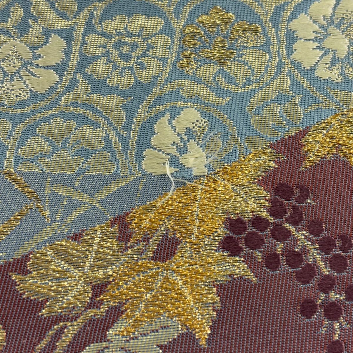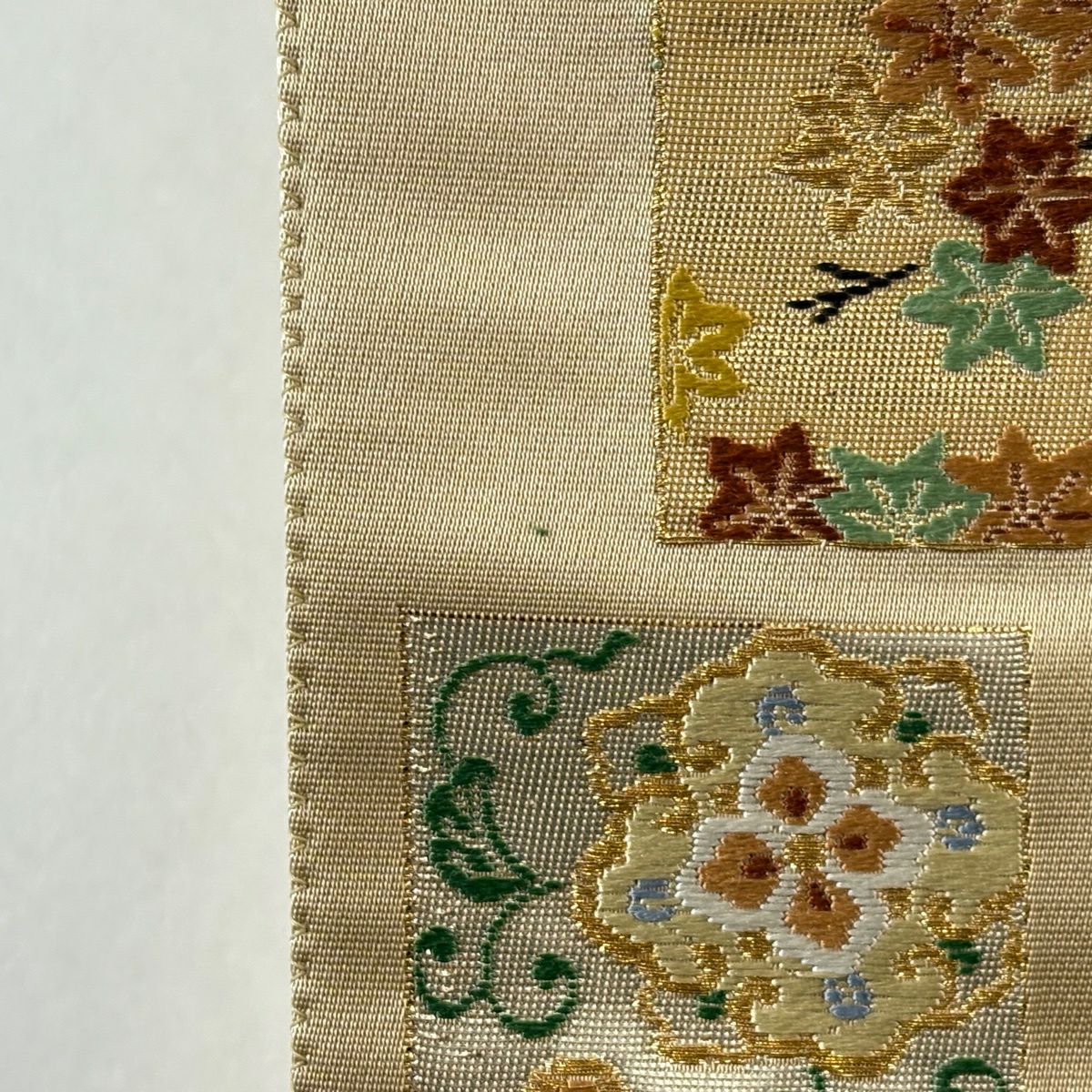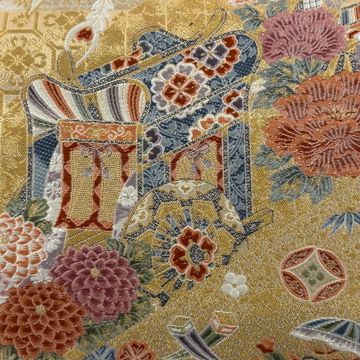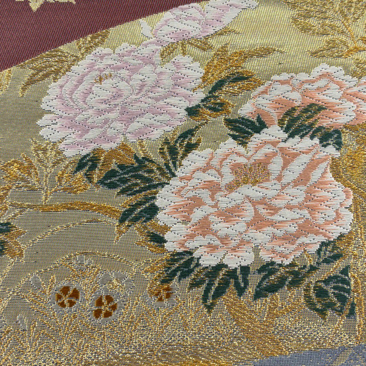 【美品】 袋帯 秀品 振袖向き 草花 有職文様 金銀糸 箔 金色 六通 正絹