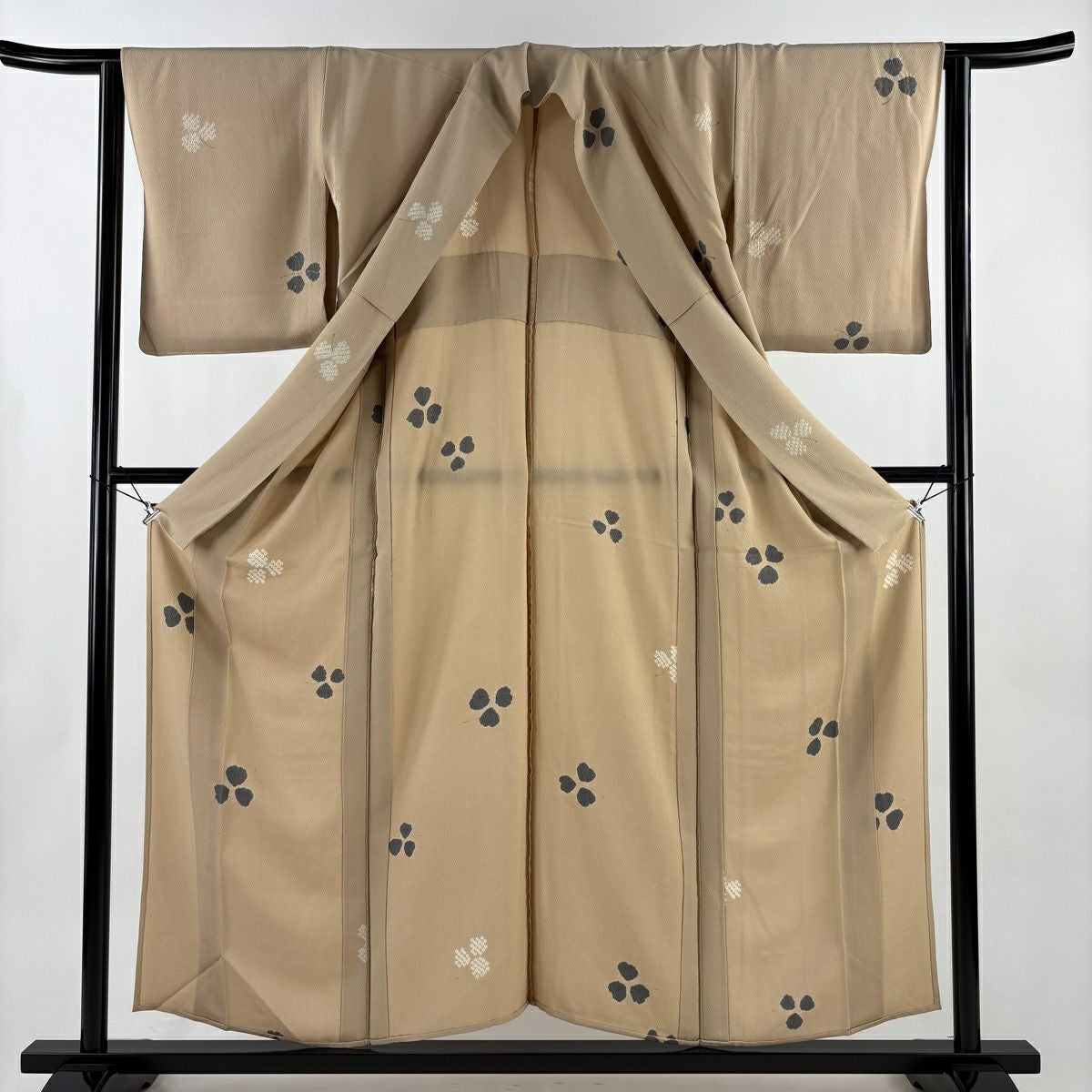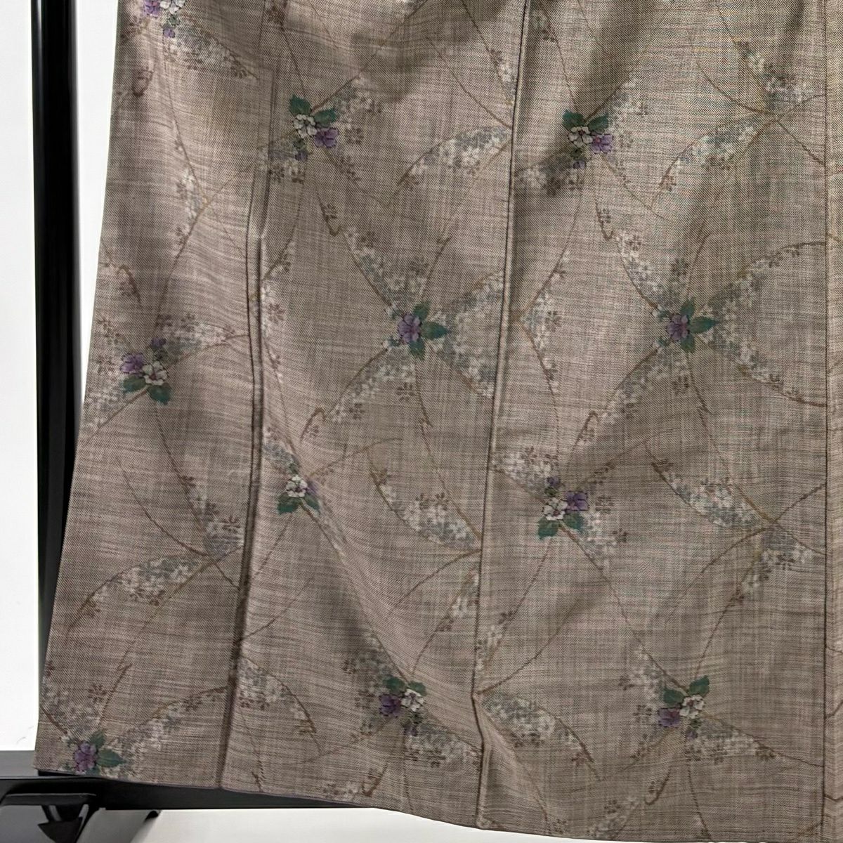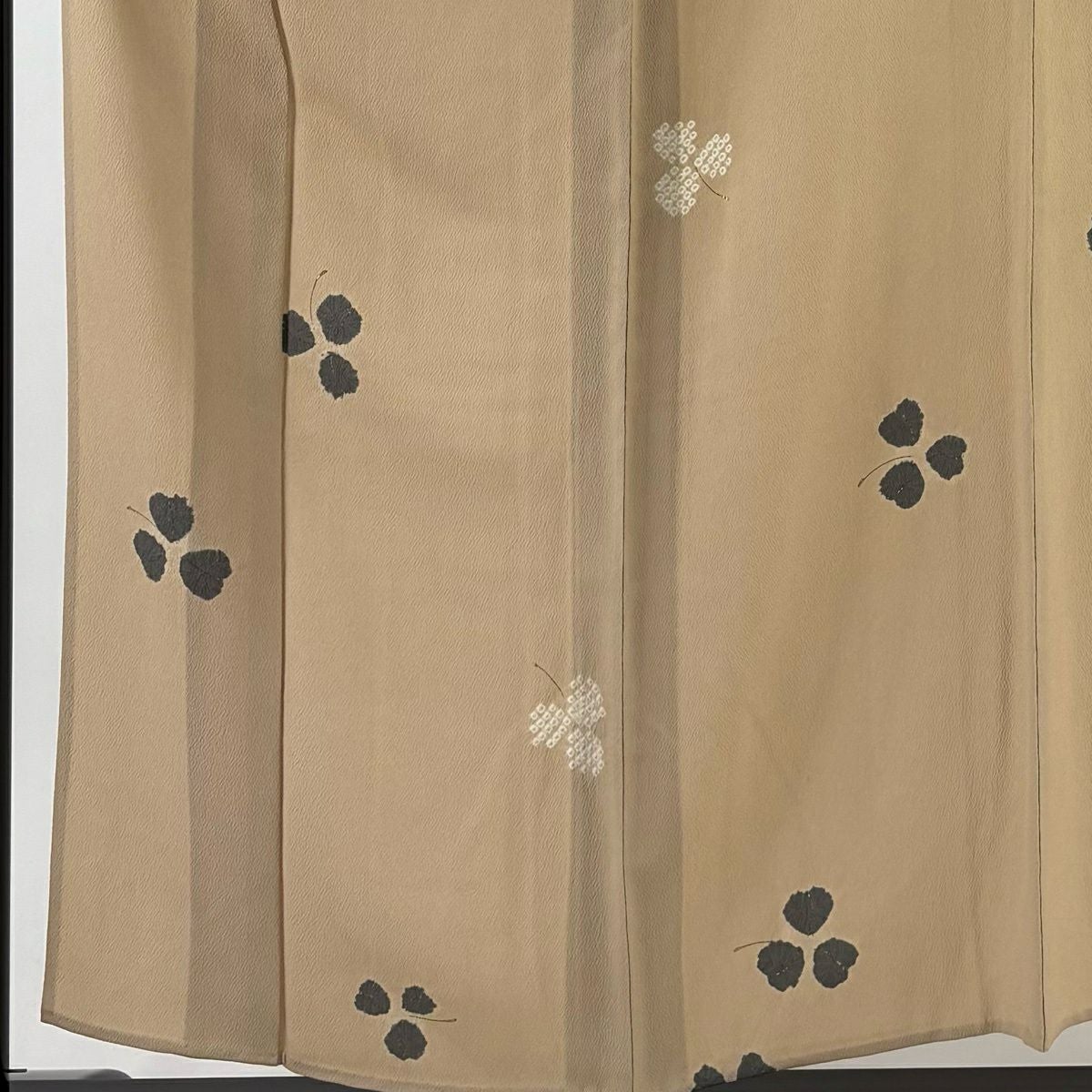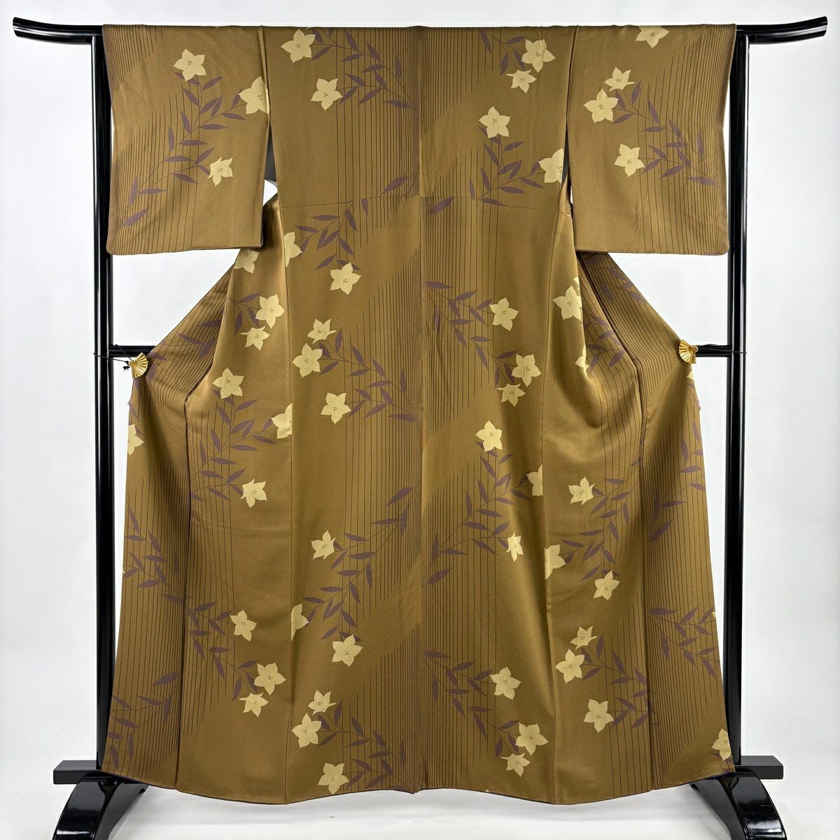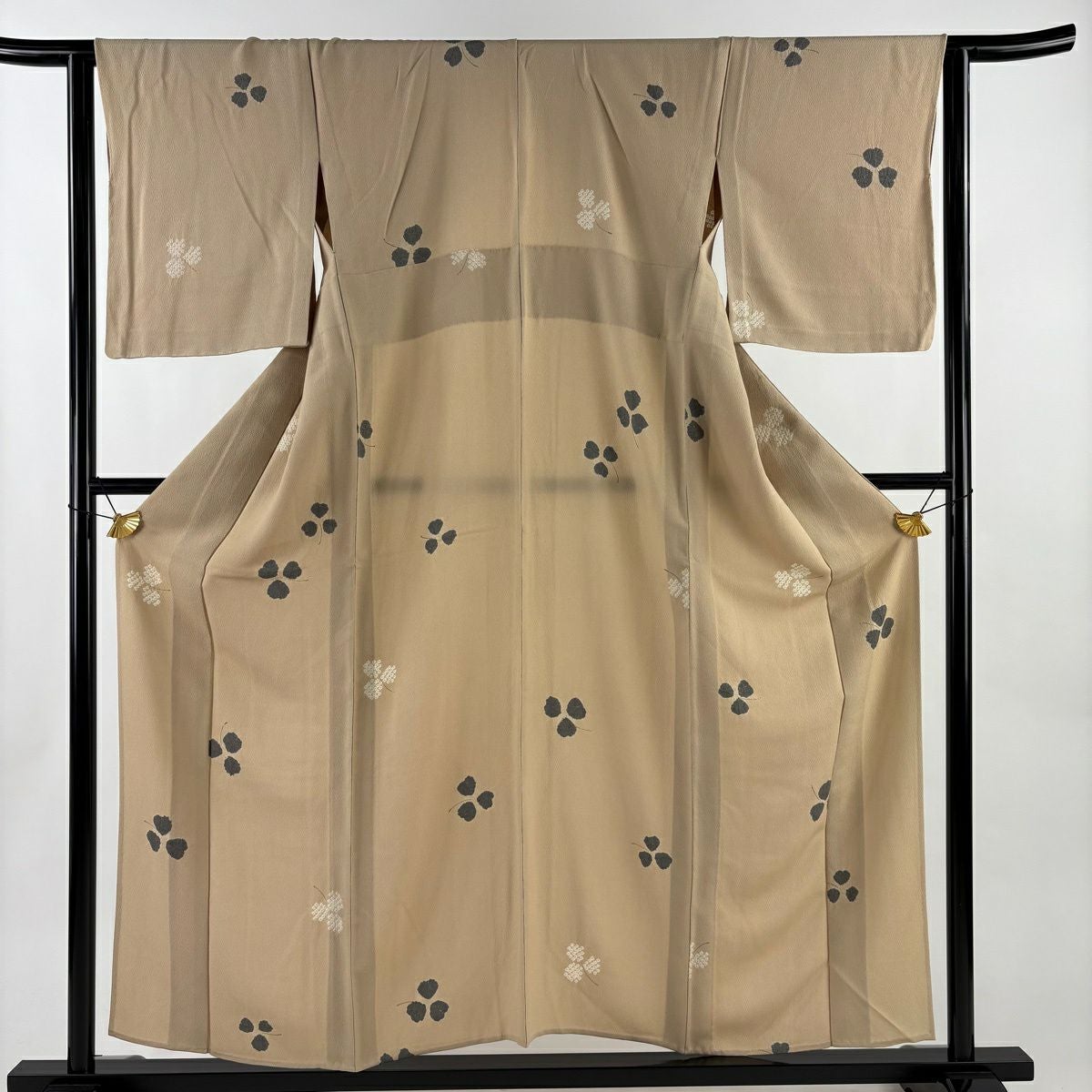 小紋 身丈156cm 裄丈63cm S 単衣 葉柄 金彩 薄茶色 正絹 秀品