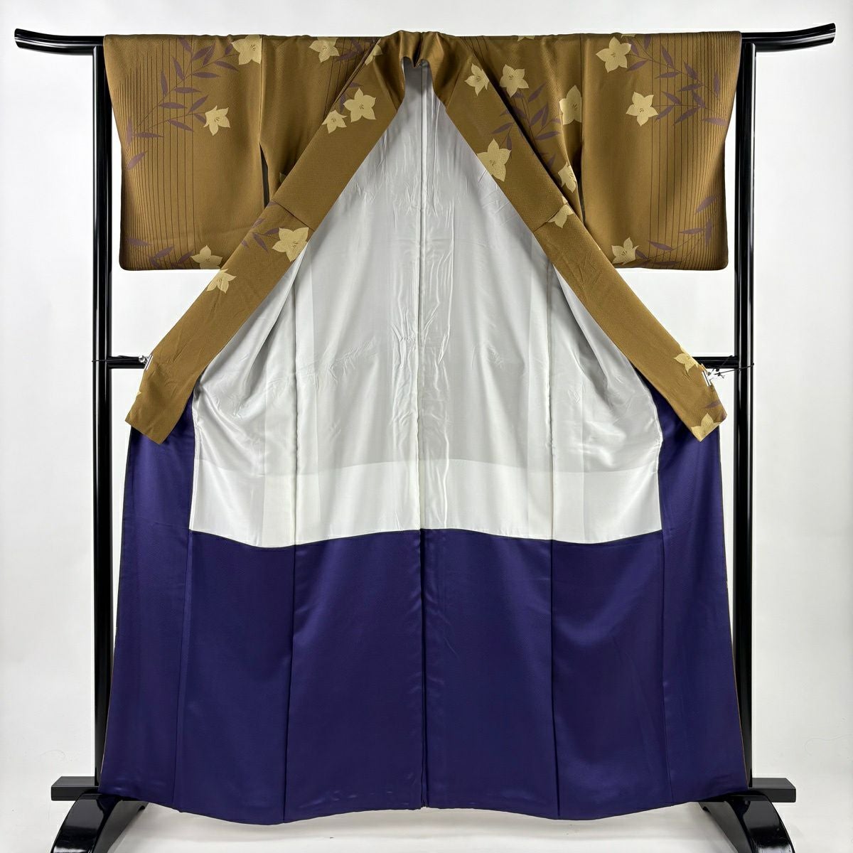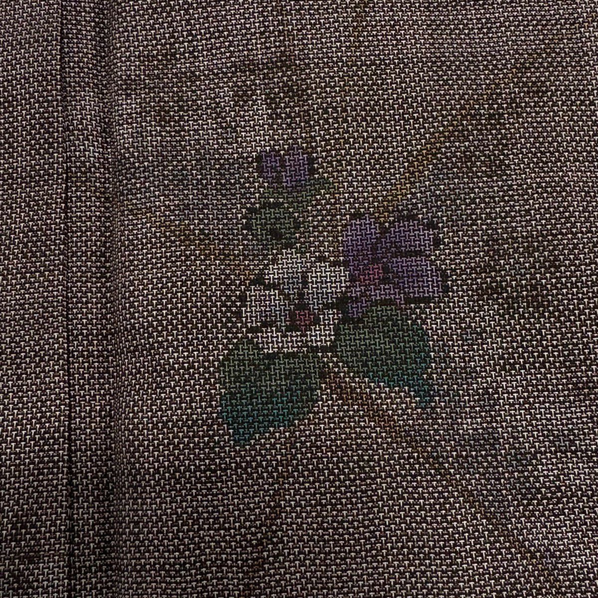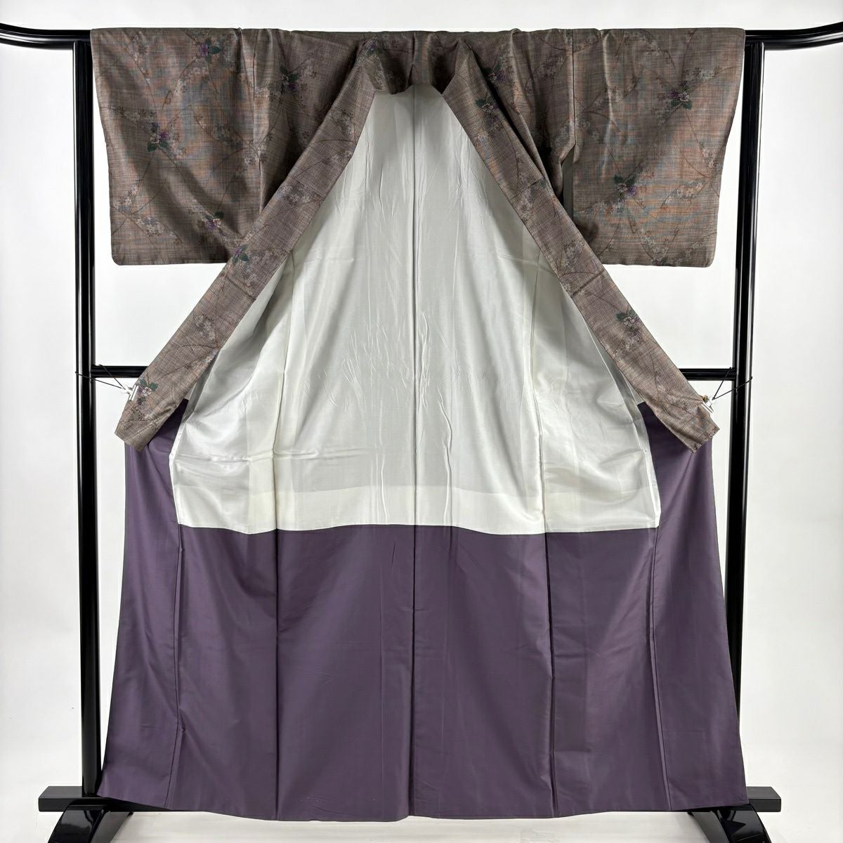 【美品】 紬 身丈162cm 裄丈63cm S 袷 草花 焦茶色 正絹 秀品
