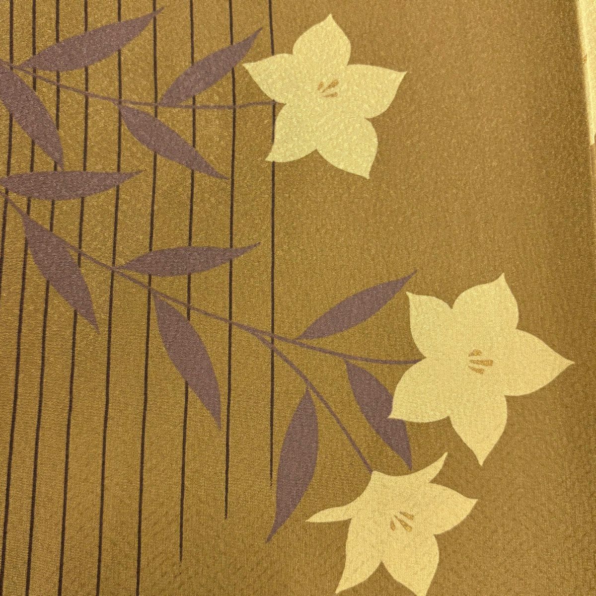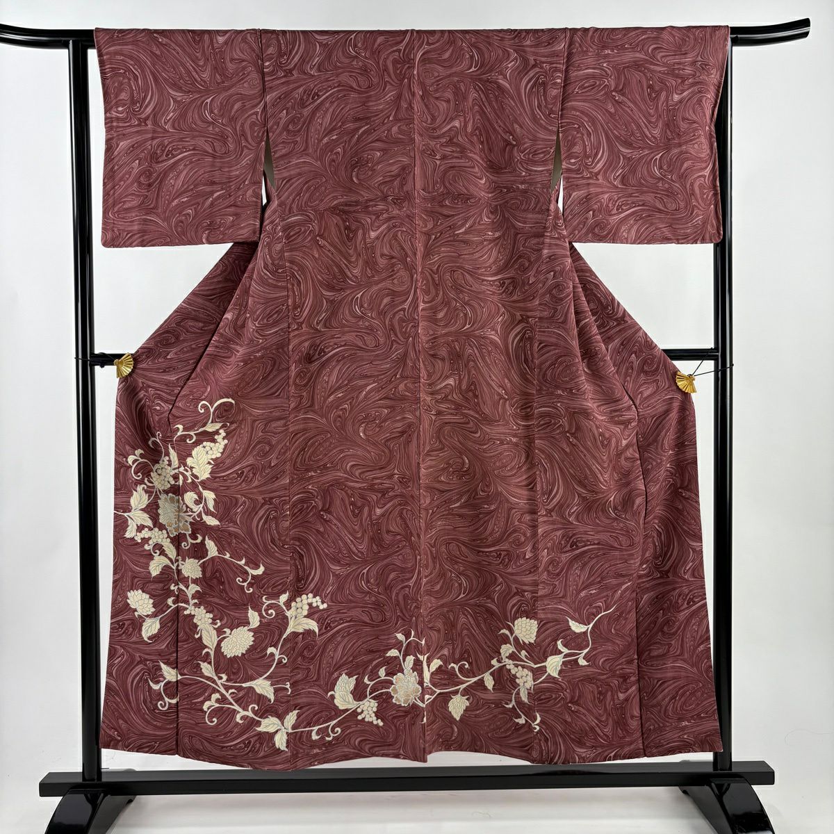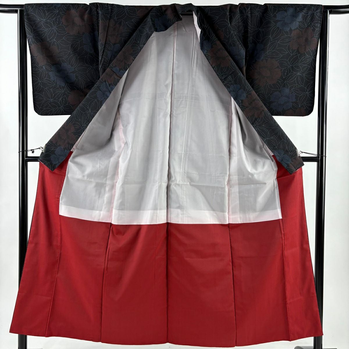 【美品】 紬 身丈162cm 裄丈63cm S 袷 草花 焦茶色 正絹 秀品