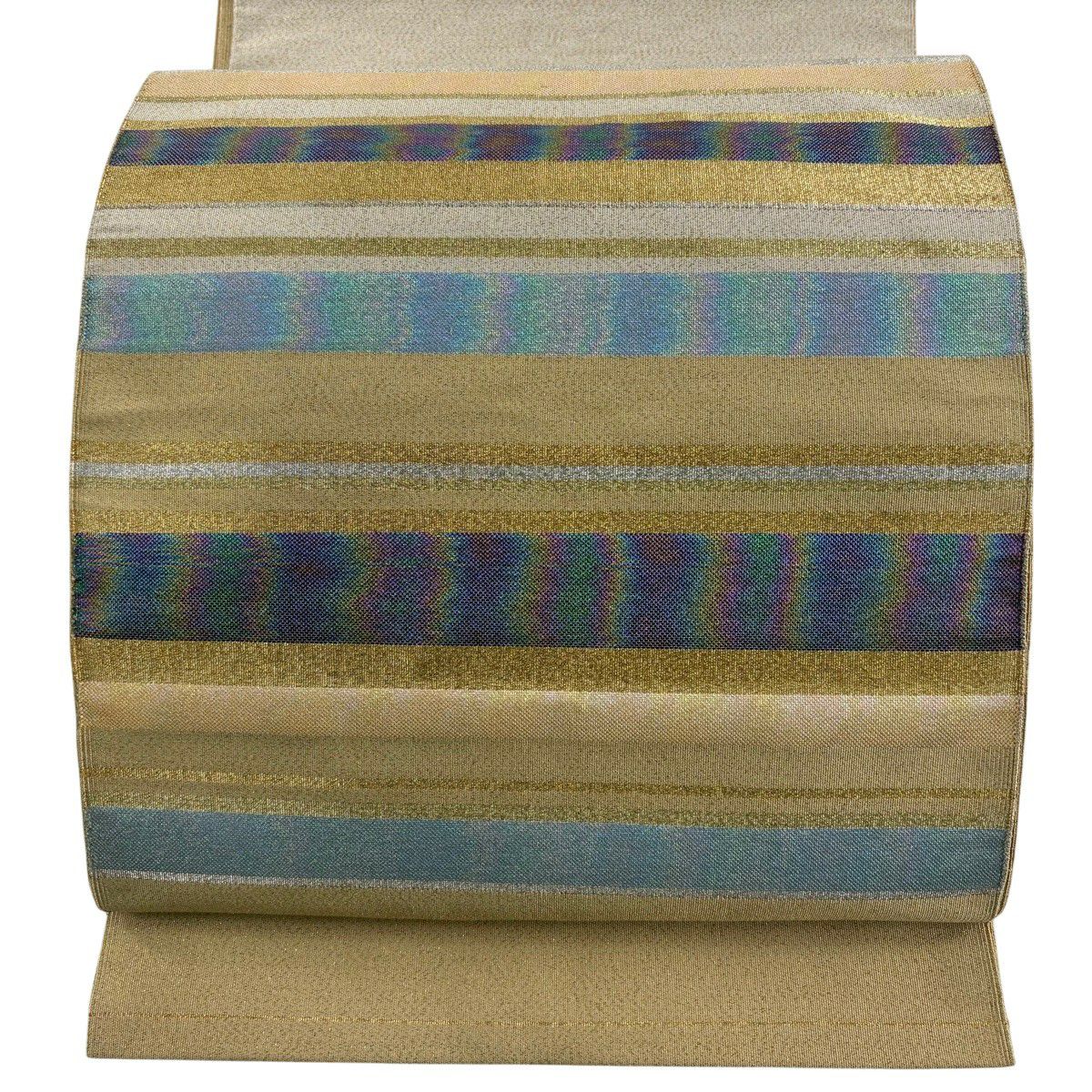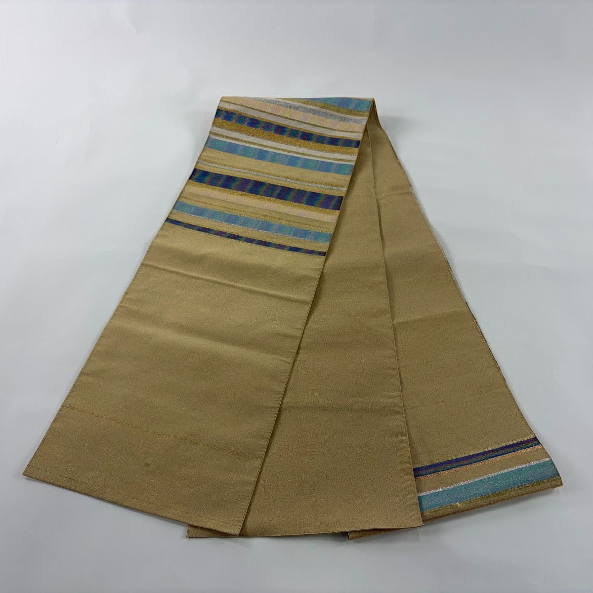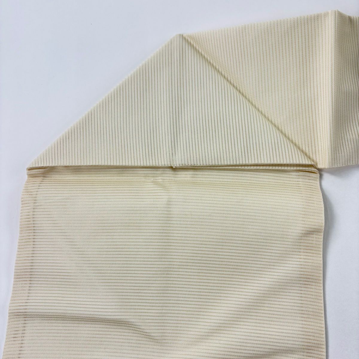 名古屋帯 秀品 八寸名古屋帯 夏帯 絽 幾何学模様 縞 銀糸 ベージュ 正絹
