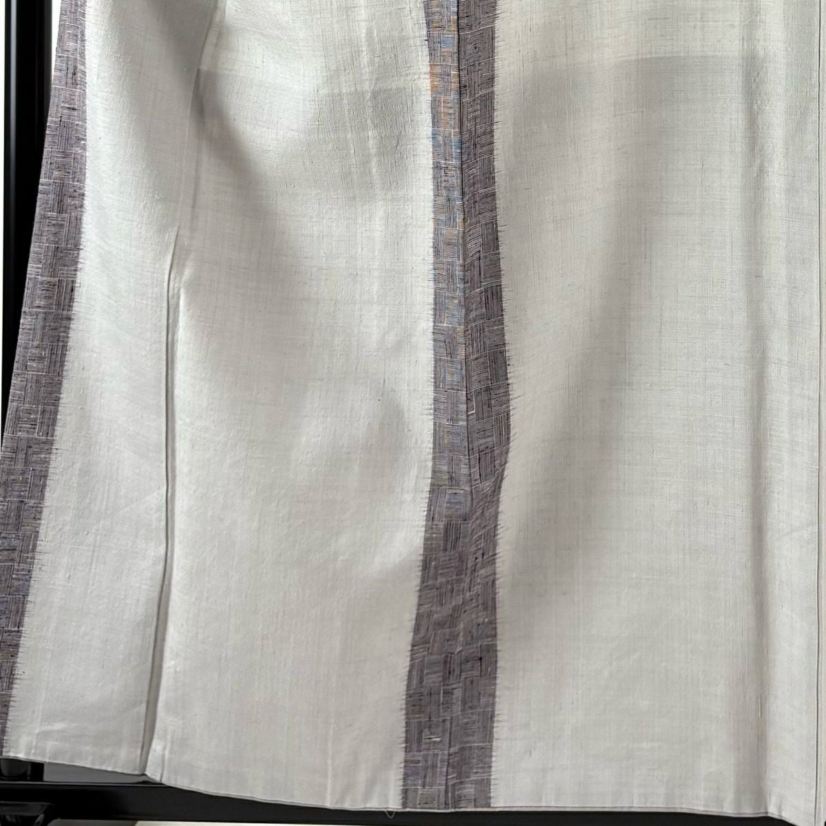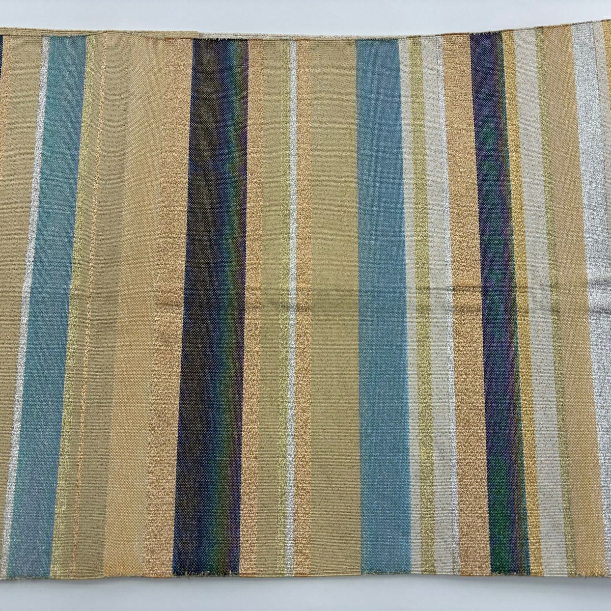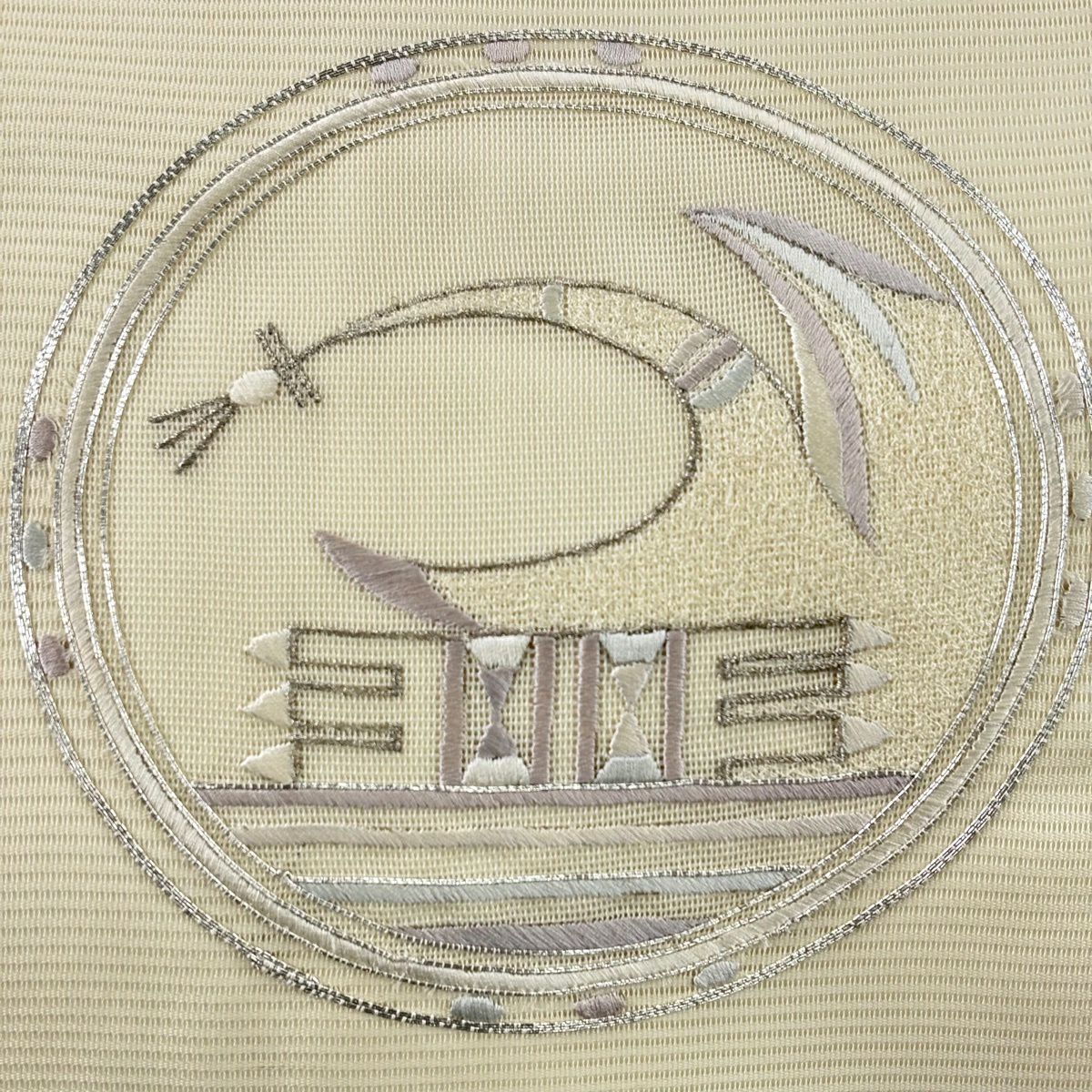 名古屋帯 秀品 八寸名古屋帯 夏帯 絽 幾何学模様 縞 銀糸 ベージュ 正絹