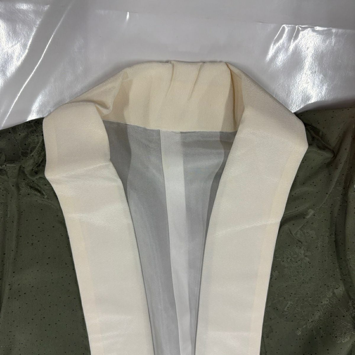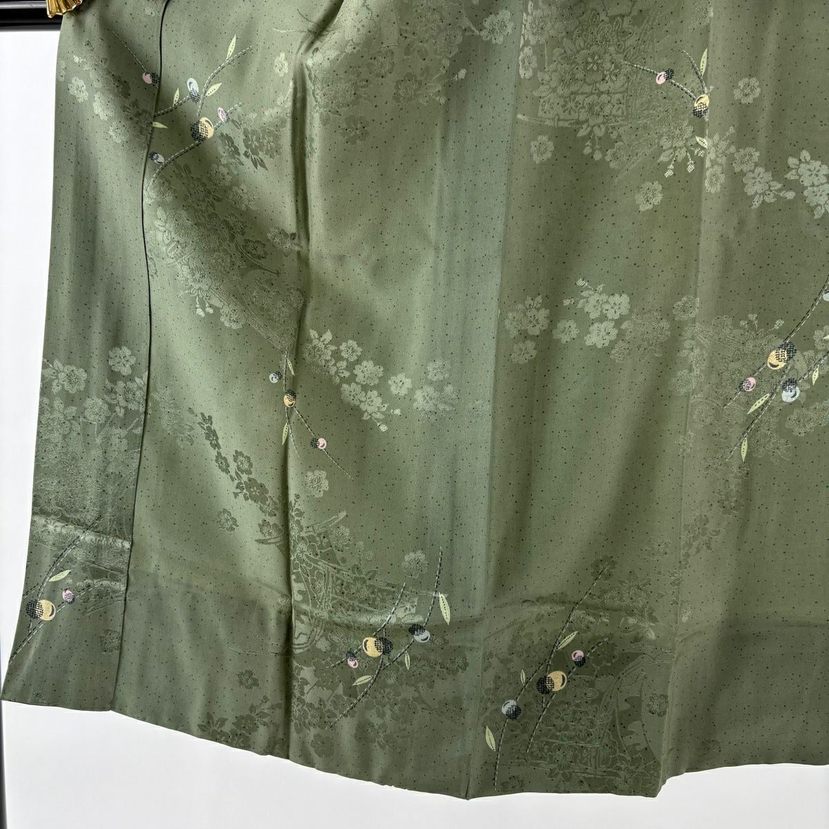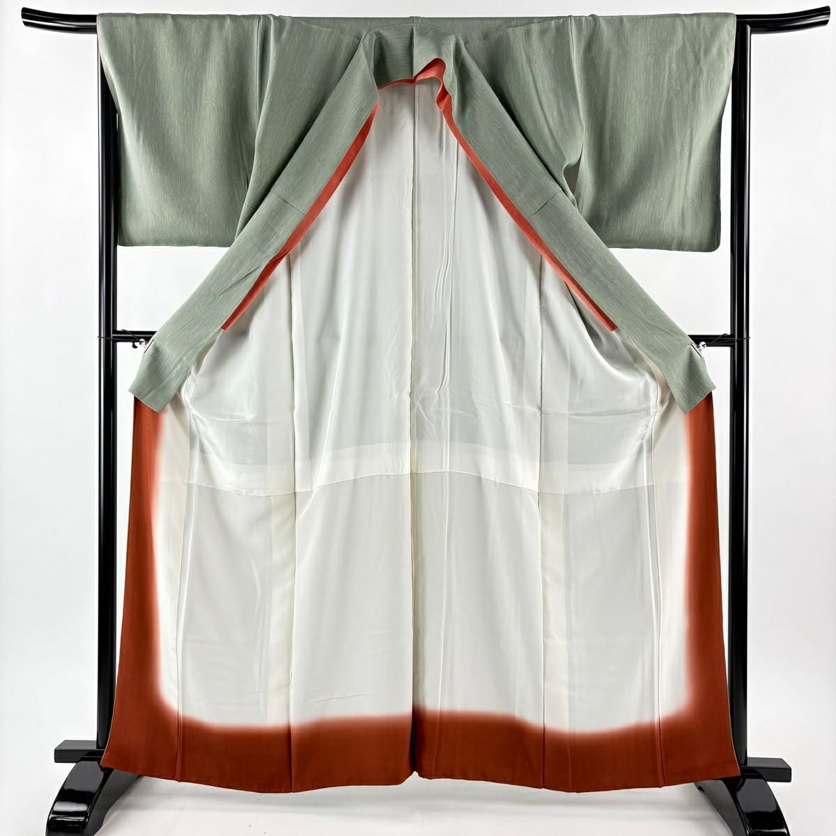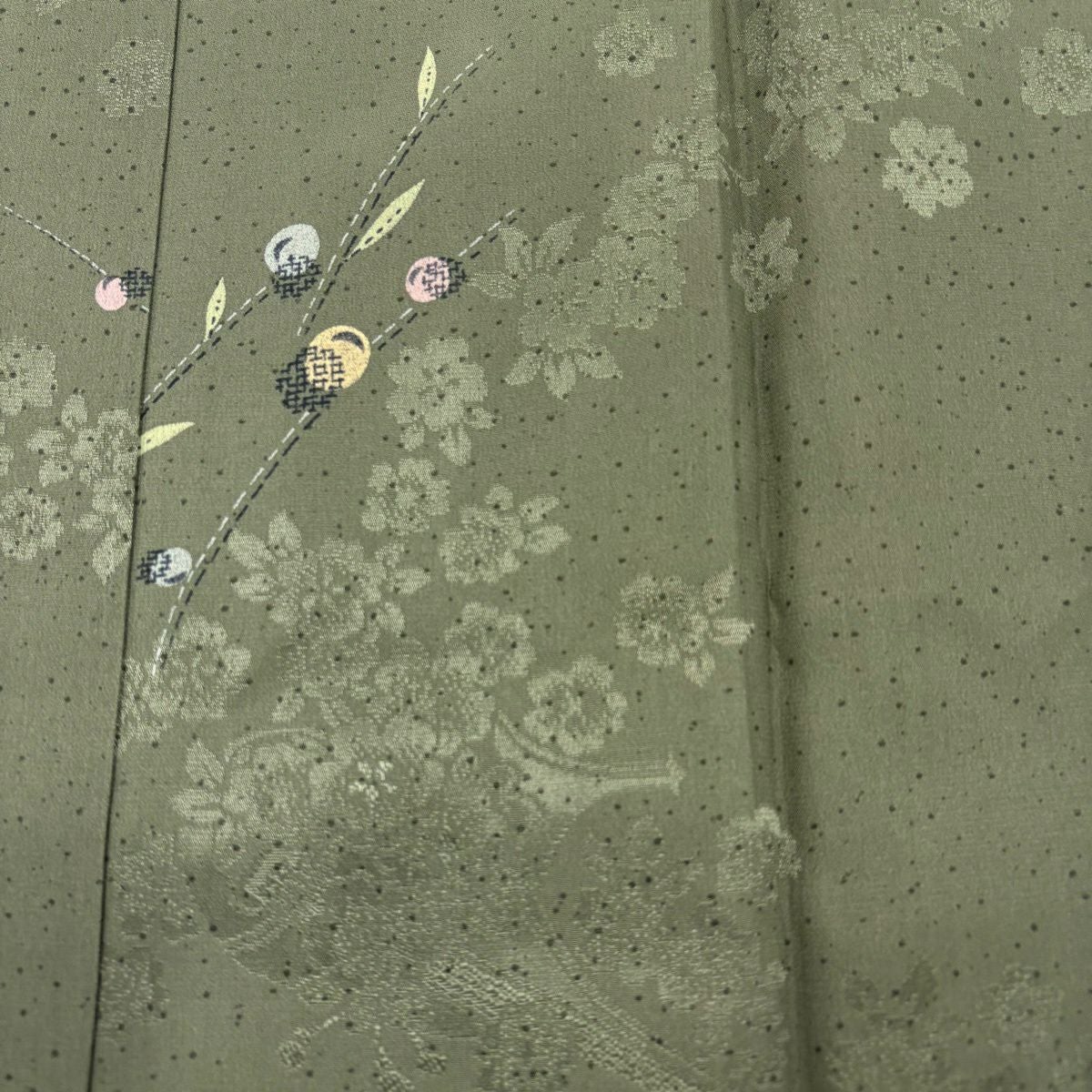 付下げ 身丈161.5cm 裄丈65.5cm M 袷 葉 色紙 灰緑 正絹 秀品