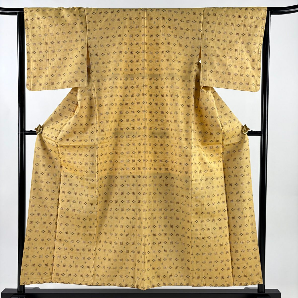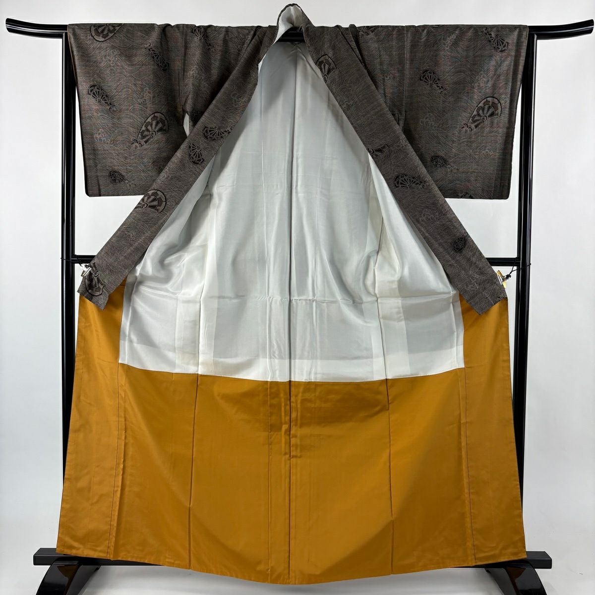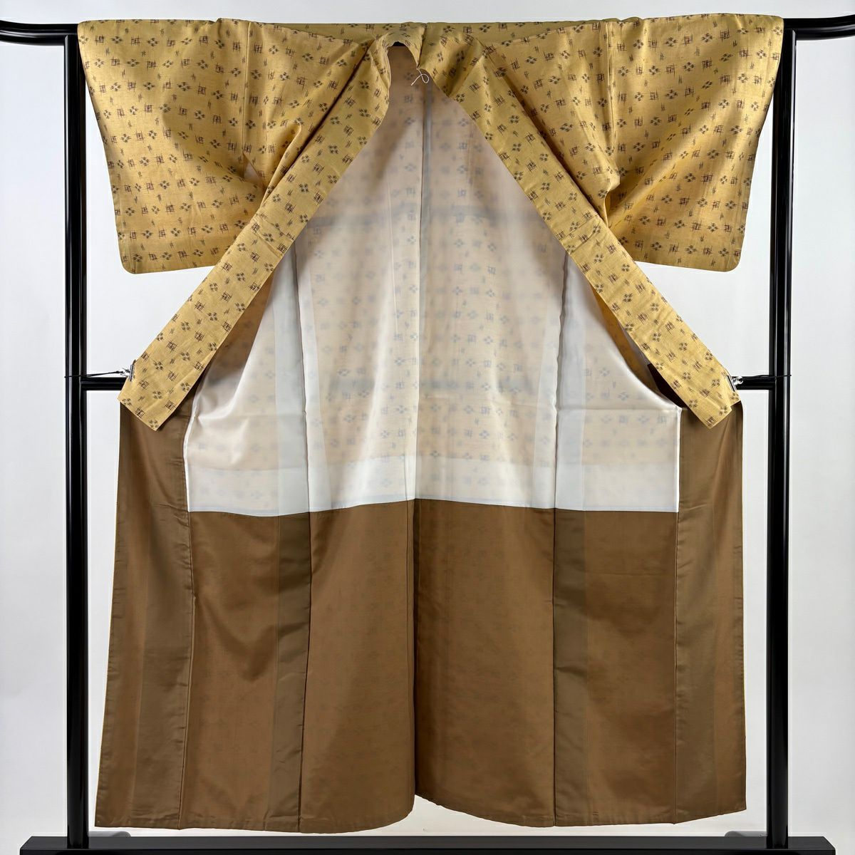 紬 身丈158.5cm 裄丈64cm M 袷 華文 亀甲 焦茶色 正絹 秀品