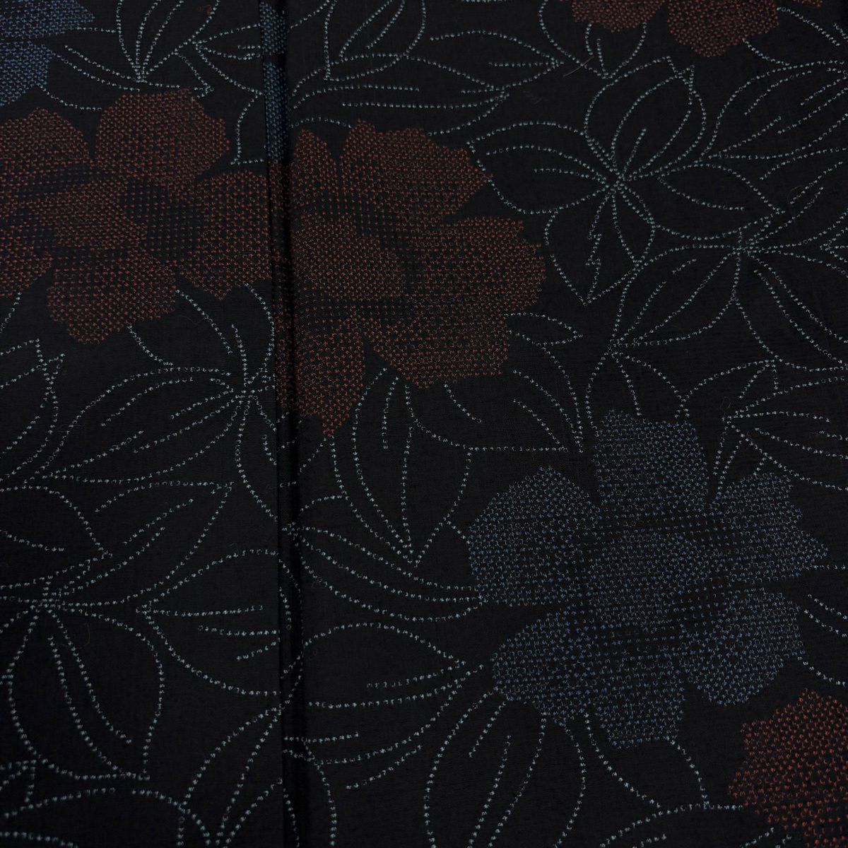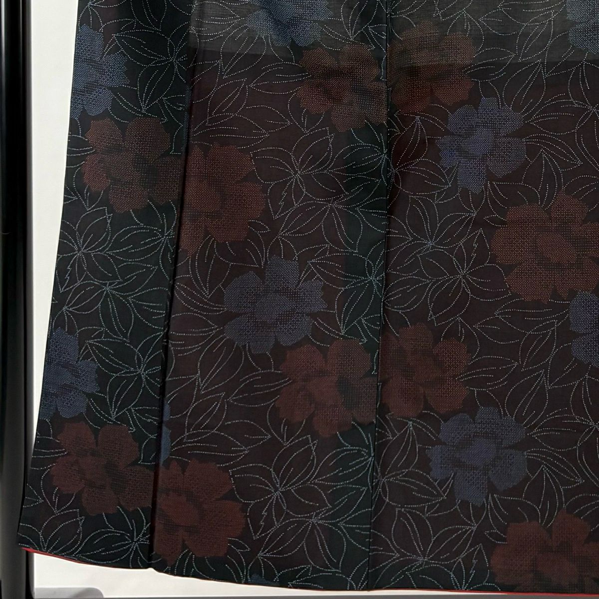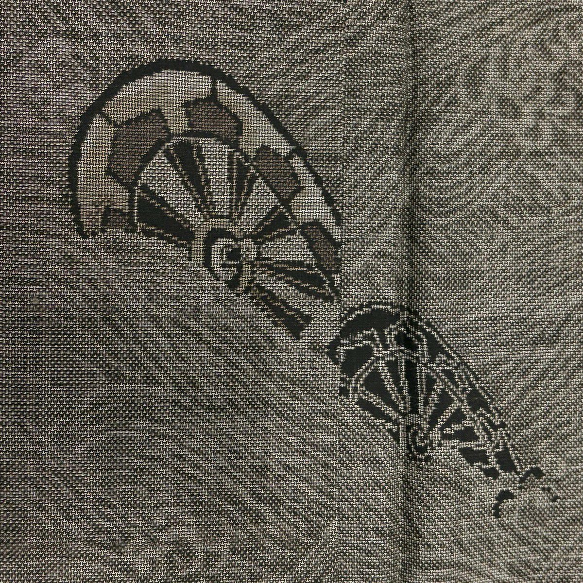 紬 身丈157cm 裄丈63.5cm S 袷 草花 人物 焦茶色 正絹 秀品