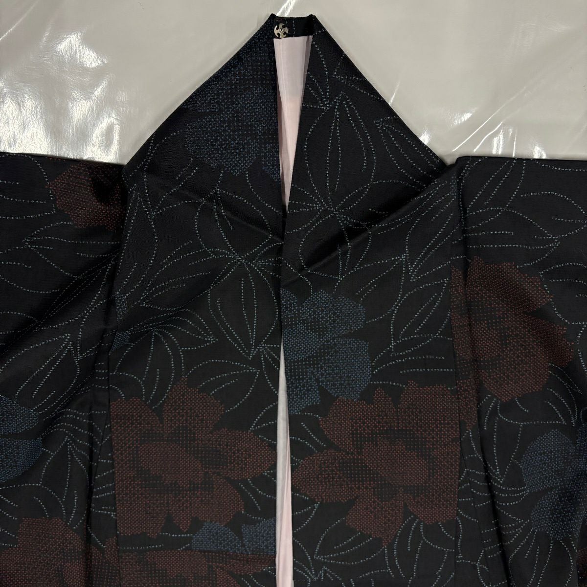 道中着 身丈99cm 裄丈66cm M 和装コート 花唐草 赤茶 正絹 秀品