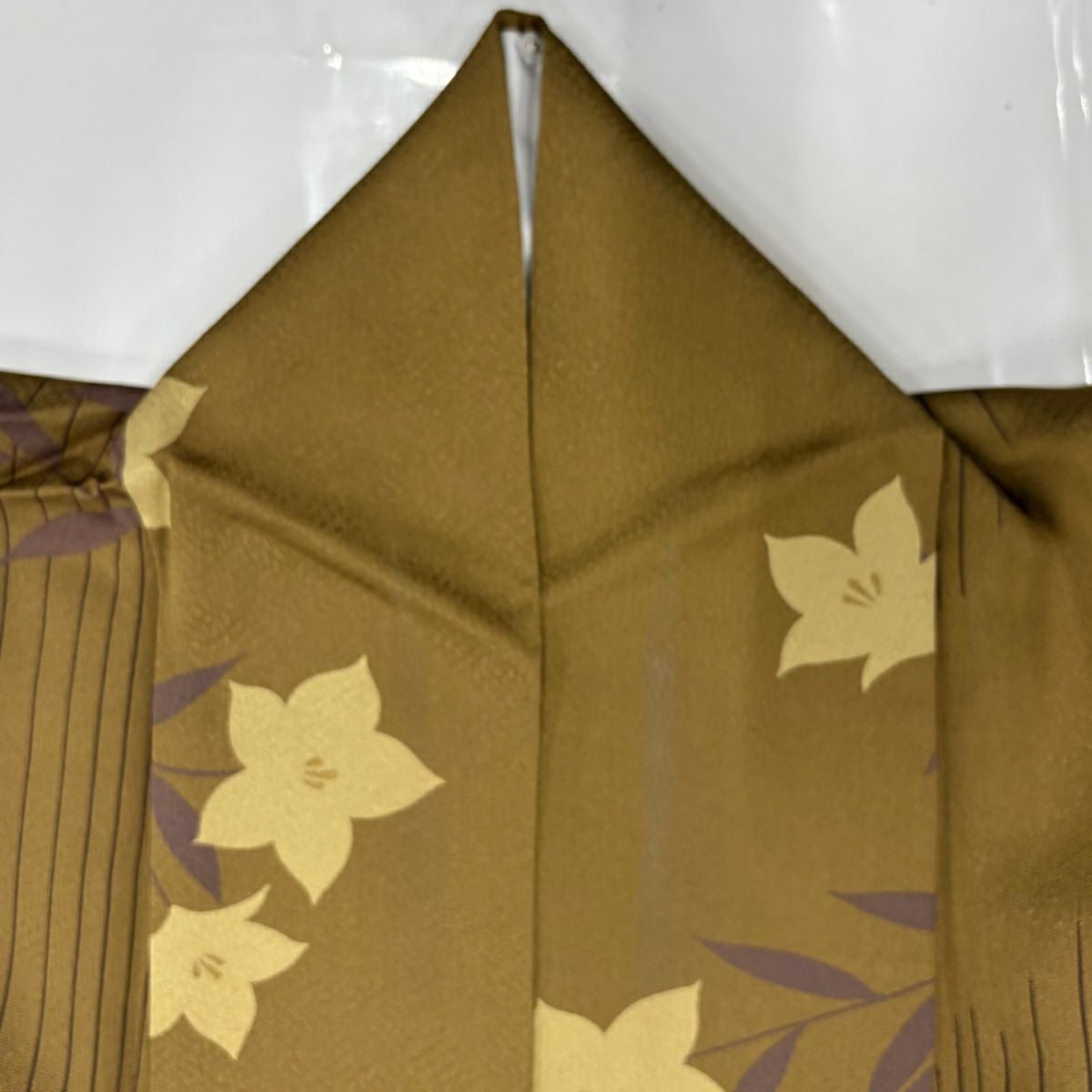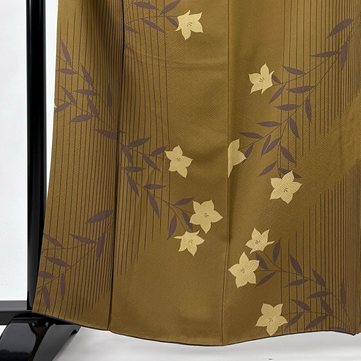 付下げ 身丈161cm 裄丈63cm S 袷 松 実 金彩 茶色 正絹 秀品