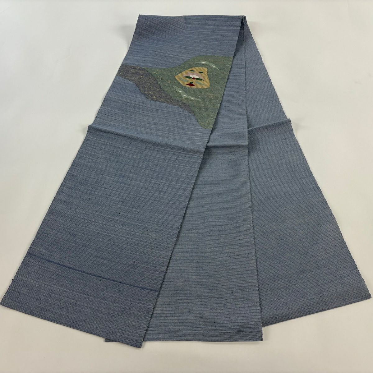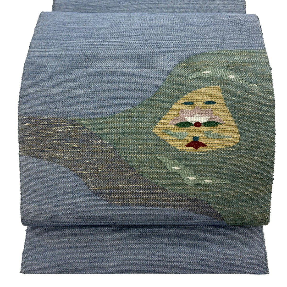【美品】 袋帯 秀品 映調四季文 波 山並み 箔 金銀糸 銀色 六通 正絹