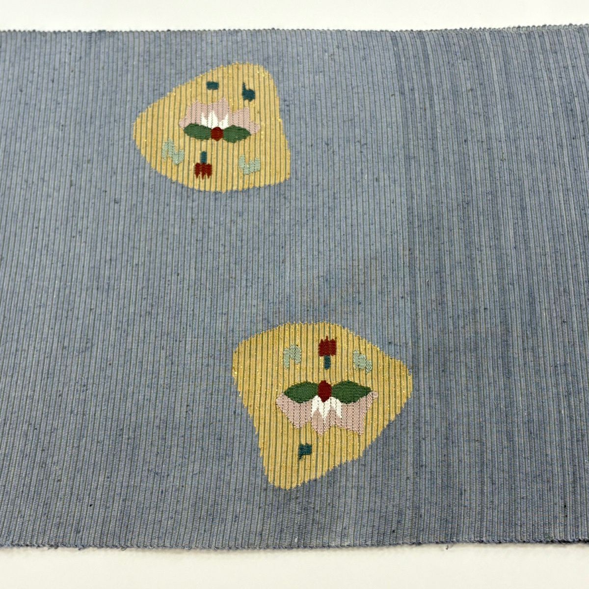 【美品】 開き名古屋帯 秀品 落款あり あらいそ 花唐草 鳥 薄茶色 正絹