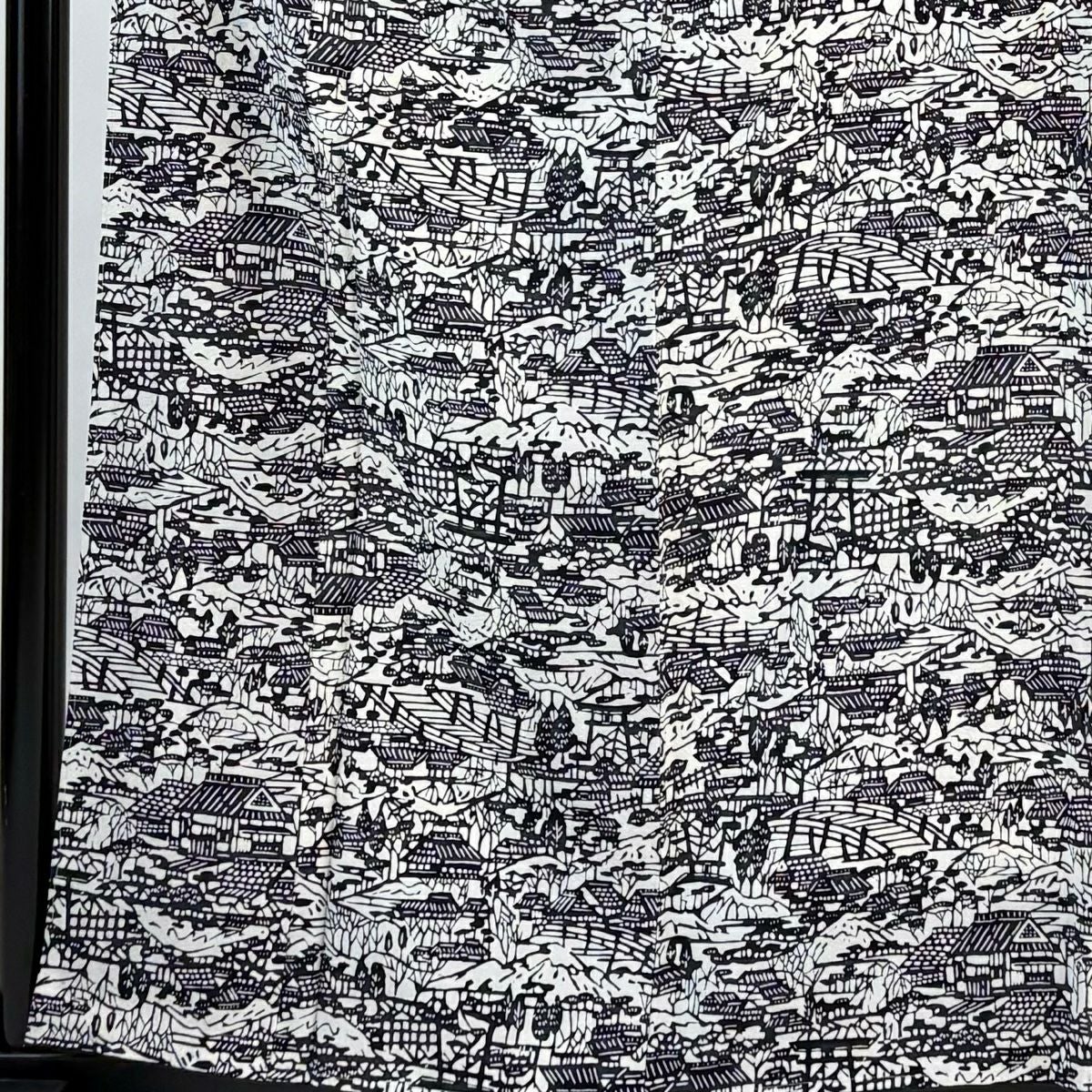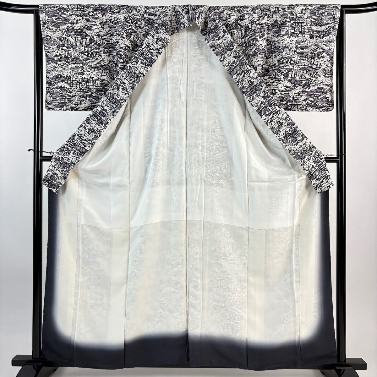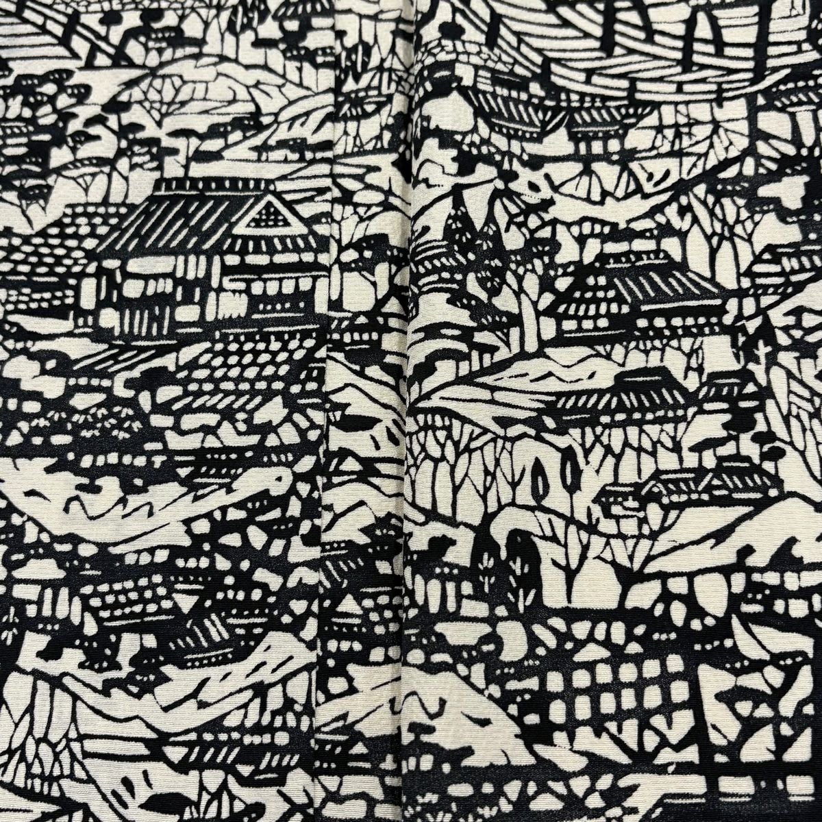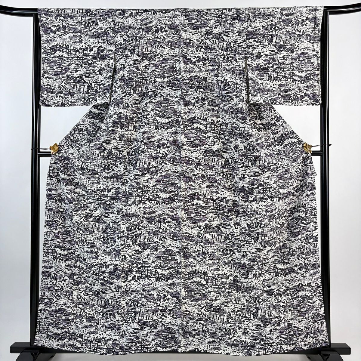 小紋 身丈159.5cm 裄丈65cm M 袷 家屋 橋 クリーム 正絹 秀品