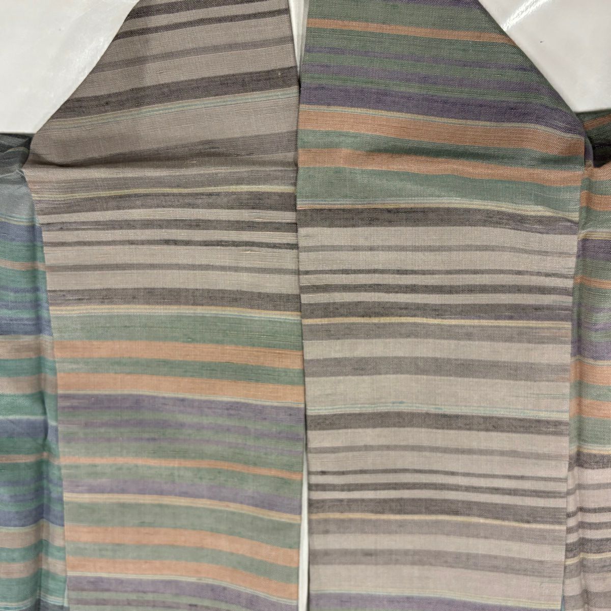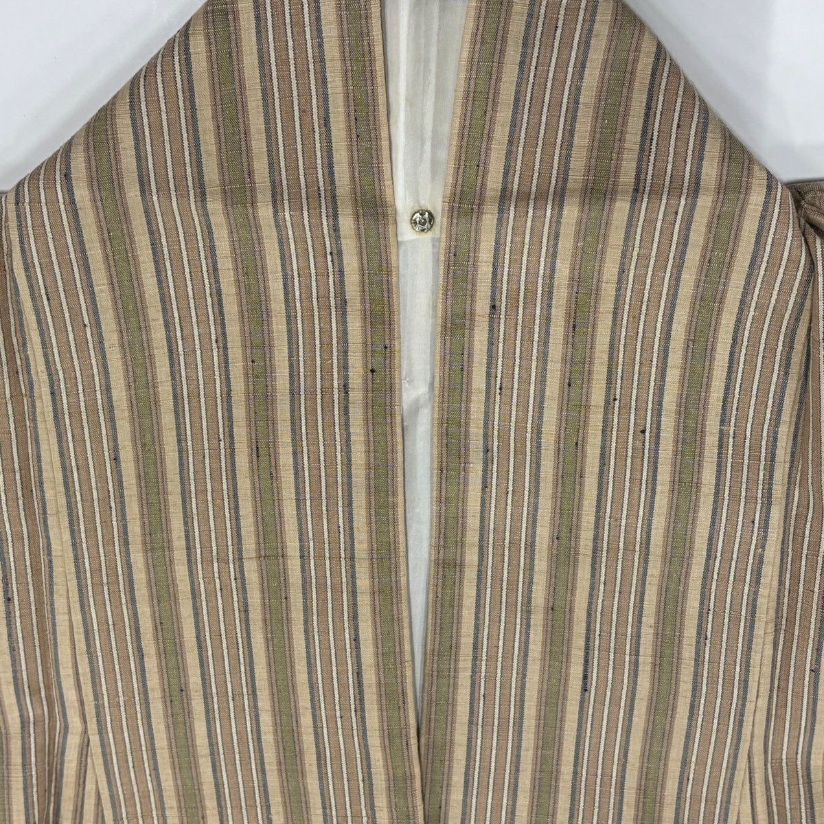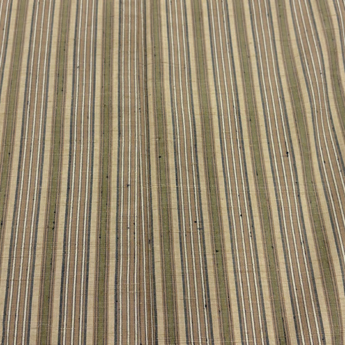 【美品】 紬 身丈160.5cm 裄丈64.5cm M 袷 縞 灰緑 正絹 秀品