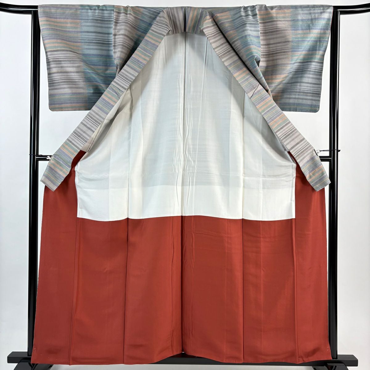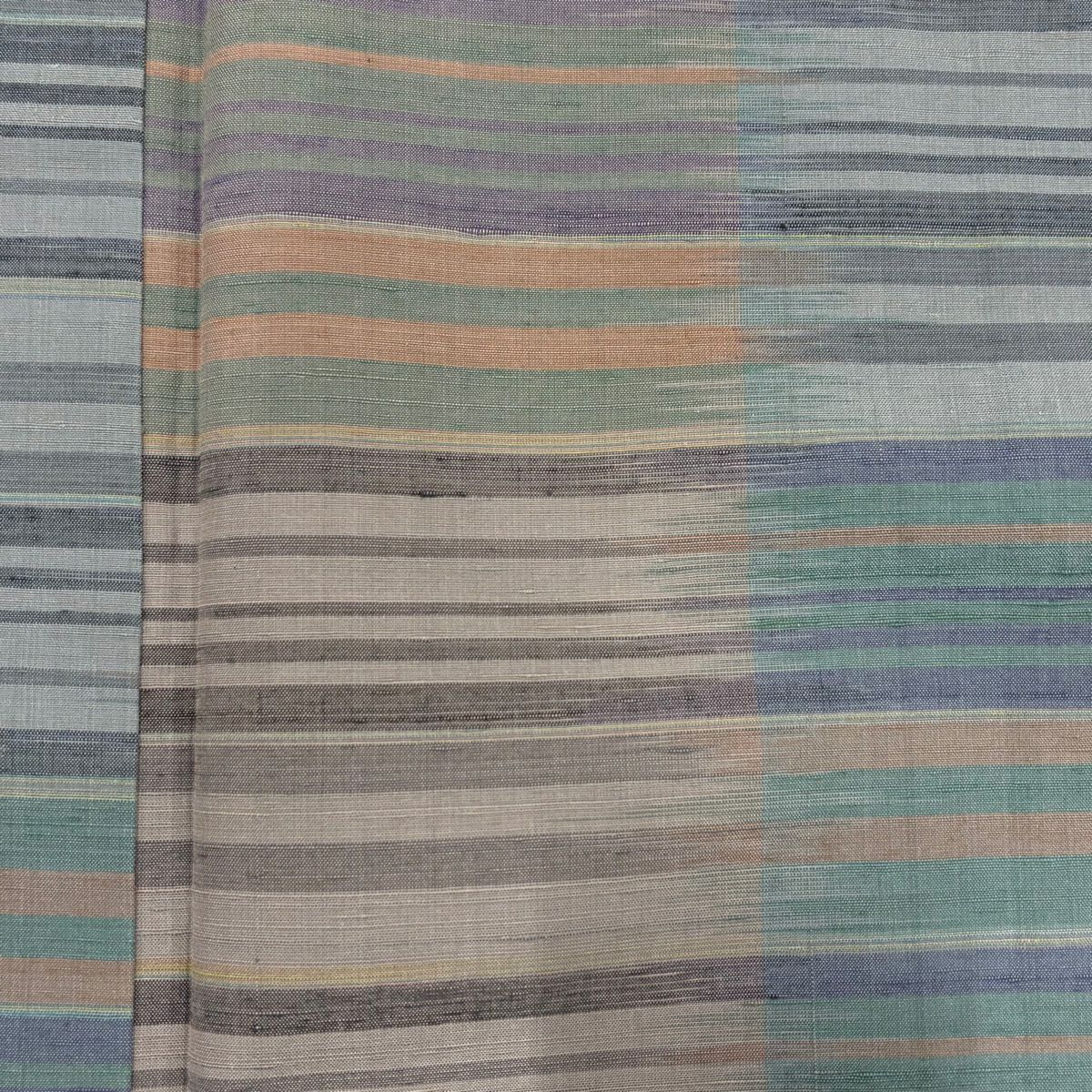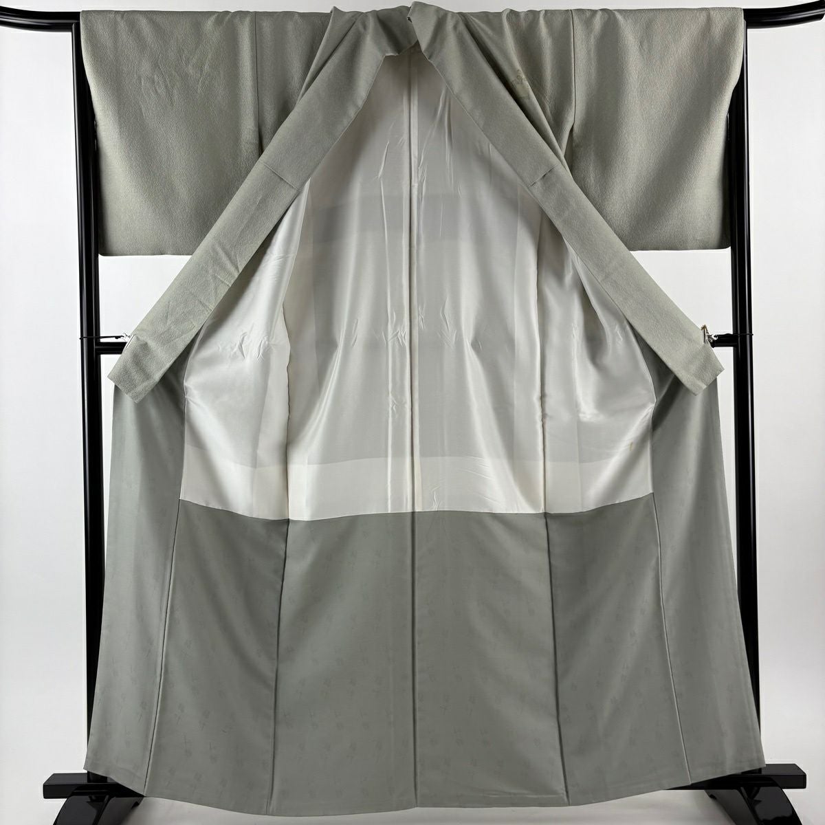 【美品】 紬 身丈160.5cm 裄丈64.5cm M 袷 縞 灰緑 正絹 秀品
