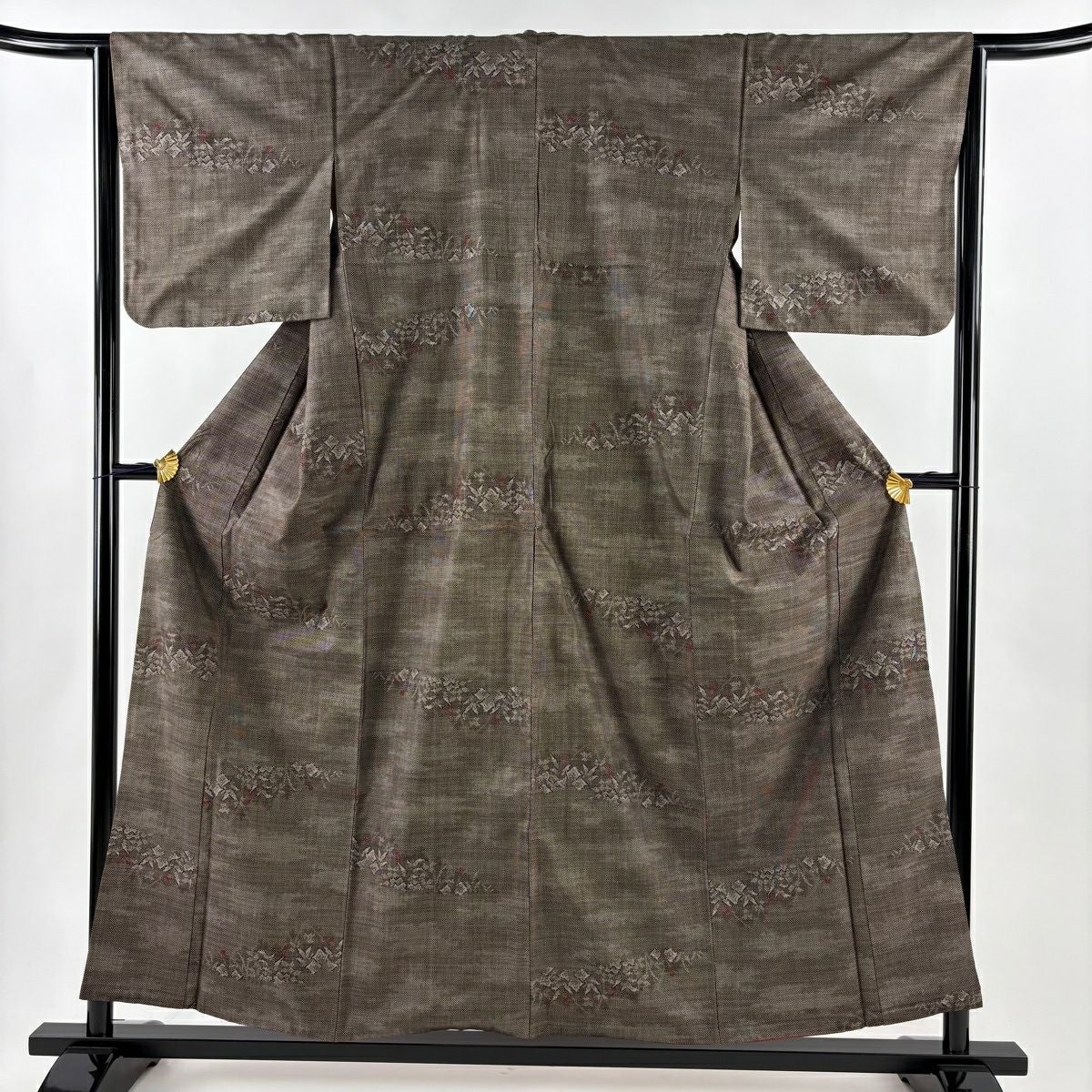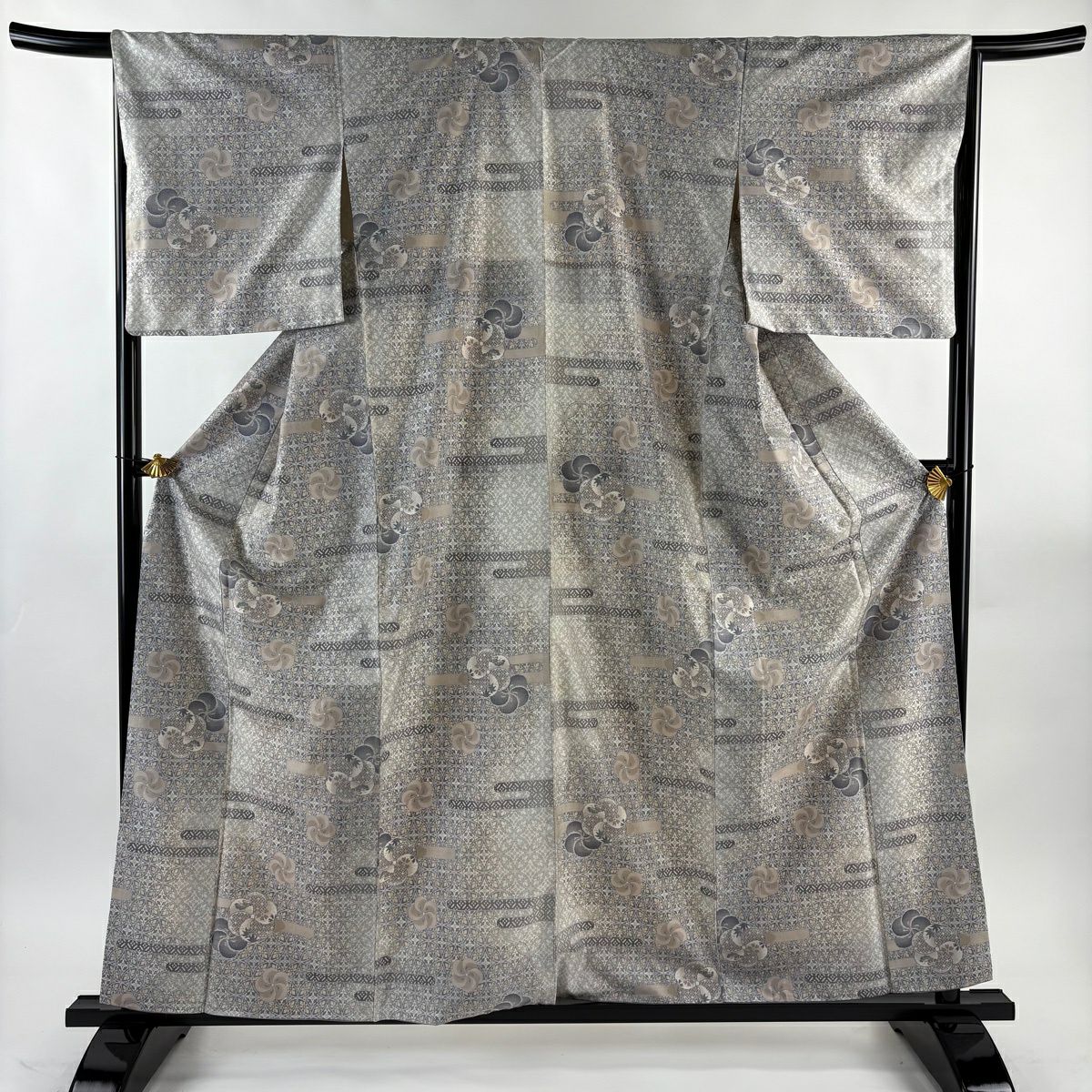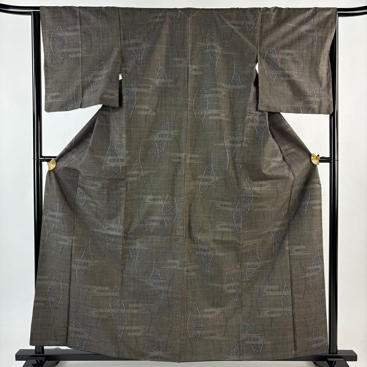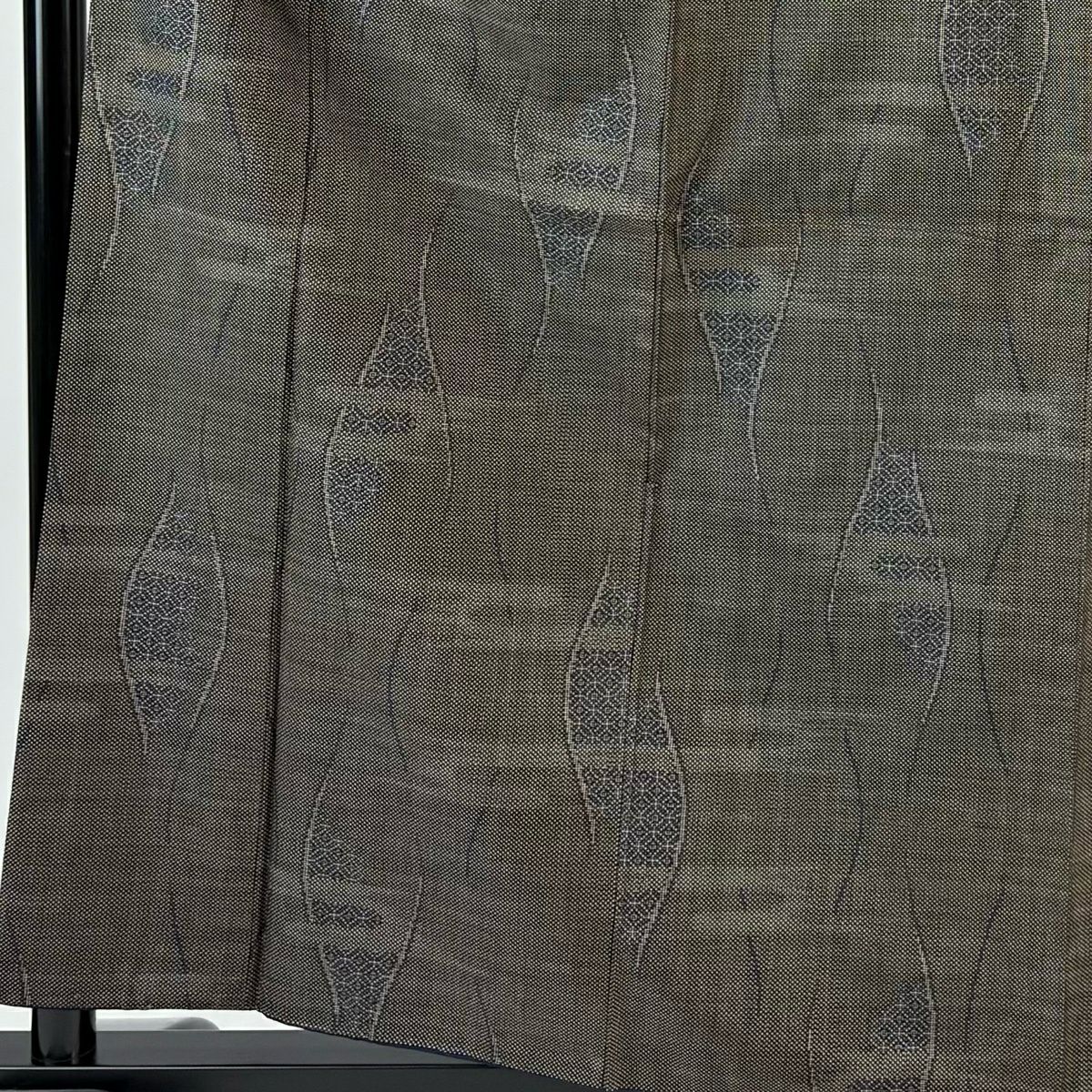 紬 身丈161cm 裄丈64cm M 袷 立涌 幾何学模様 灰茶 正絹 秀品