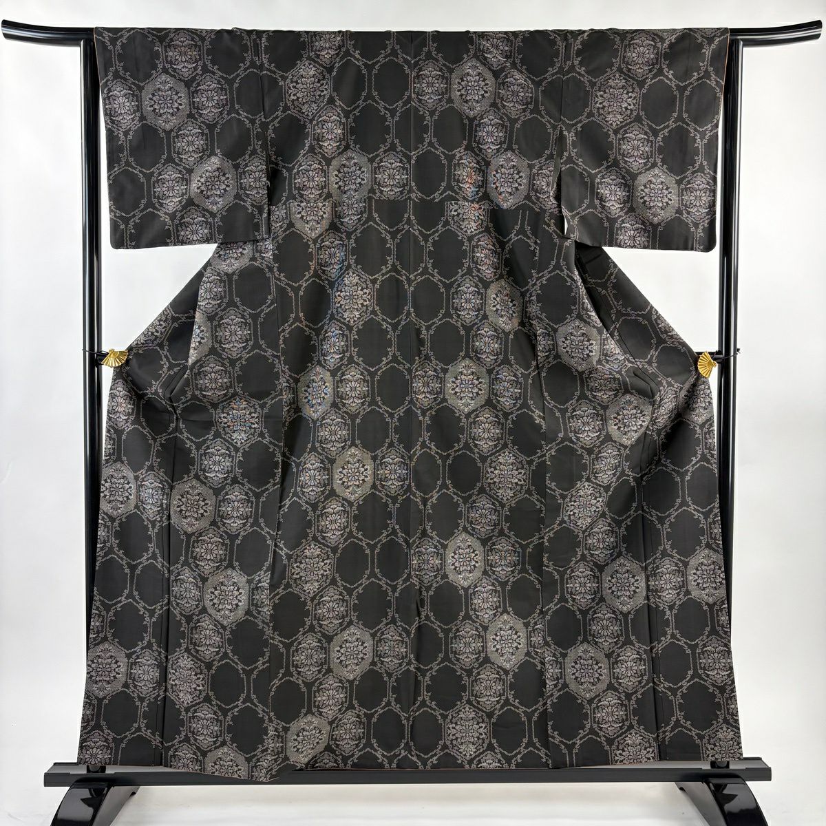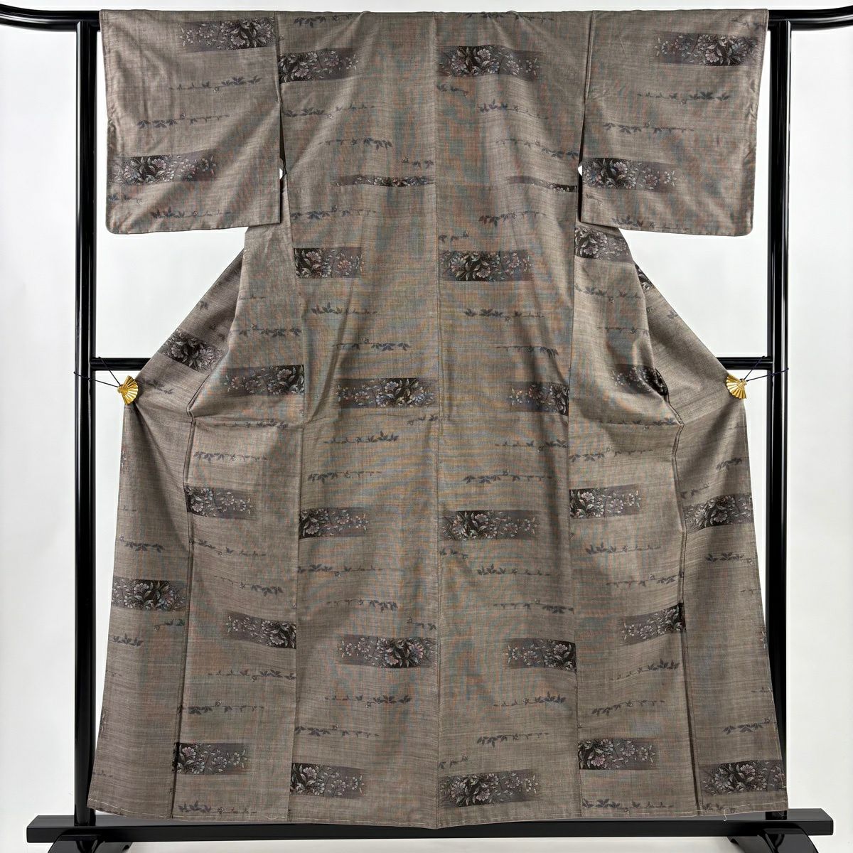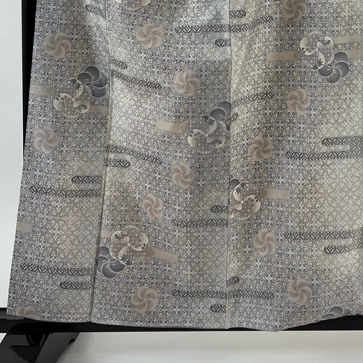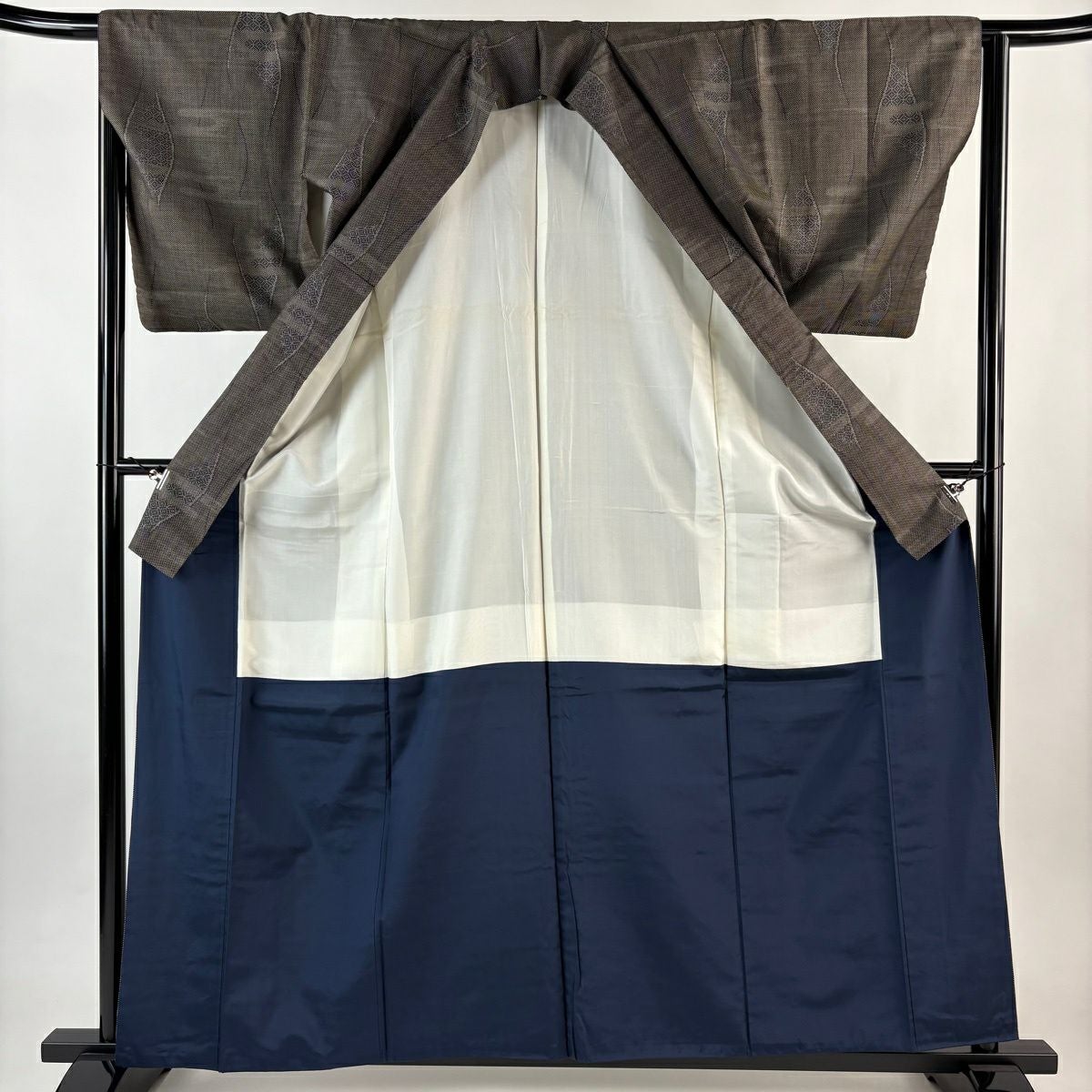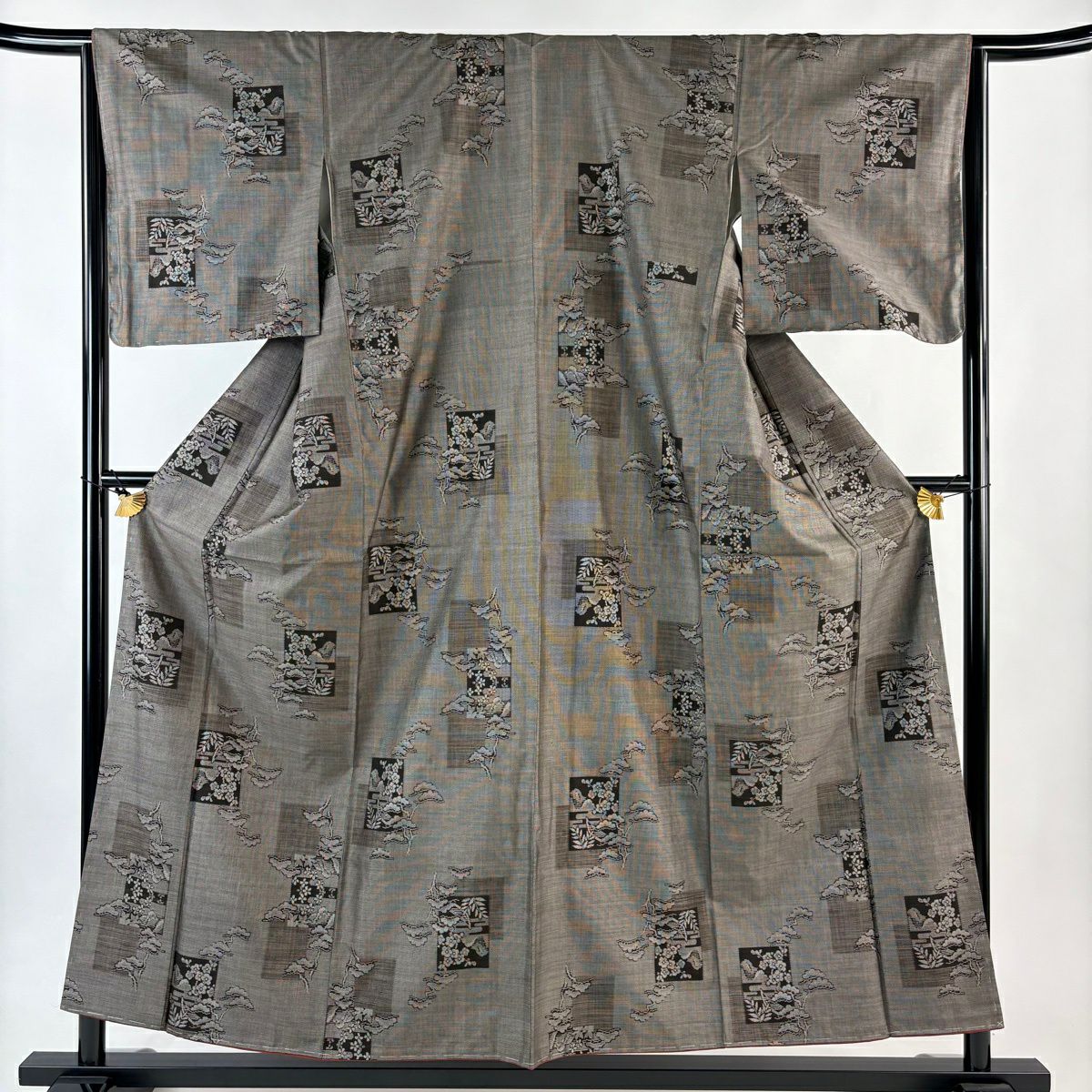 紬 身丈161cm 裄丈64cm M 袷 立涌 幾何学模様 灰茶 正絹 秀品