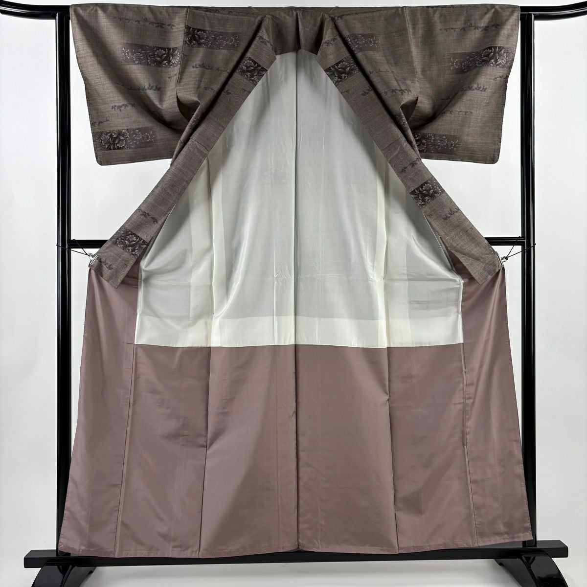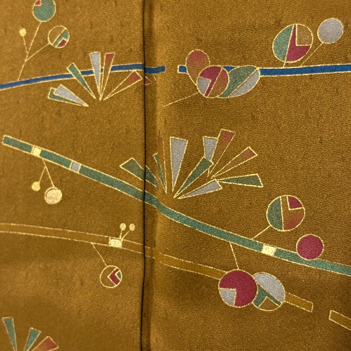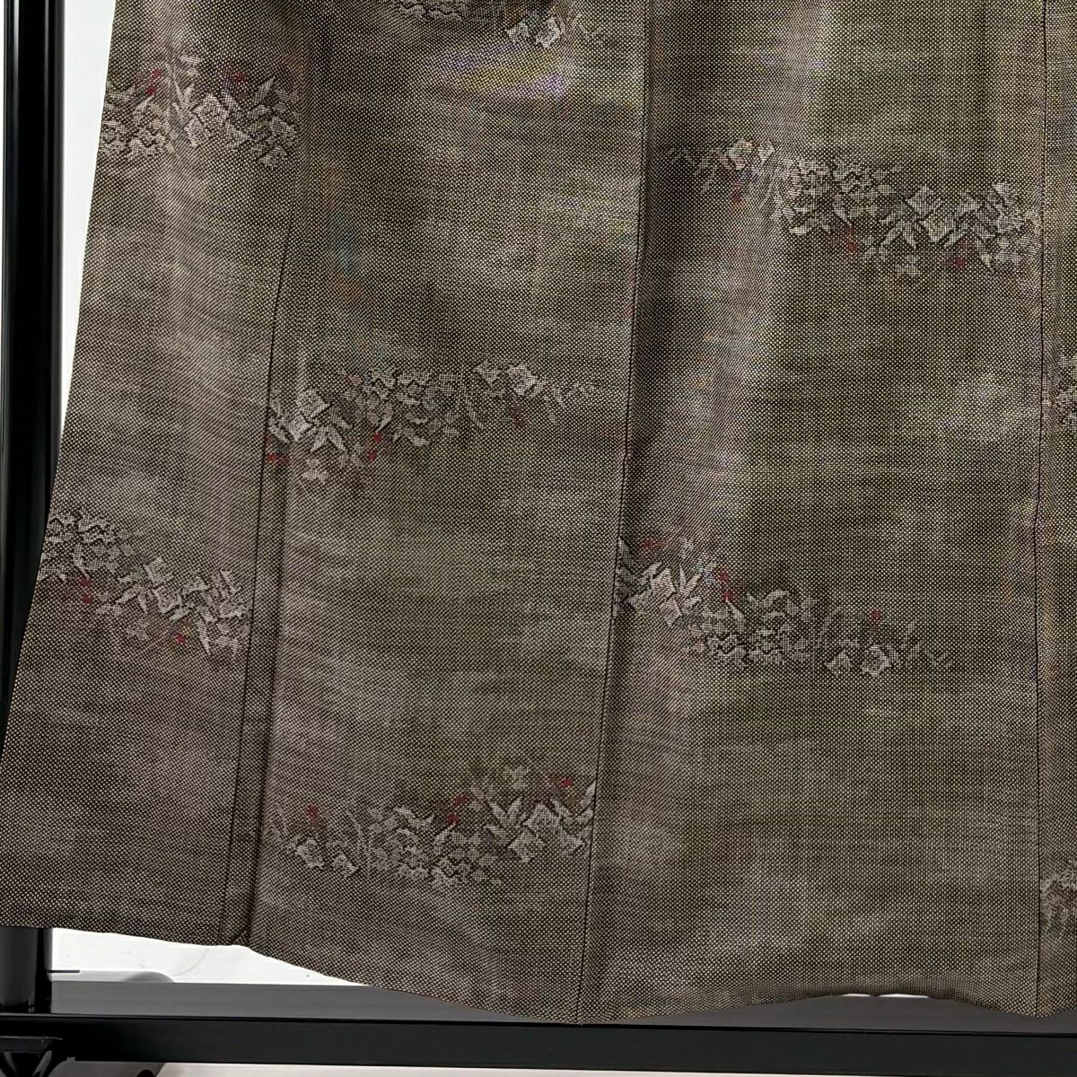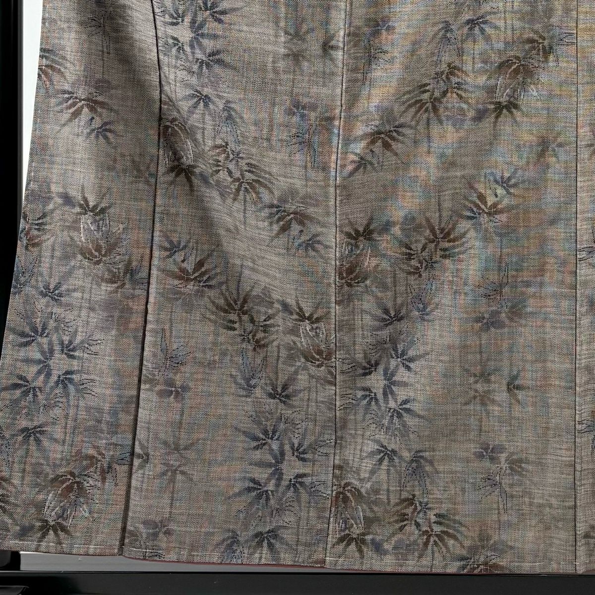 紬 身丈161cm 裄丈64cm M 袷 立涌 幾何学模様 灰茶 正絹 秀品