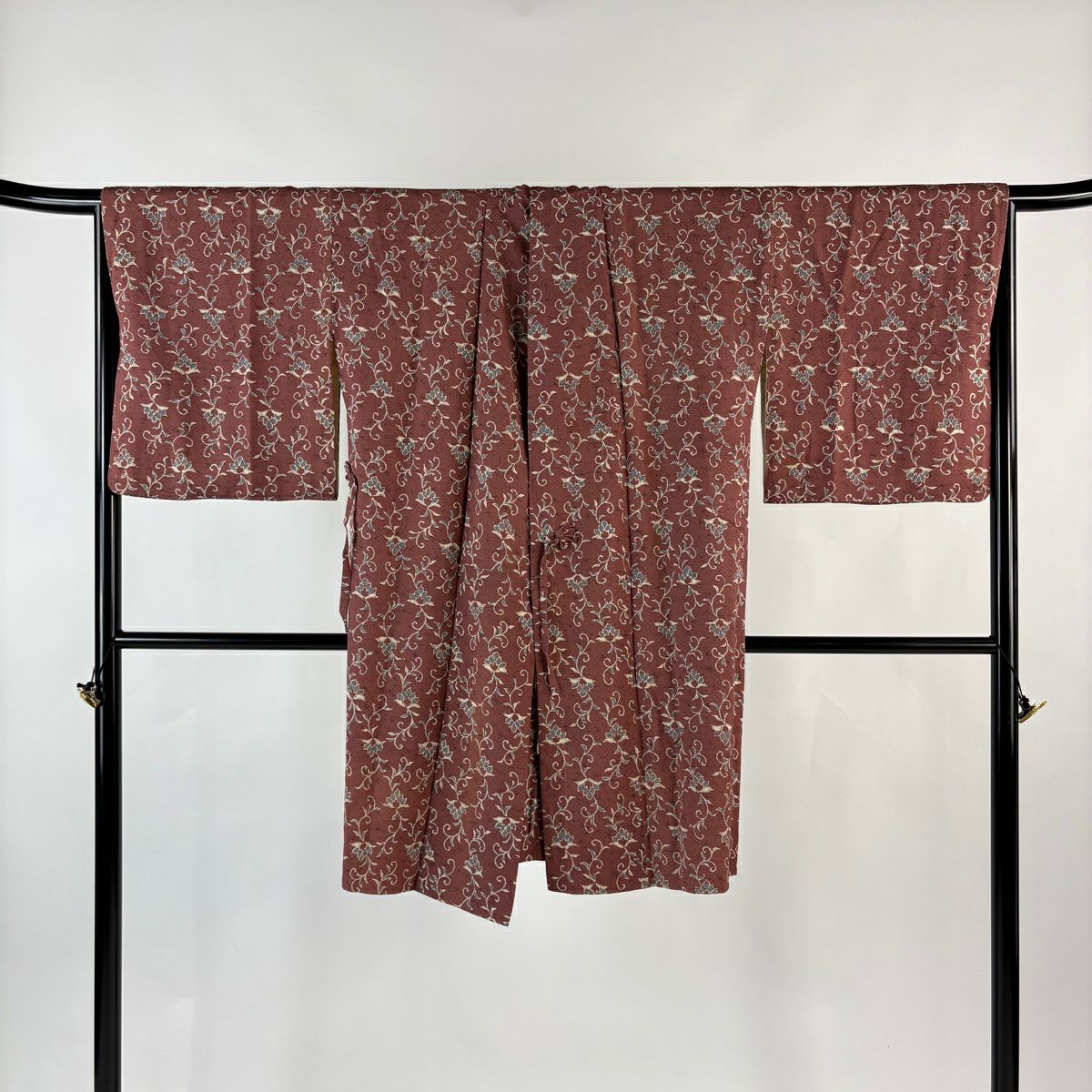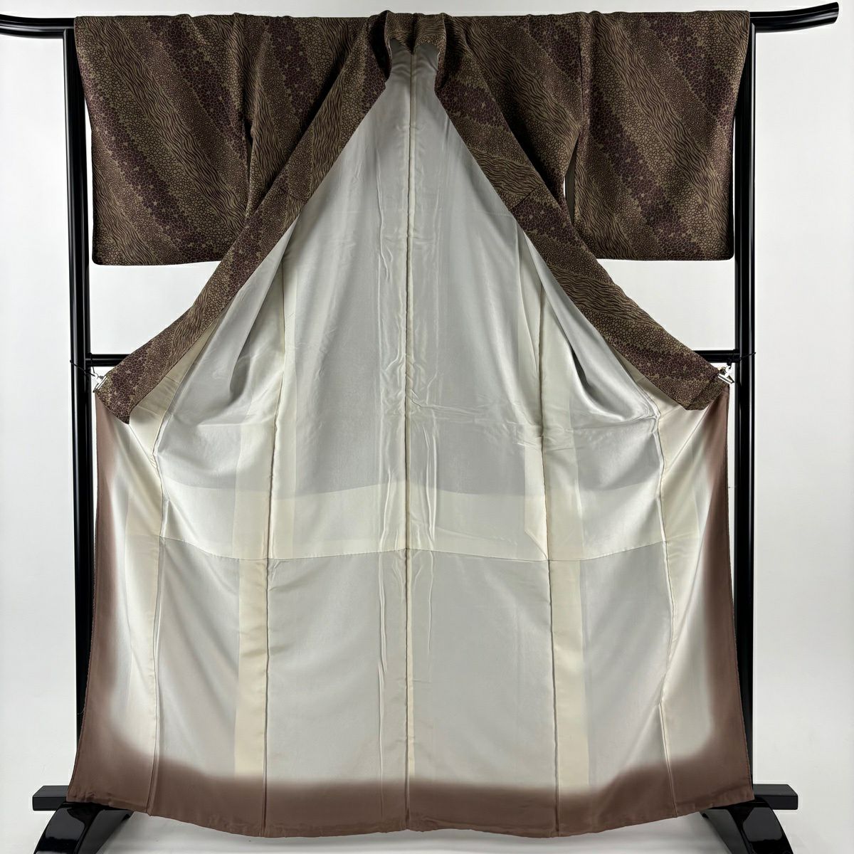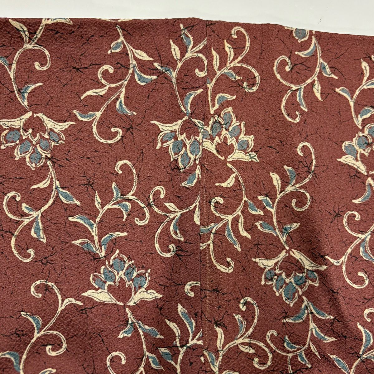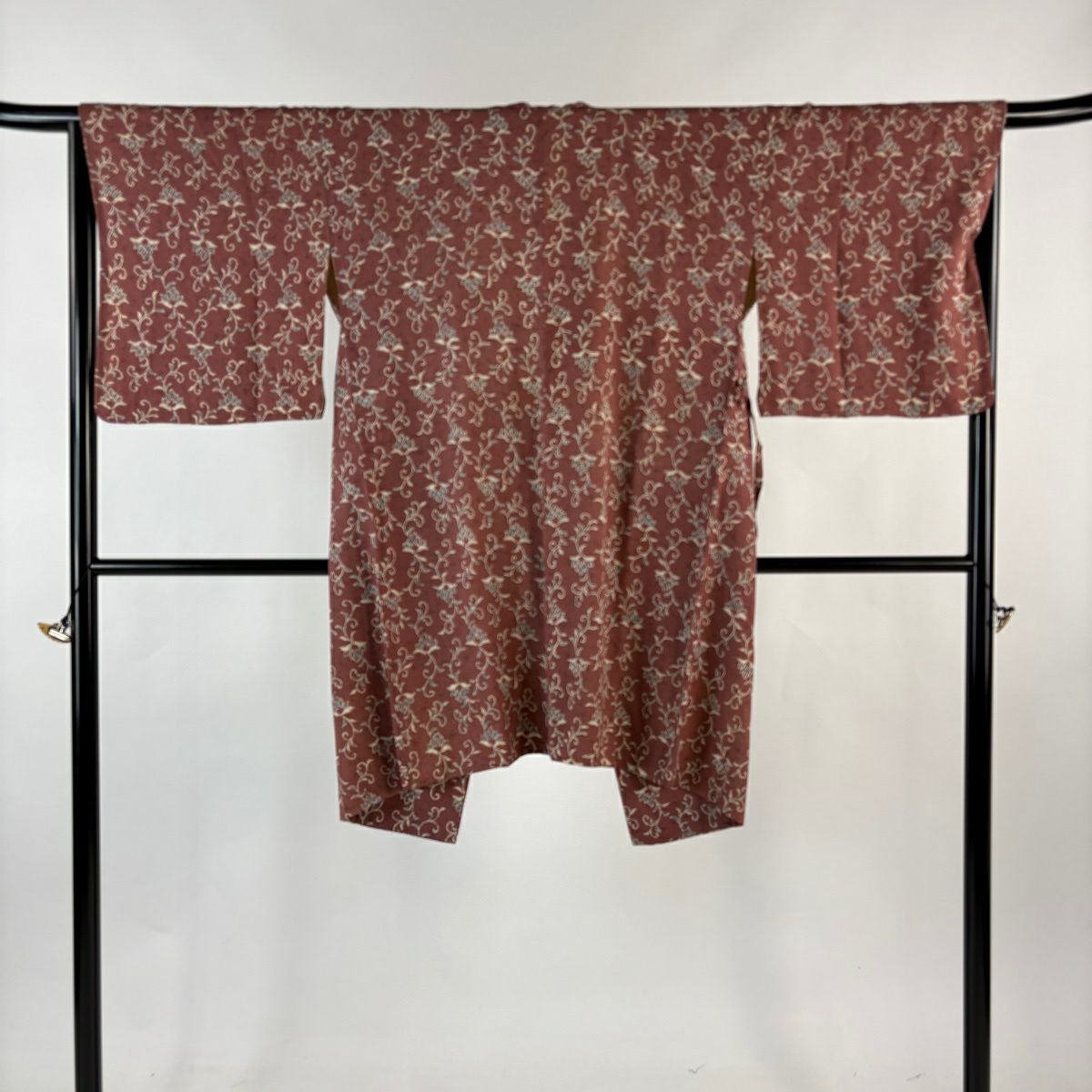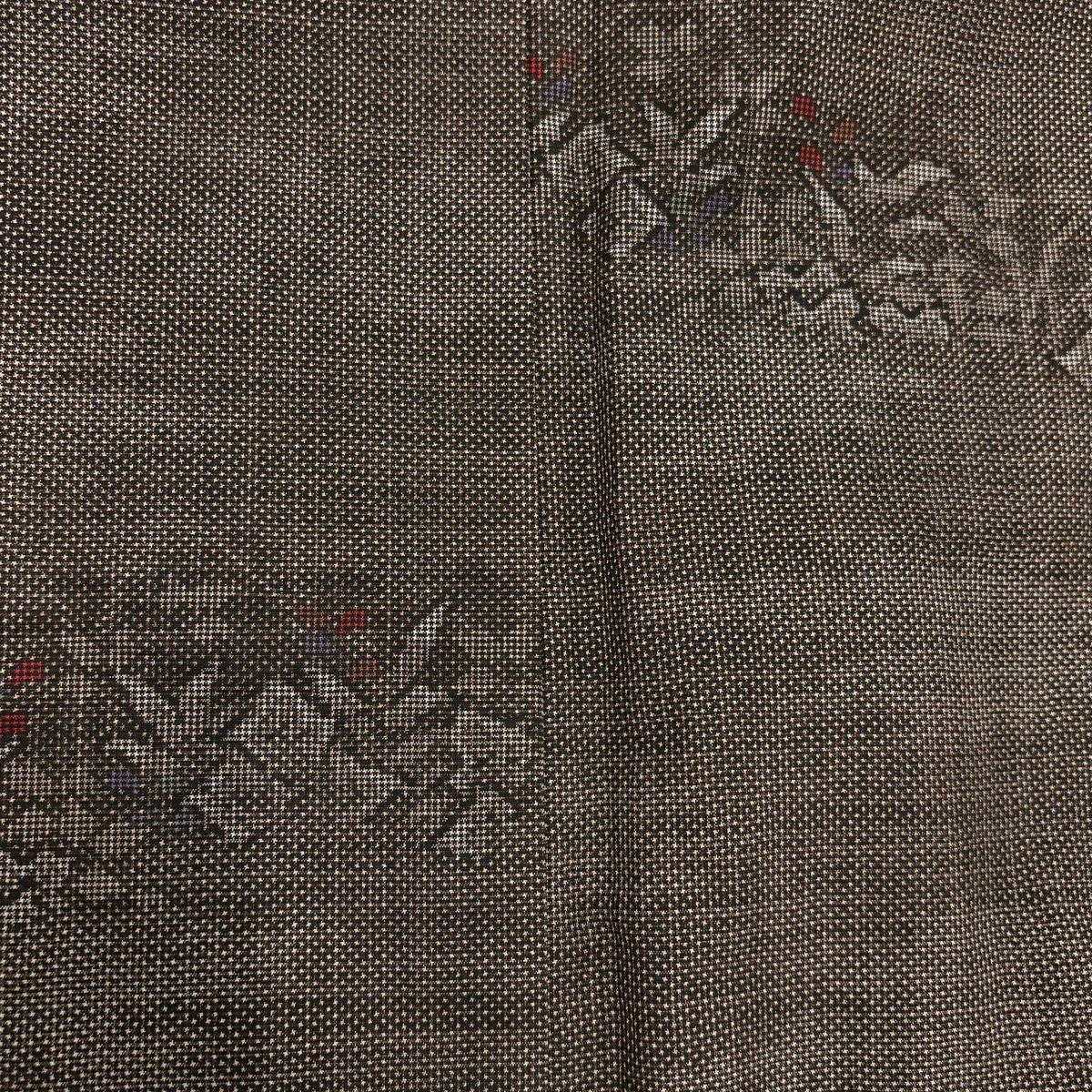 小紋 身丈156.5cm 裄丈64cm M 袷 草花 霞 焦茶色 正絹 秀品