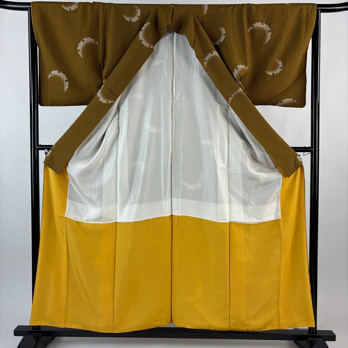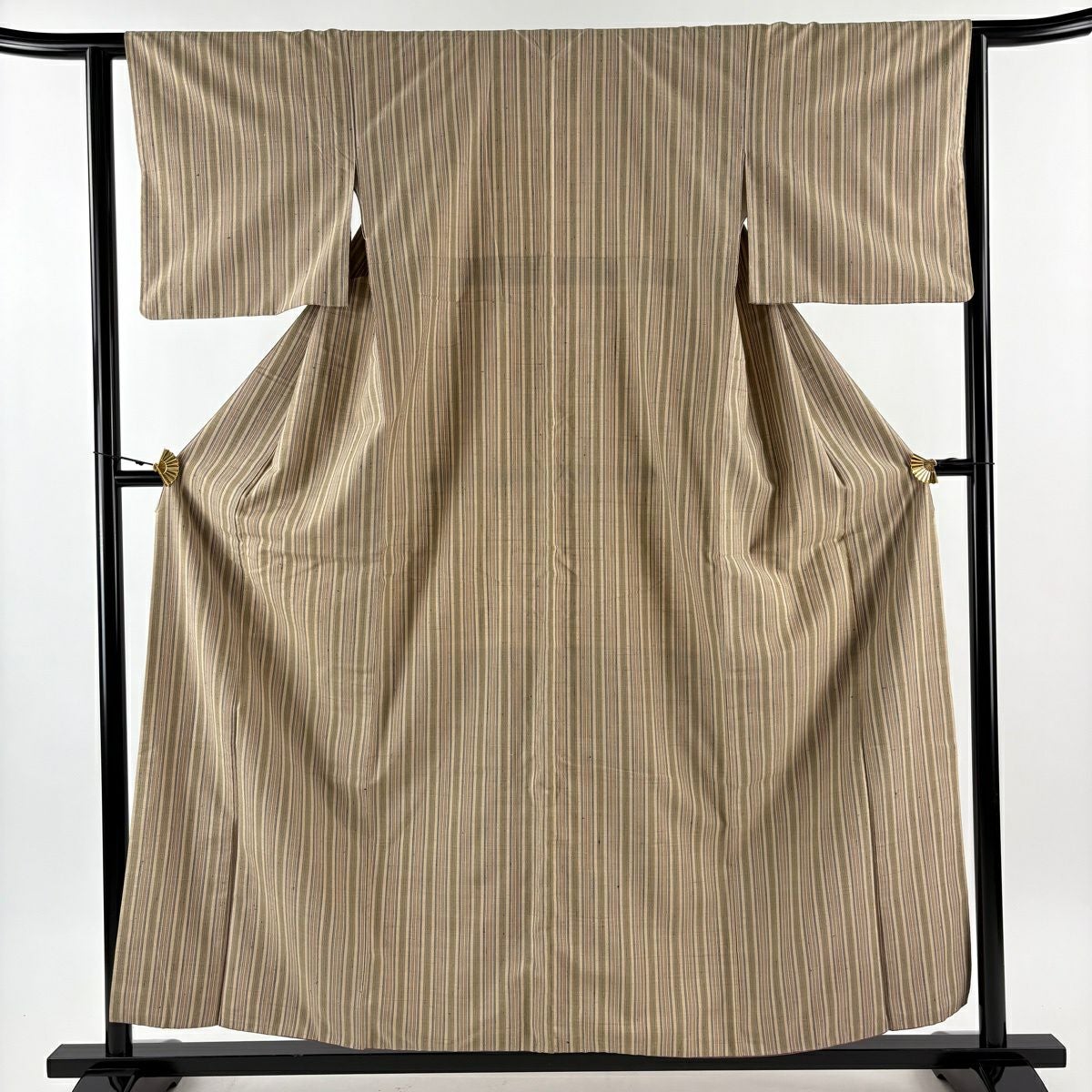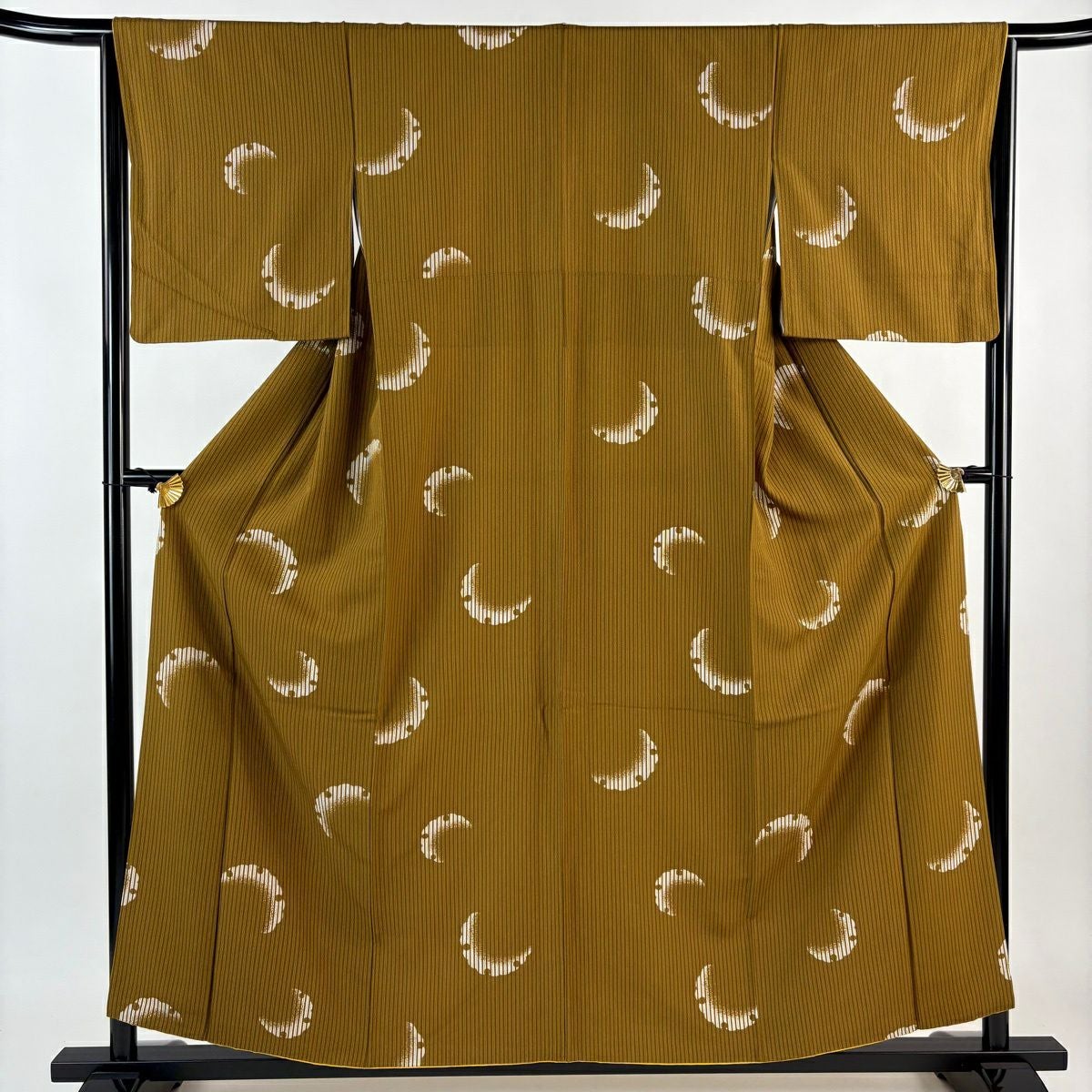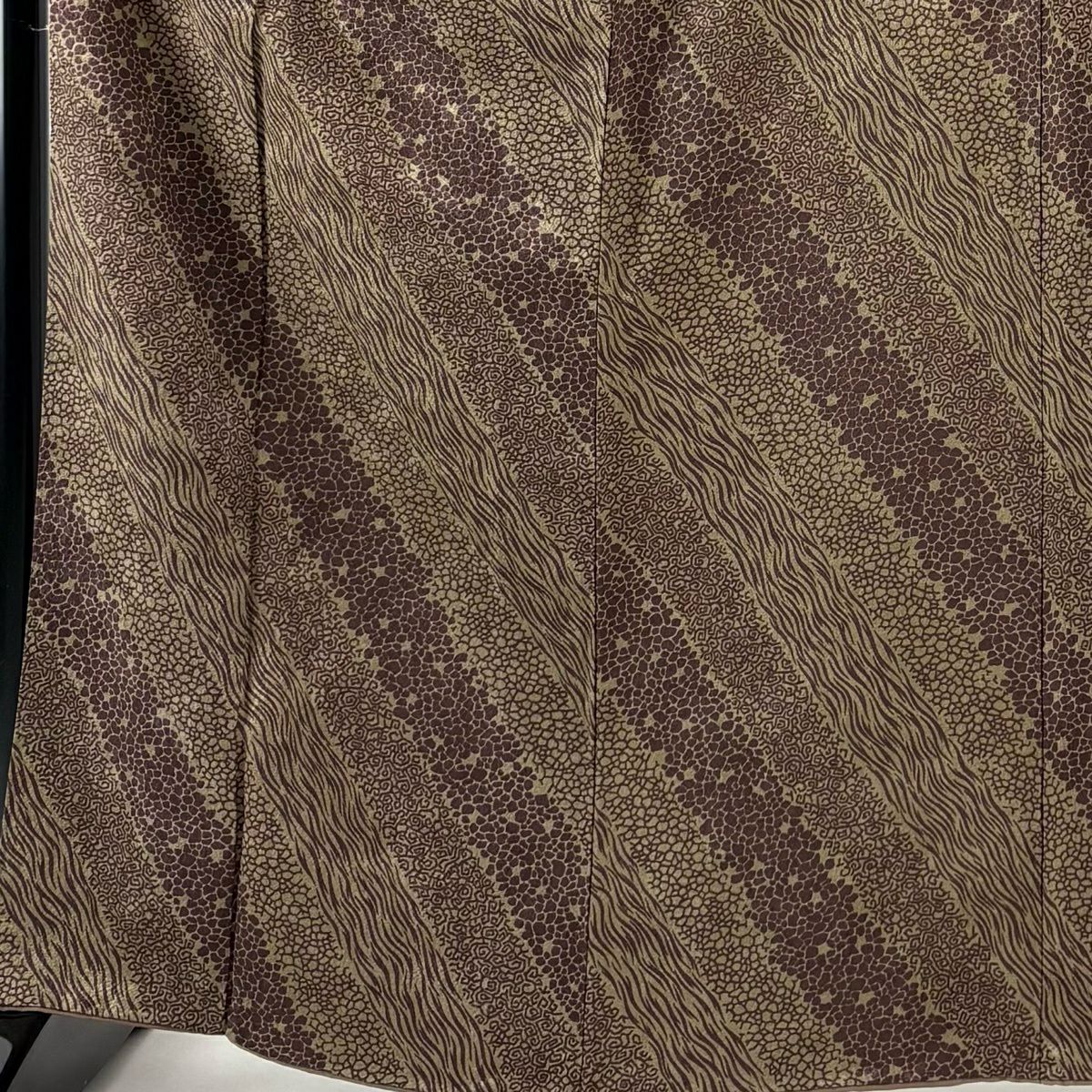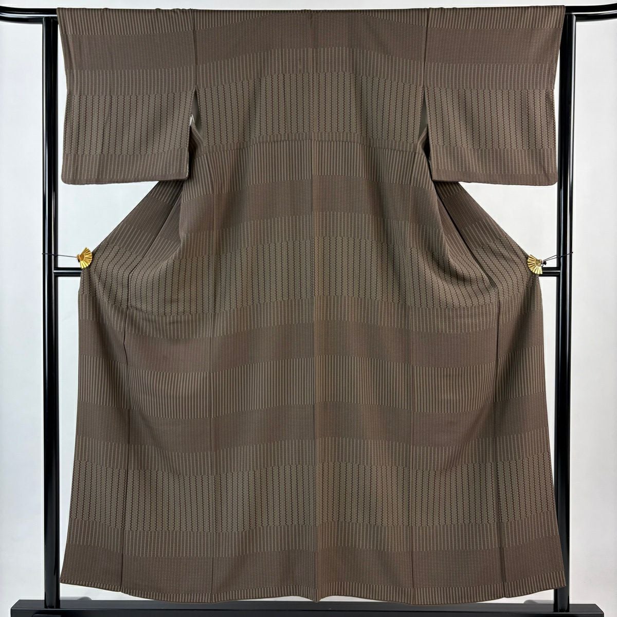 小紋 身丈157.5cm 裄丈65cm M 袷 縞 雪輪 山吹茶色 正絹 秀品