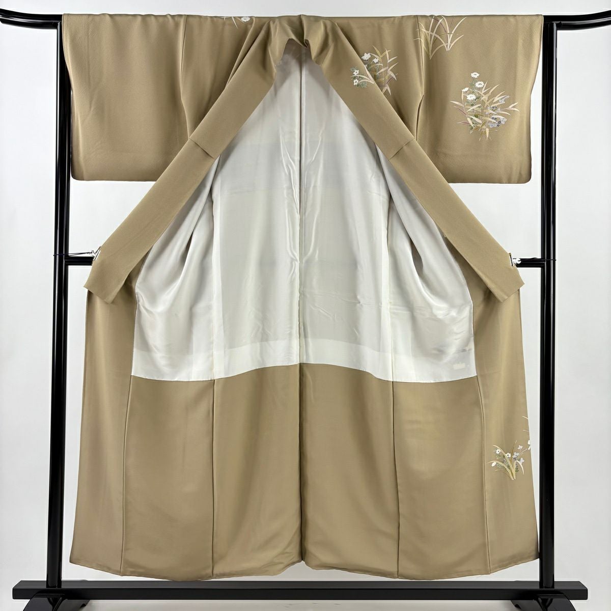 訪問着 身丈155cm 裄丈63.5cm S 袷 童 草花 薄茶色 正絹 秀品