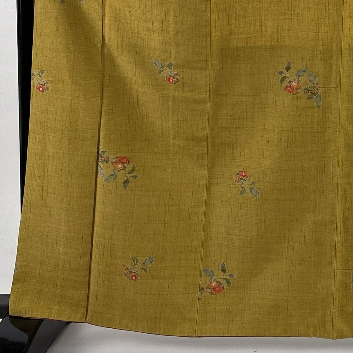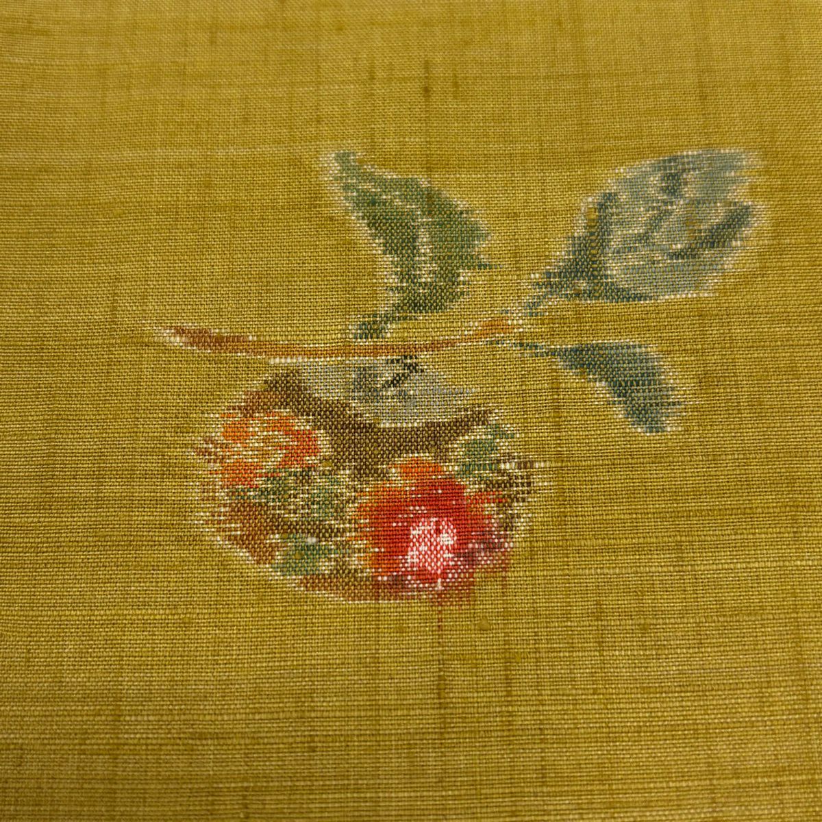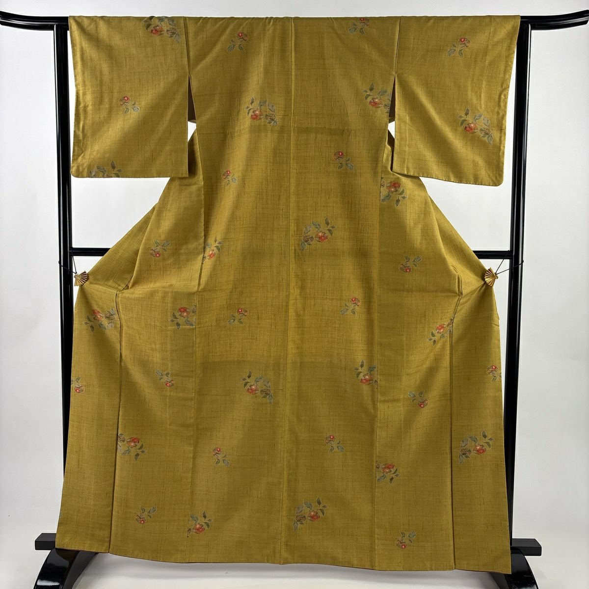 紬 身丈165cm 裄丈63cm S 袷 生り物 草花 からし色 正絹 秀品