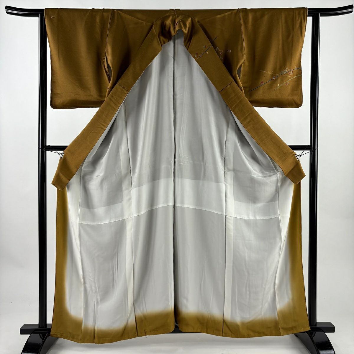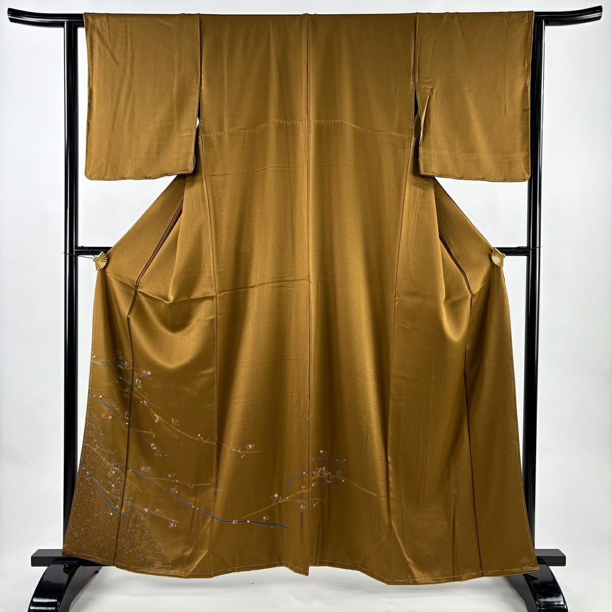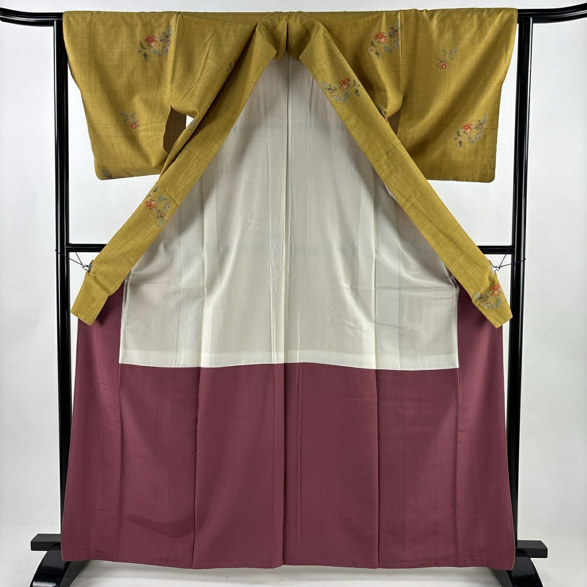 紬 身丈165cm 裄丈63cm S 袷 生り物 草花 からし色 正絹 秀品