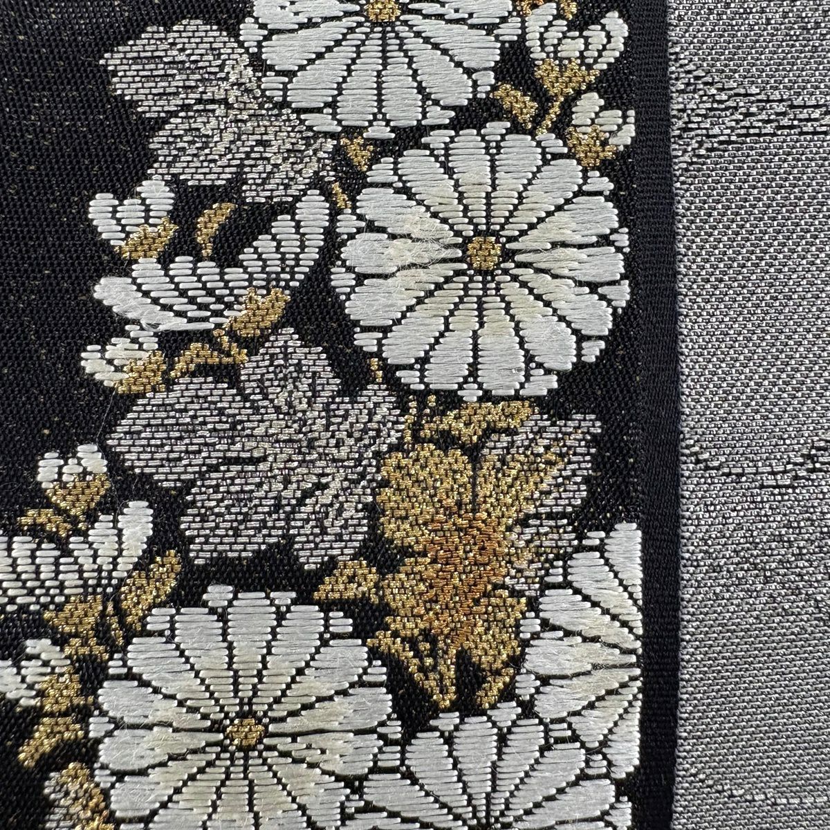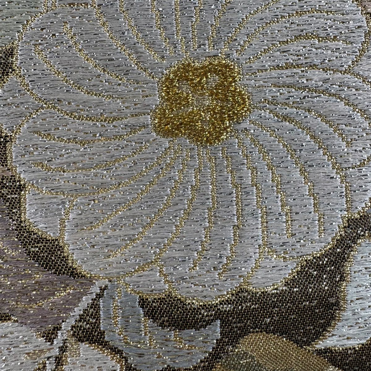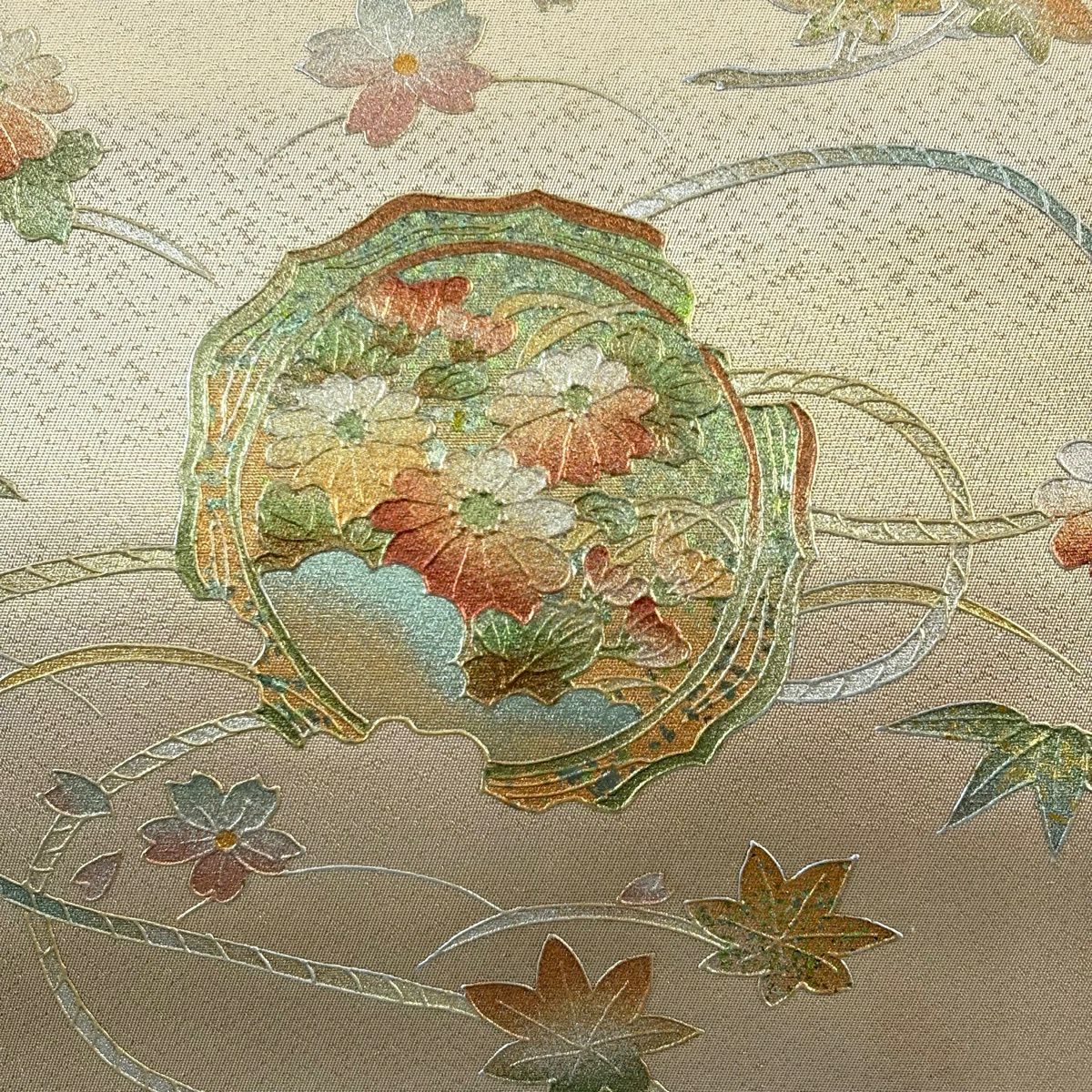 【美品】 袋帯 秀品 振袖向き 束ね熨斗 草花 金銀糸 箔 金色 六通 正絹