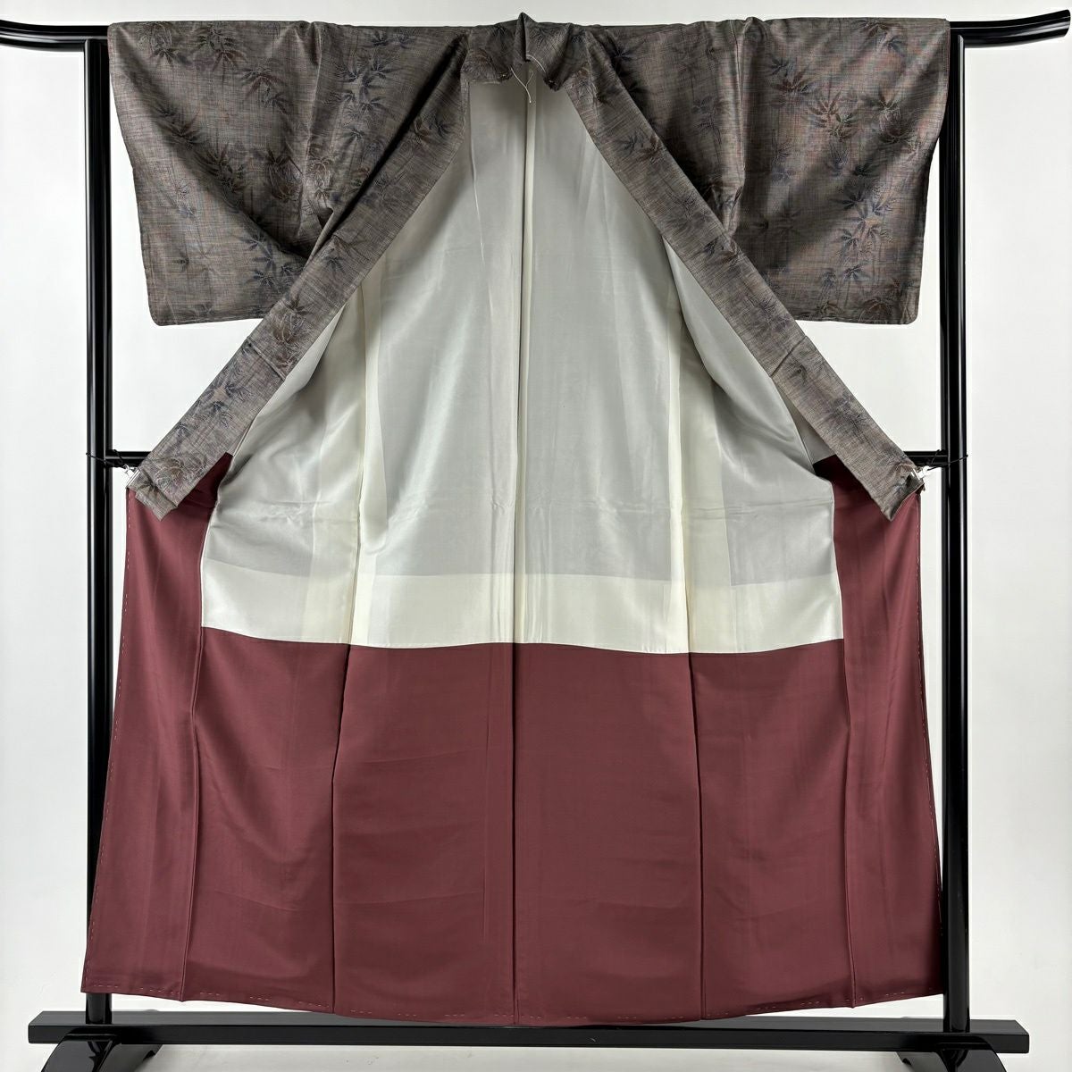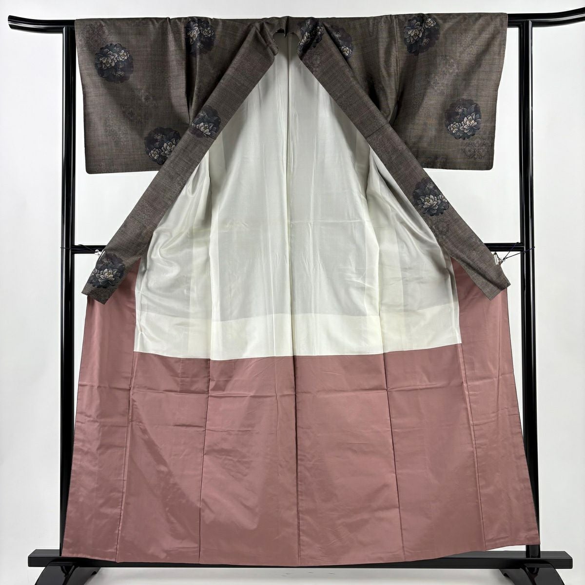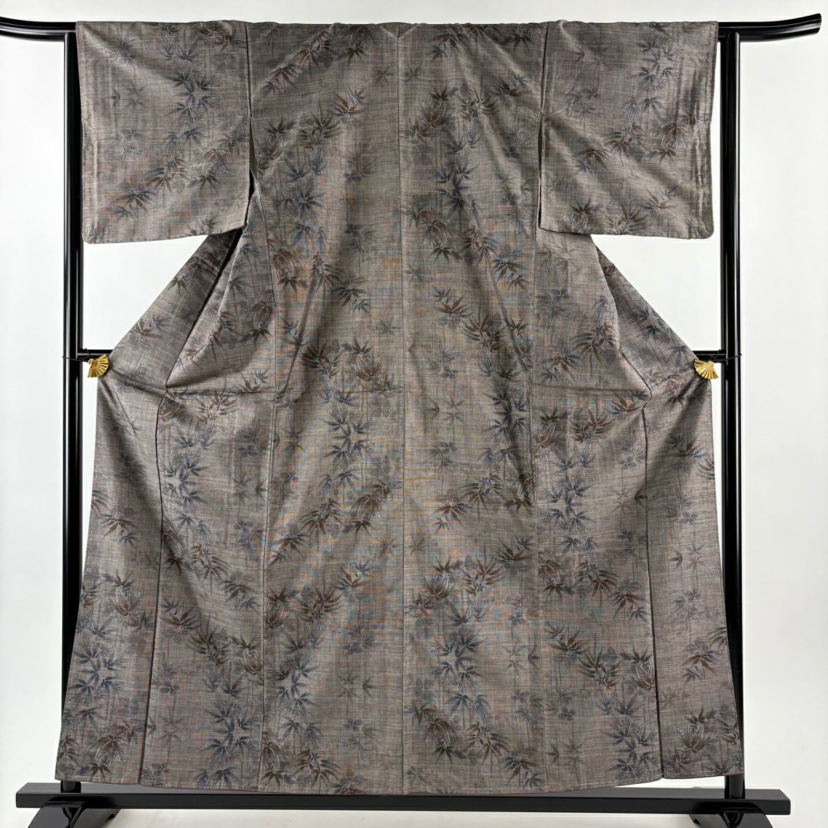紬 身丈155.5cm 裄丈64.5cm M 袷 松梅 色紙 焦茶色 正絹 秀品