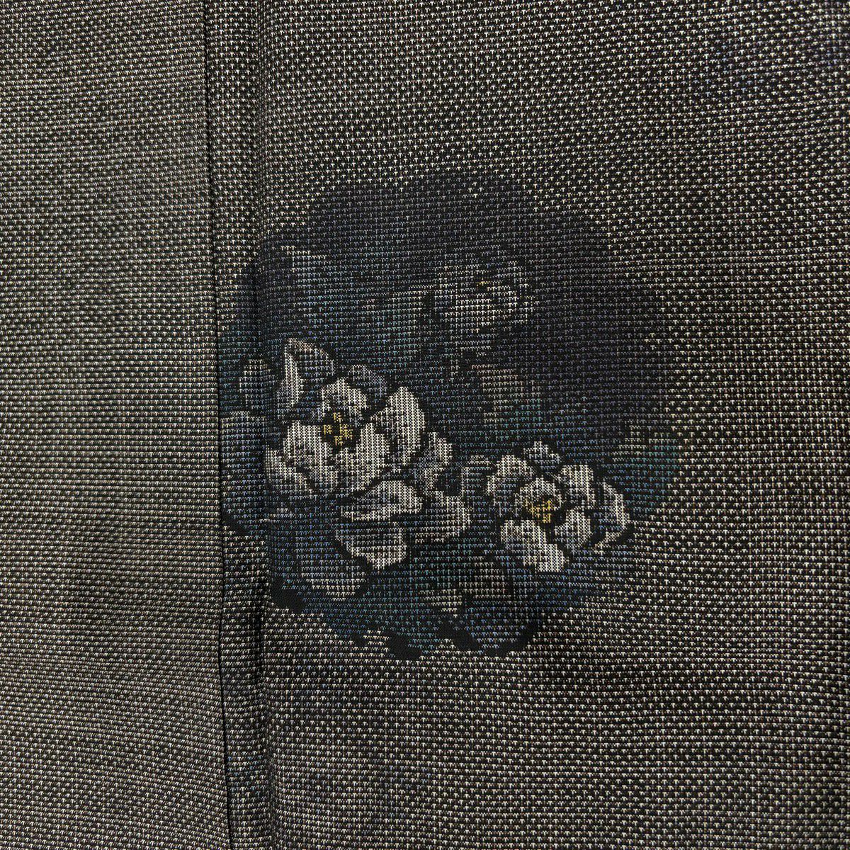 【美品】 袋帯 秀品 落款あり 風景 遠山 金通し 青灰色 お太鼓柄 正絹